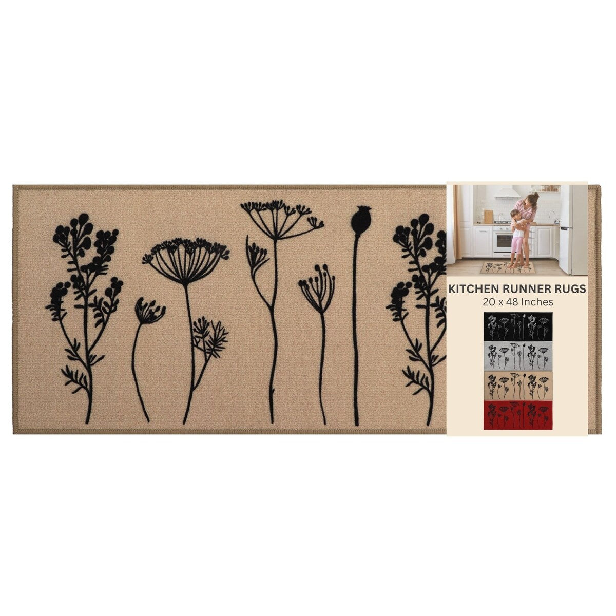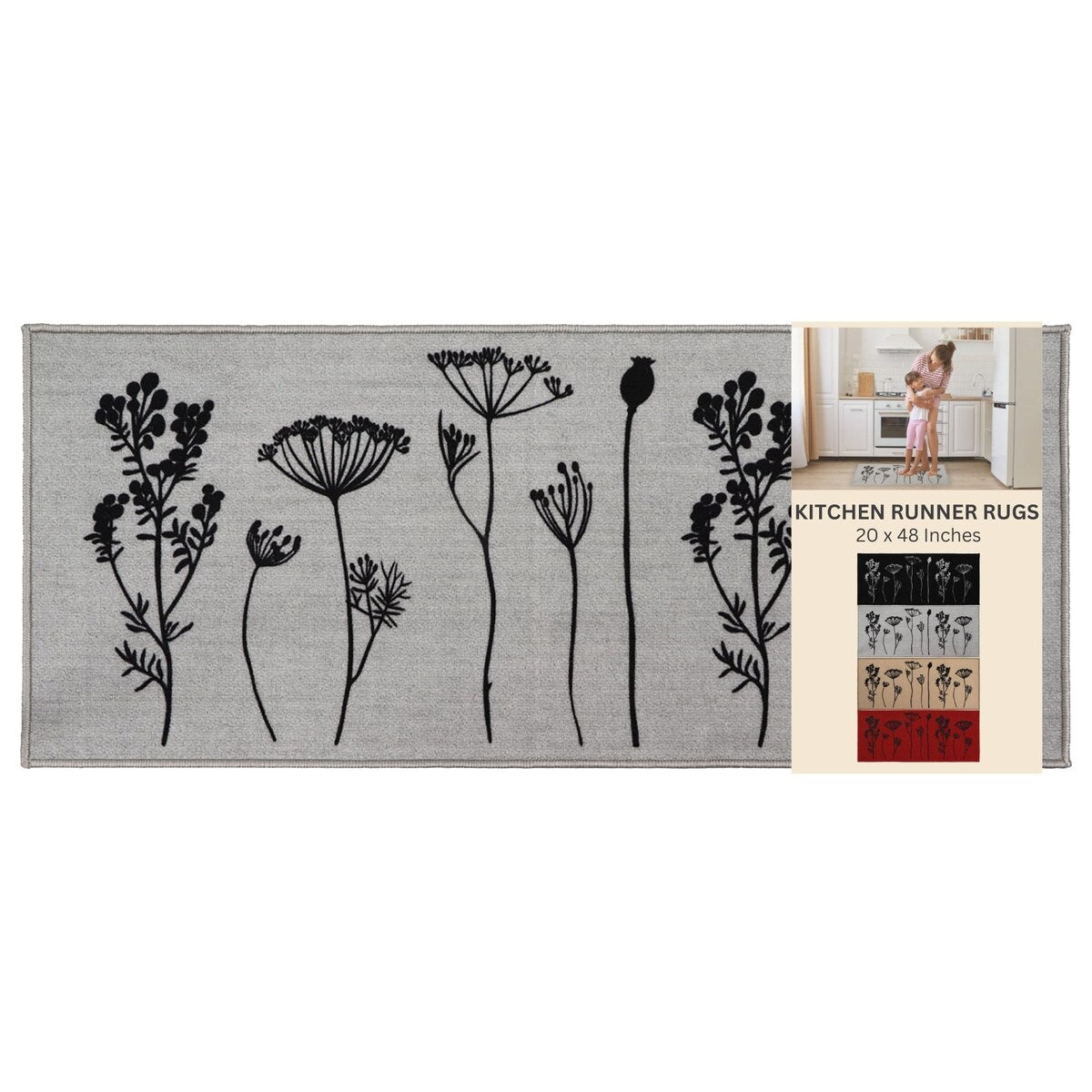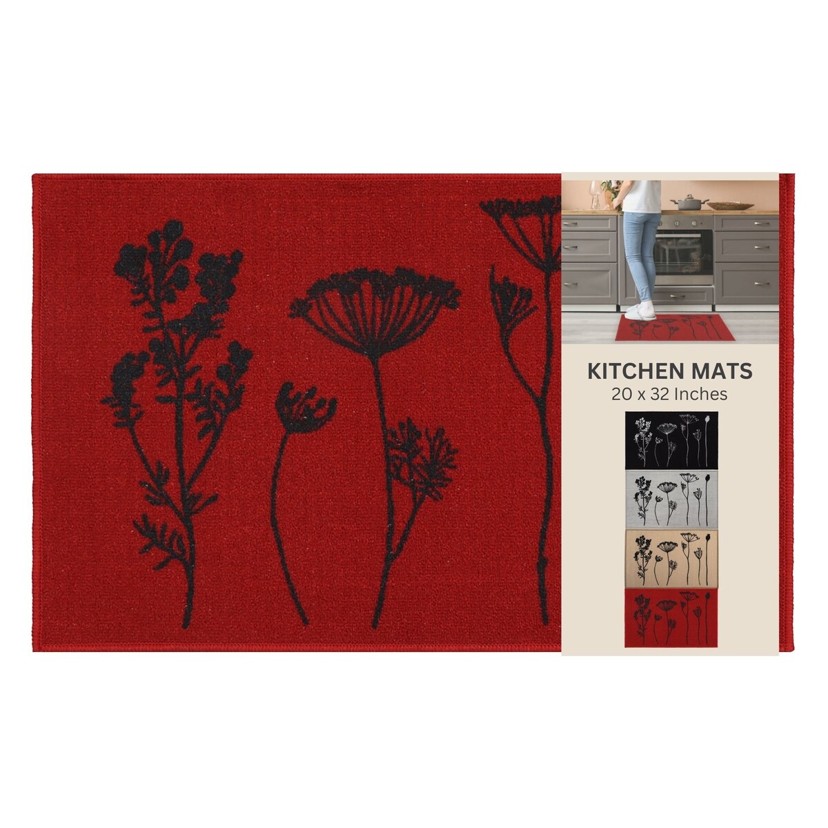 - SET OF 2 MATS: Easily cover an extra-large area in your kitchen with this set of 2 coordinated kitchen mats. The 2-pack rugs for kitchen features one kitchen mat (32 x 20 inches) and one runner rug (48 x 20 inches)