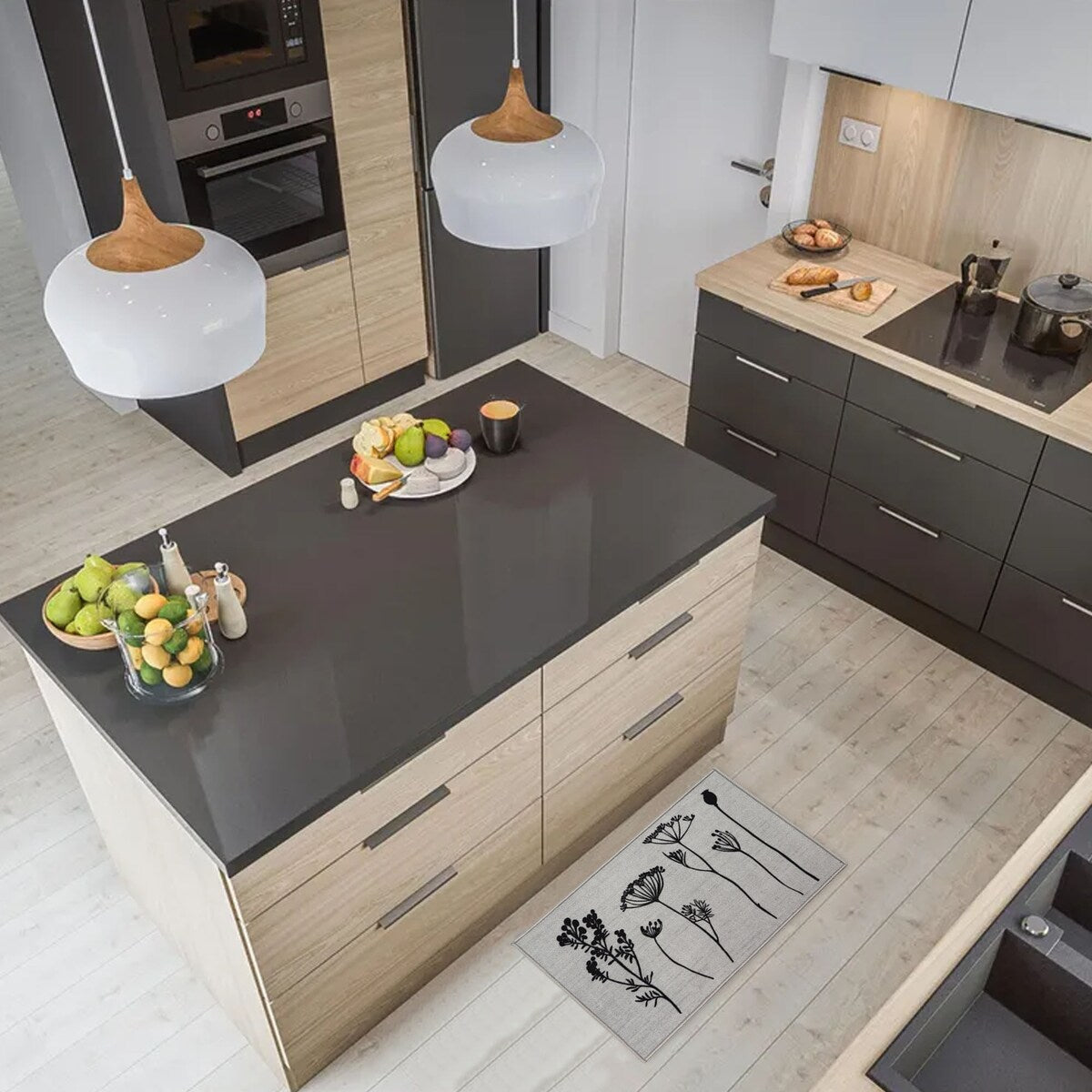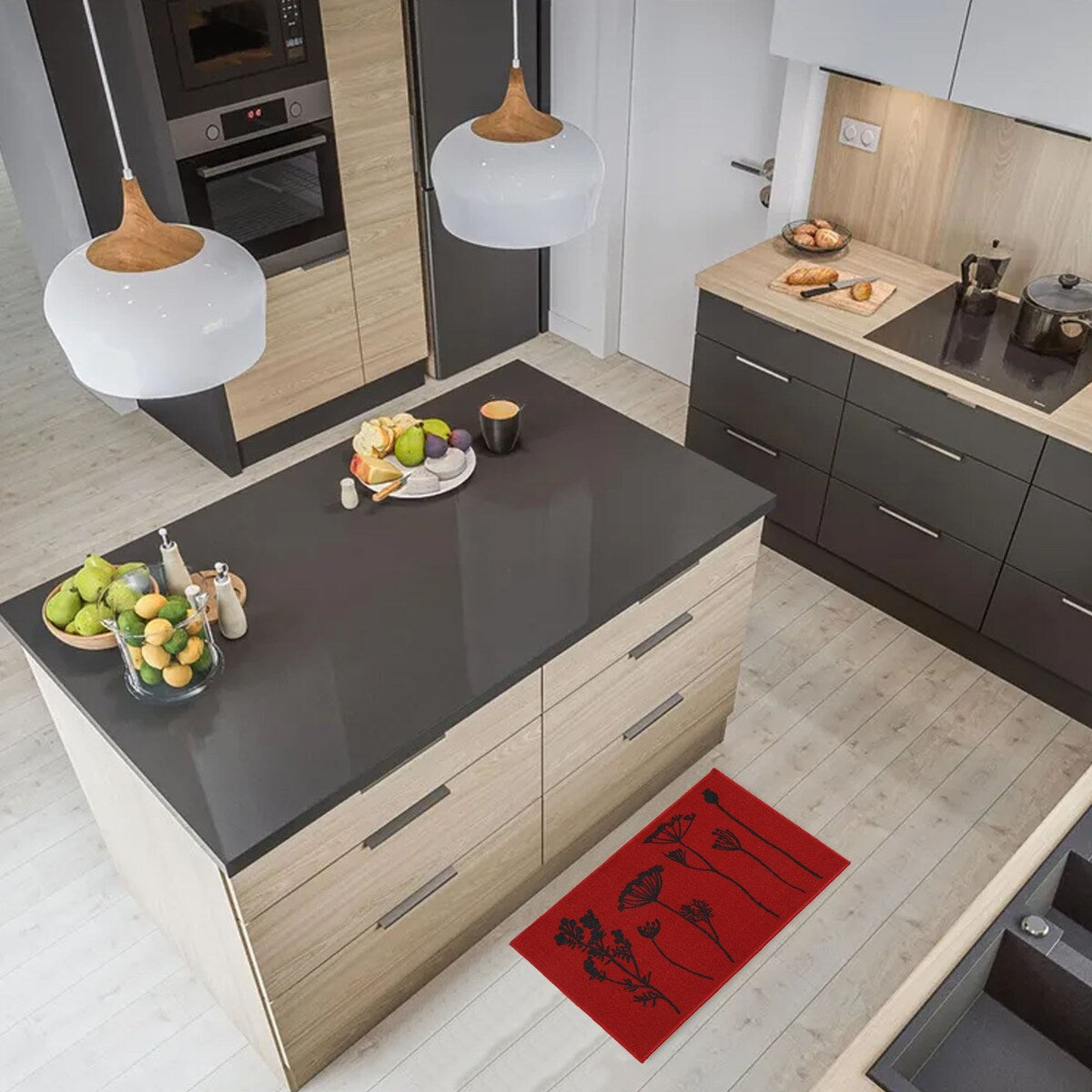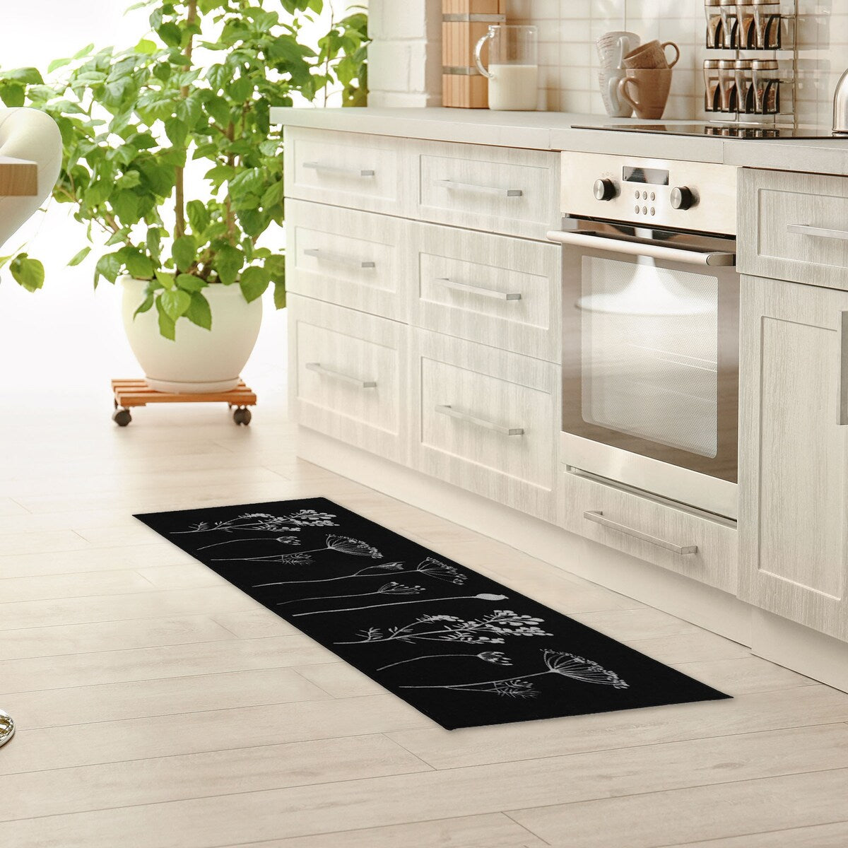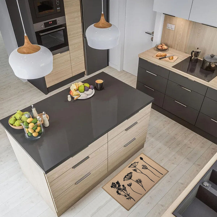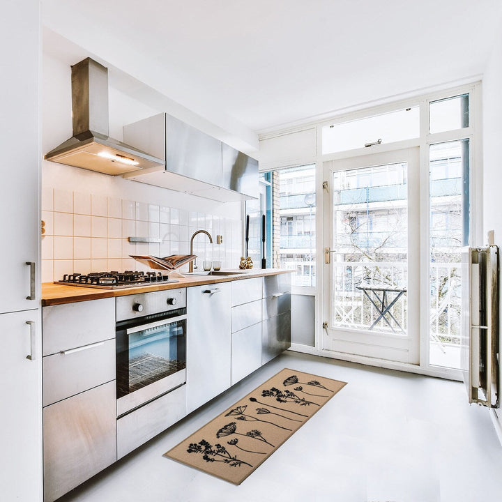 This set of 2 field flowers kitchen mat and runner rug will bring sophistication and functionality to the kitchen. If you like discreet and elegant decoration, you will love these wool-effect kitchen mats with floral motifs. Their blooming design will subtly give character to your kitchen space. Easy to place in front of the sink, the cooking zone or by the door! These comfortable sink mats have perfect dimensions to cover a generous surface. You just must position them together or separately and thus protect your floor from projections. 100% polyamide, this set of 2 durable rugs gives you extra comfort underfoot while you cook or wash dishes. Moreover, the non-slip latex backing helps hold the mat firmly and securely in place, preventing you from falling. Easy to clean, these rectangular kitchen rugs are machine washable with warm water (30°). Give style and function to your kitchen floors with this fashionable set of 2 kitchen rugs. Imported from France, Made in Egypt