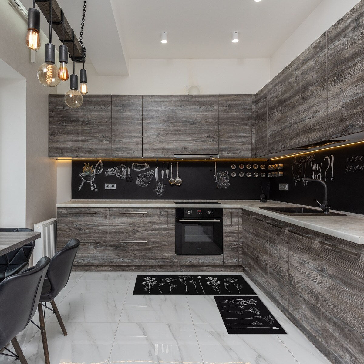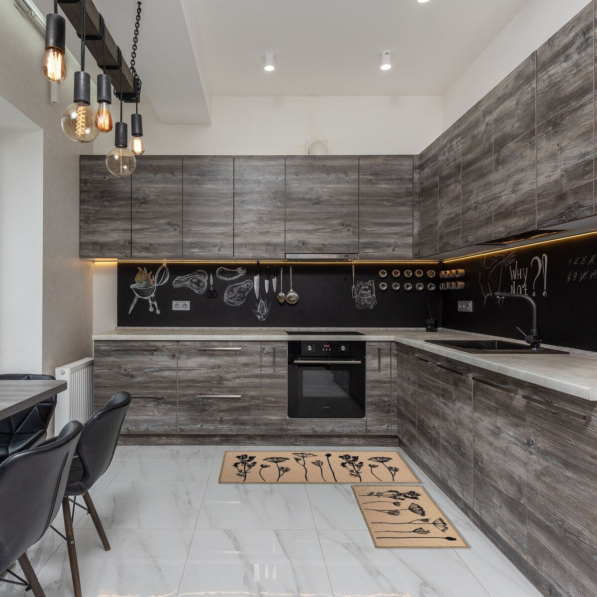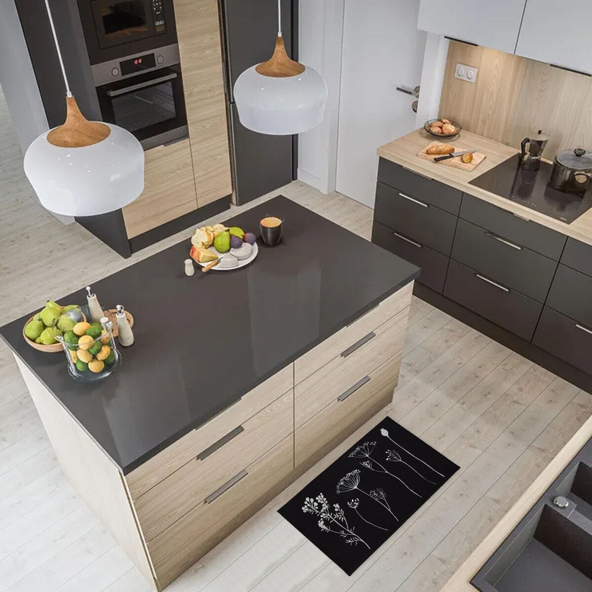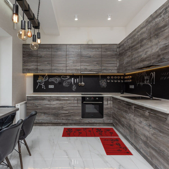 - ELEGANT DESIGN: Enhance your kitchen decor with this set of 2 wool-effect kitchen mat and runner rug. Available in black/ gray, gray/black, tan/black and red/black