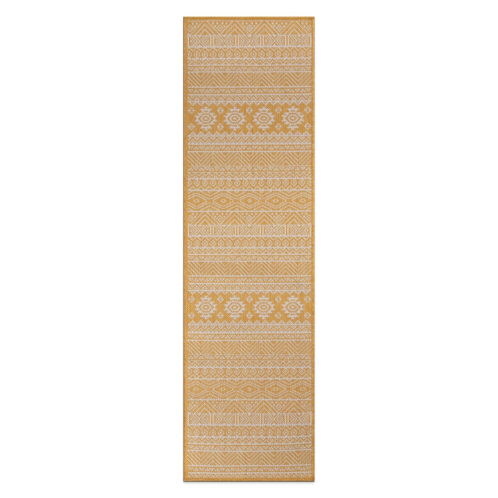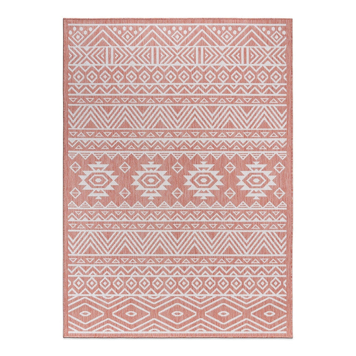 Liven up your indoor or outdoor d茅cor with this contemporary flatwoven rug. It features a modern geometric design and vibrant colors.It is easy to maintain by rinsing with a garden hose with soapy water and air drying.For indoor or outdoor use. This collection offers area rugs that are suitable for all indoor/outdoor spaces.