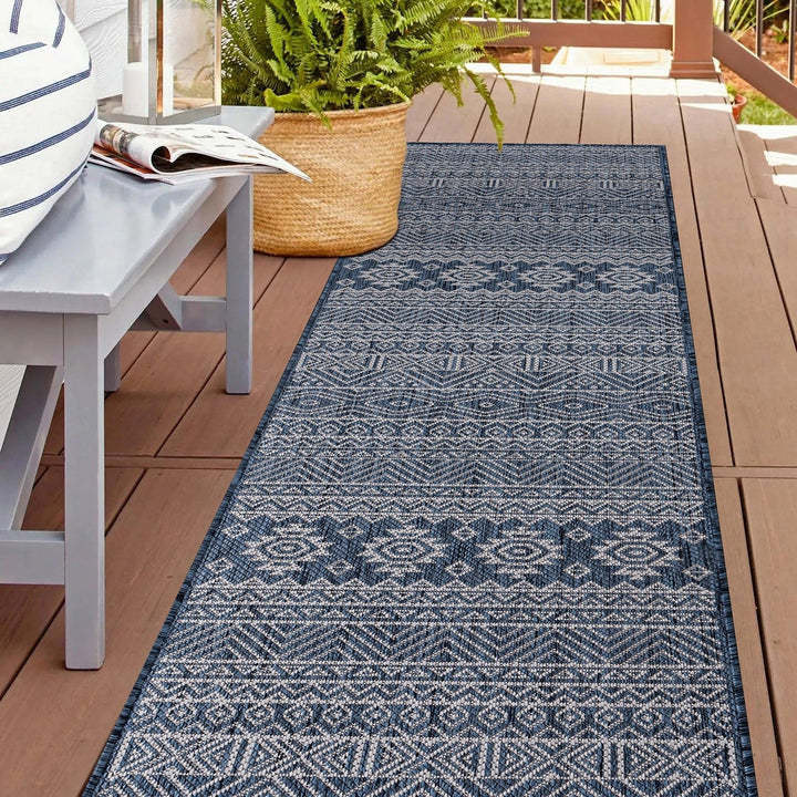 World Rug Gallery Distressed Geometric Bohemian Textured Flat Weave Indoor/Outdoor Area Rug