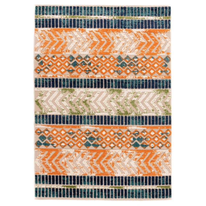 Add a touch of bohemian flair to your indoor or outdoor space with the World Rug Gallery Distressed Geometric Indoor/Outdoor Area Rug. Featuring a tribal-inspired design and vibrant colors, this rug is sure to liven up any room. Crafted from durable synthetic fibers, it is machine-made with a low profile flat weave construction that is weather-resistant, stain-resistant, and fade-resistant. Perfect for high-traffic areas and pet-friendly households, this rug is easy to clean by rinsing with soapy water and air drying. Available in a variety of sizes, it is suitable for use in the living room, kitchen, bedroom, entryway, office, dorm, patio, and more.