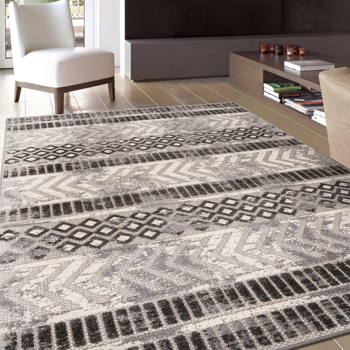 World Rug Gallery Distressed Geometric Indoor/Outdoor Area Rug