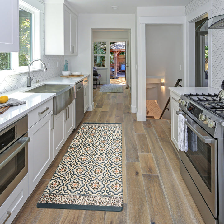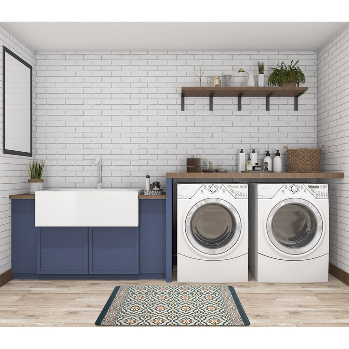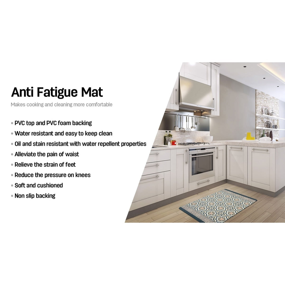Step up your home's comfort game with the World Rug Gallery Kitchen Durable Anti Fatigue Standing Mat. Perfect for high traffic areas, this modern mat is slip-resistant, water-repellent and stain/oil-resistant, making it ideal for use in kitchens, laundry rooms, and standing desks. With ample cushioned support that provides comfort and durability, this all-purpose mat is also pet-friendly. The nonskid backing ensures extra safety by keeping the mat in place for long periods of standing. Easily cleanable with a damp cloth and mild detergent.
