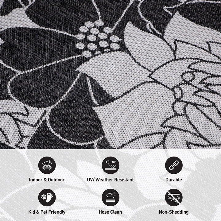 Liven up your indoor or outdoor d茅cor with this modern flatwoven rug. It features a floral design and vibrant colors.It is easy to maintain by rinsing with a garden hose with soapy water and air drying.For indoor or outdoor use. This collection offers area rugs that are suitable for all indoor/outdoor spaces.