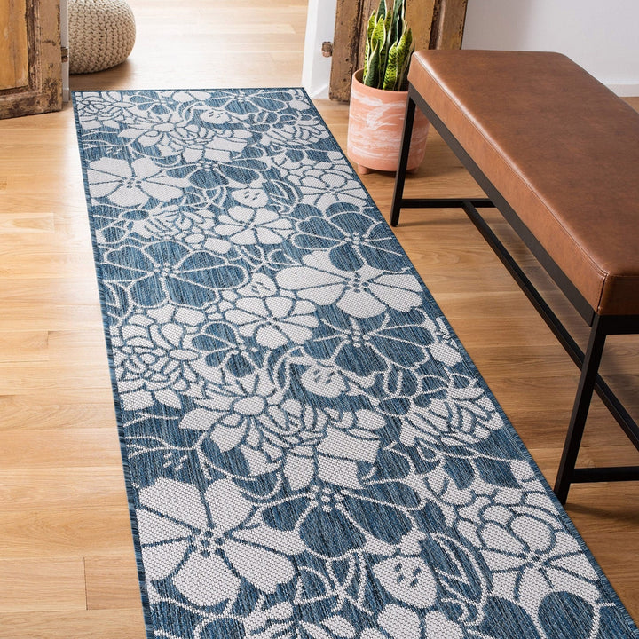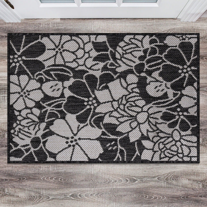World Rug Gallery Modern Floral Flowers Textured Flat Weave Indoor/Outdoor Area Rug