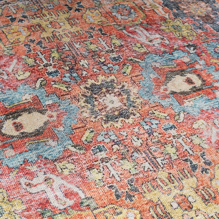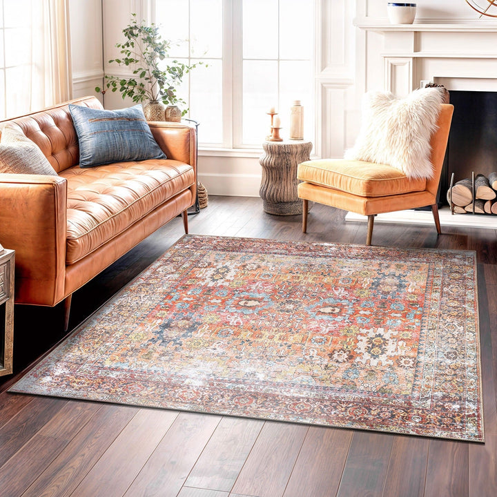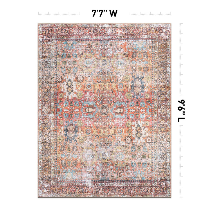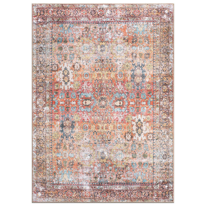 Immerse yourself in the cultural tapestry of our machine-washable polyester area rug, featuring a seamless blend of global-inspired and traditional Oriental aesthetics. Revel in the comfort and resilience of this rug, ideal for both high-traffic zones and pet-friendly environments. The flat-woven construction ensures hassle-free cleaning, while the use of OEKO-TEX certified premium recycled materials underscores our commitment to style, tradition, and sustainable living.