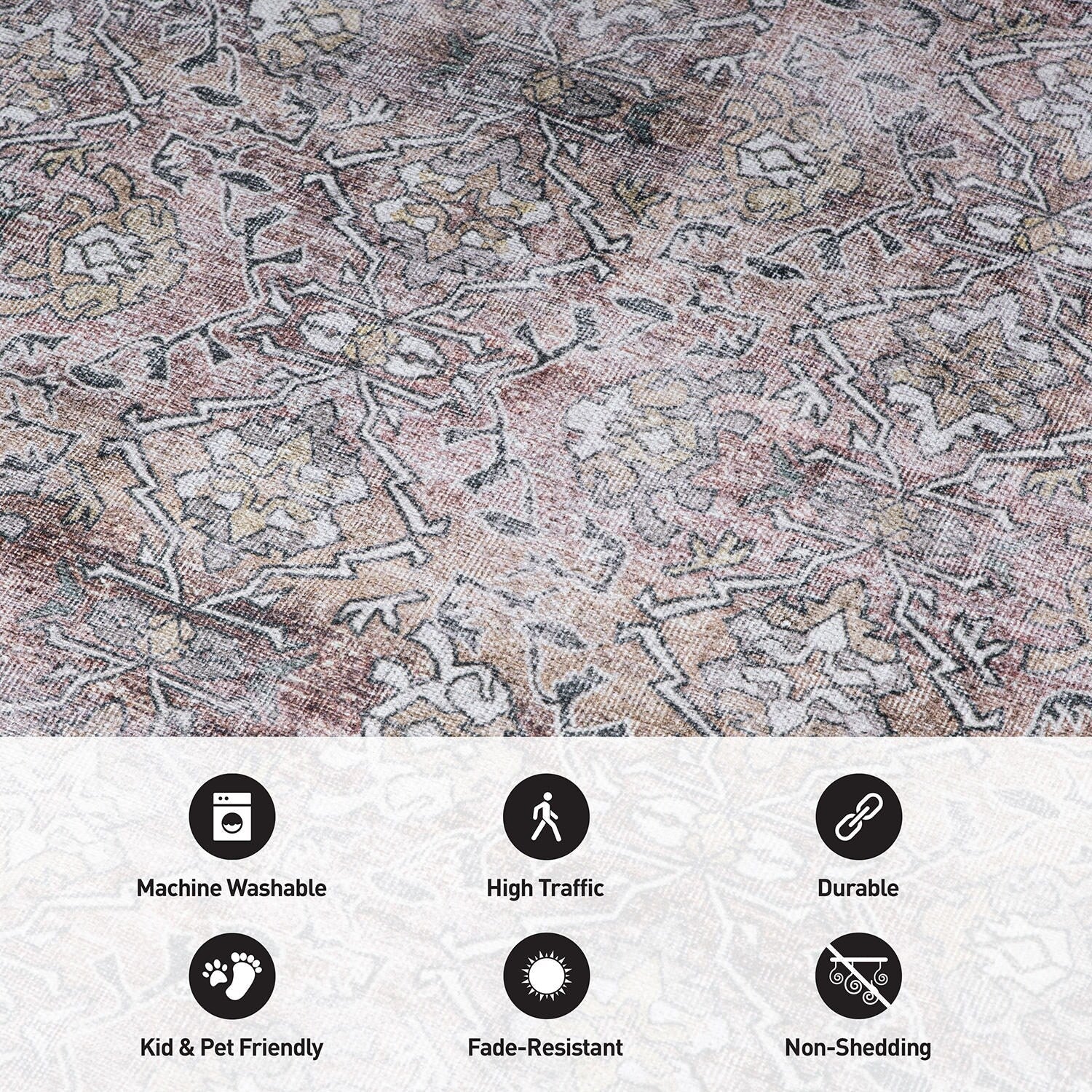 Elevate your home with the allure of our machine-washable polyester area rug, marrying the richness of traditional Oriental design with global-inspired patterns. Indulge in the perfect synthesis of comfort and durability, tailored for high-traffic areas and pet-friendly living. The flat-woven texture guarantees easy cleaning, while the rug's composition of OEKO-TEX certified premium recycled materials reflects our commitment to style, tradition, and environmental responsibility.