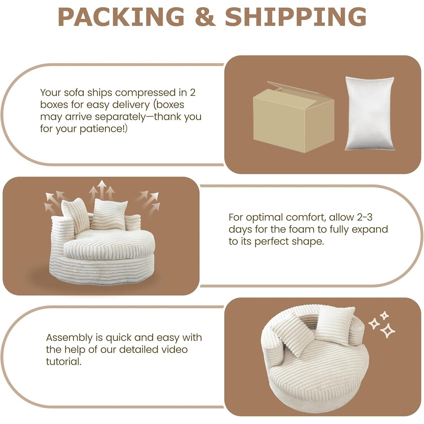 Size Details: Enjoy ultimate relaxation with a 47' wide circular seat and 39' deep lounging seat, wrapped in dual-layer comfort, a cloud-soft PP cotton cushion on top and a high-density foam base underneath for lasting support with zero sagging. Ideal for anyone searching for a truly comfortable lounge chair.