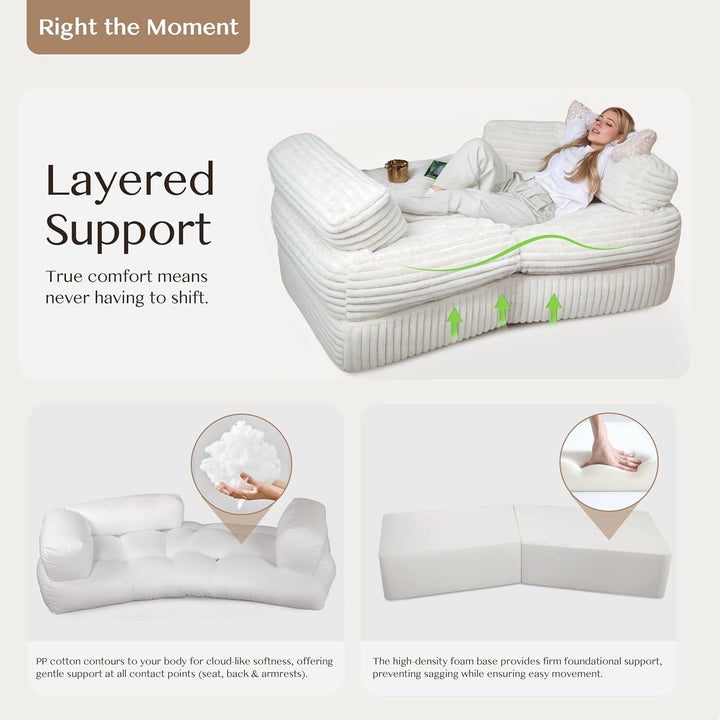 Quality Material: The upper cushions and side bolsters are generously filled with soft PP cotton for a cloud-like, sink-in feel. Beneath that, a firm high-density foam base provides durable, supportive structure that keeps you lifted and alignedâeven after hours of lounging.