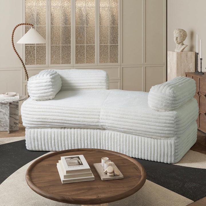 Size Details: This 85' long lounge sofa features a 35' wide seat for maximum stretch-out comfort, supported by fixed cylindrical pillows for optimal back and arm support. The elegant zigzag design fits seamlessly in corners or open spaces, making it perfect for deep relaxationâwhether you're reading, napping, or binge-watching your favorite shows.