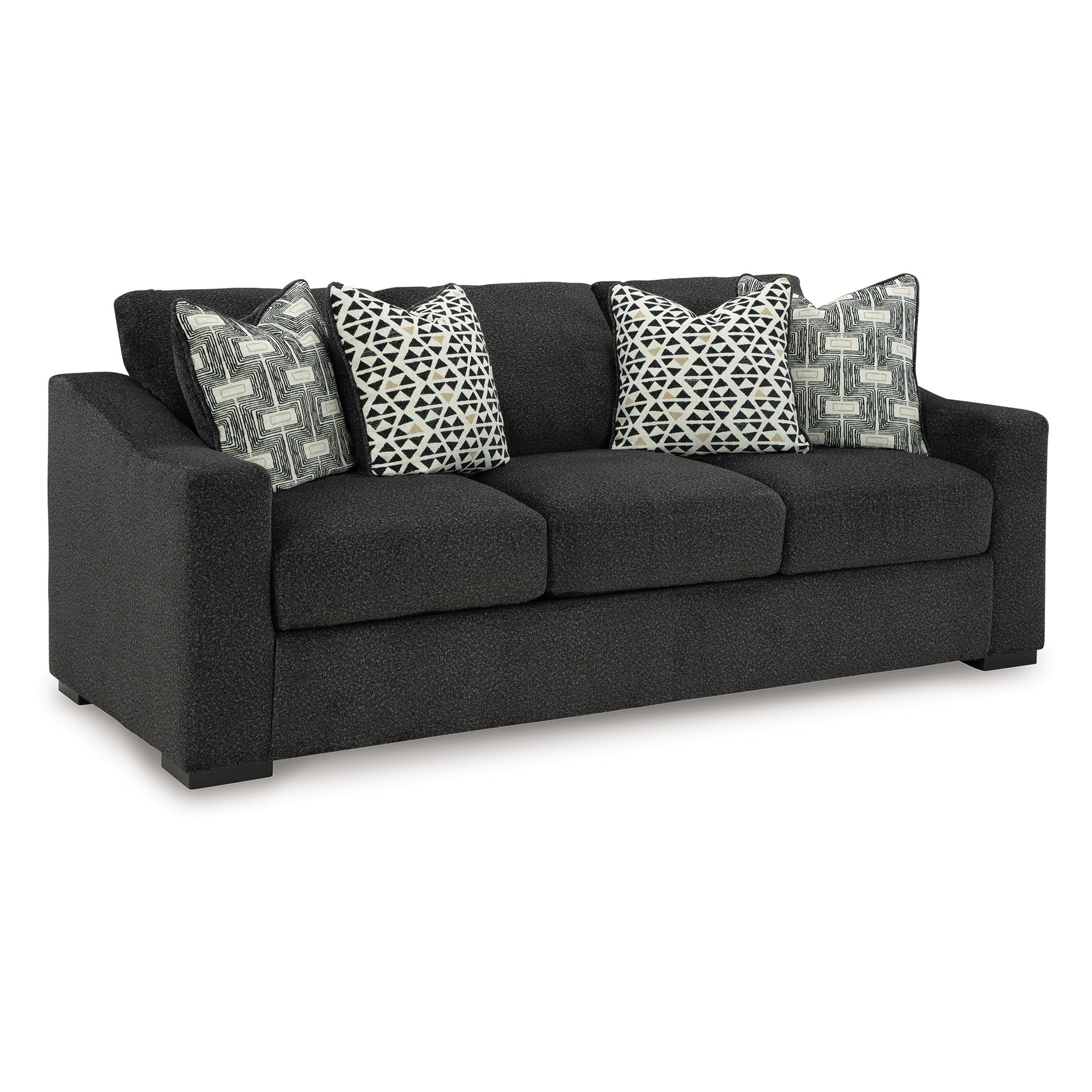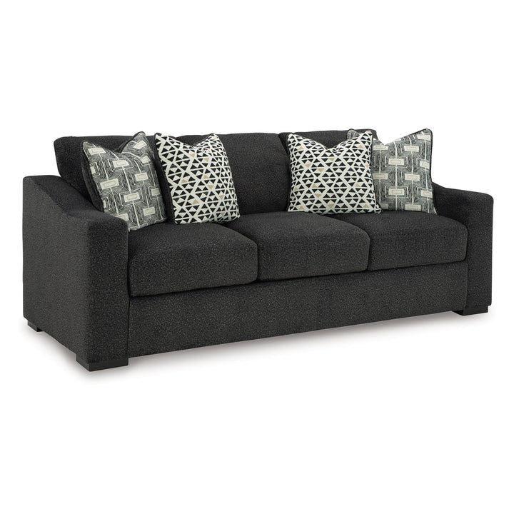 Wryen Sofa, Onyx Black Polyester, 4 Accent Throw Pillows, 93 Inch
