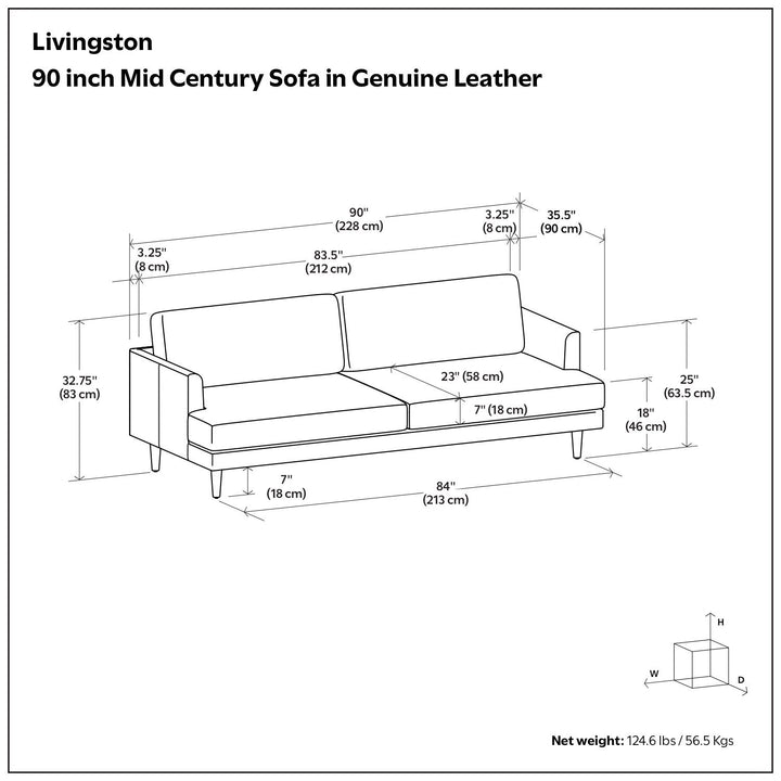 - Handcrafted, mid-century modern sofa measures 90' W x 35.5' D x 32.75' H, comfortably seating 3 people and supporting up to 900 lbs - ideal for large living rooms and open-concept spaces