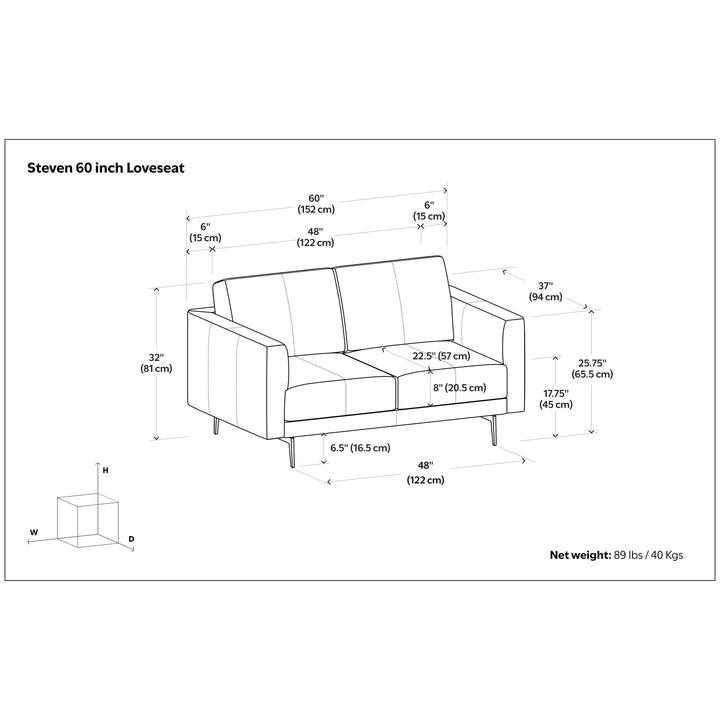 - Handcrafted 60-inch loveseat (60' W x 37' D x 32' H) comfortably seats two people and supports up to 600 lbs, perfect for small living spaces or as additional seating in larger rooms