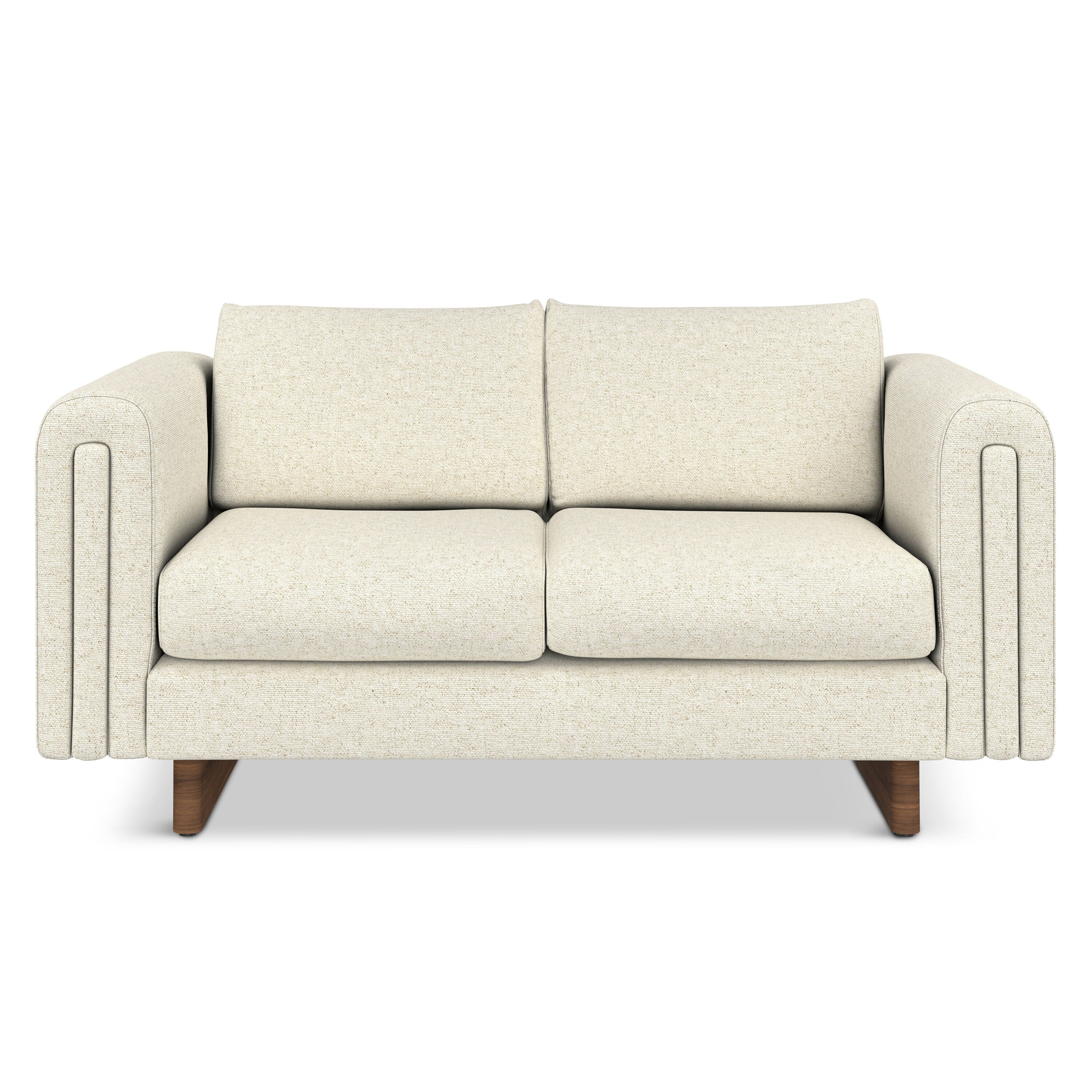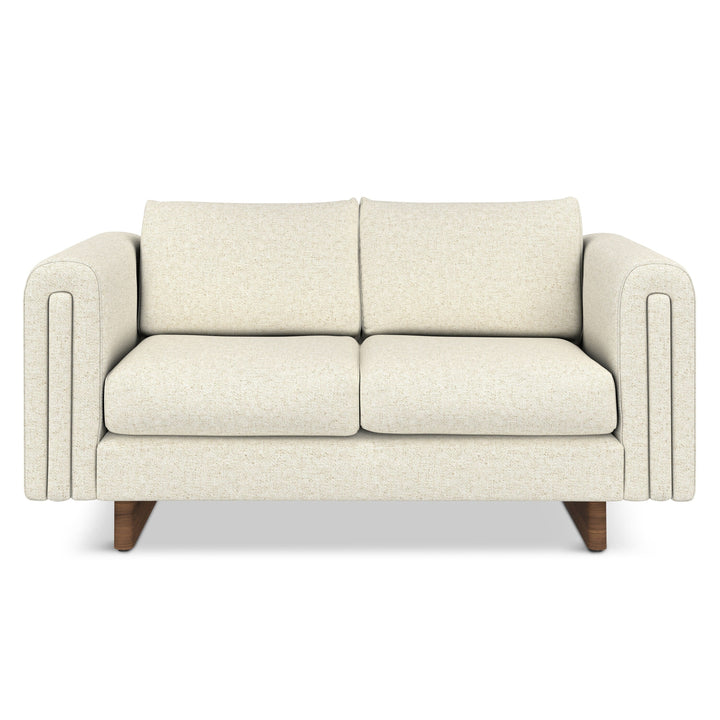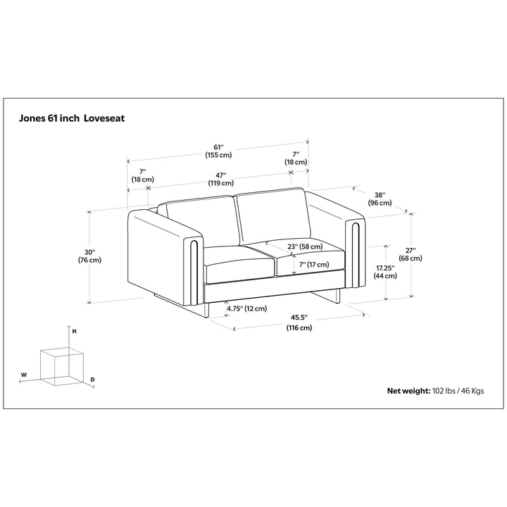 - Handcrafted, contemporary loveseat measures 61' W x 38' D x 30' H and supports up to 600 lbs, ideal for compact living spaces or small apartments
