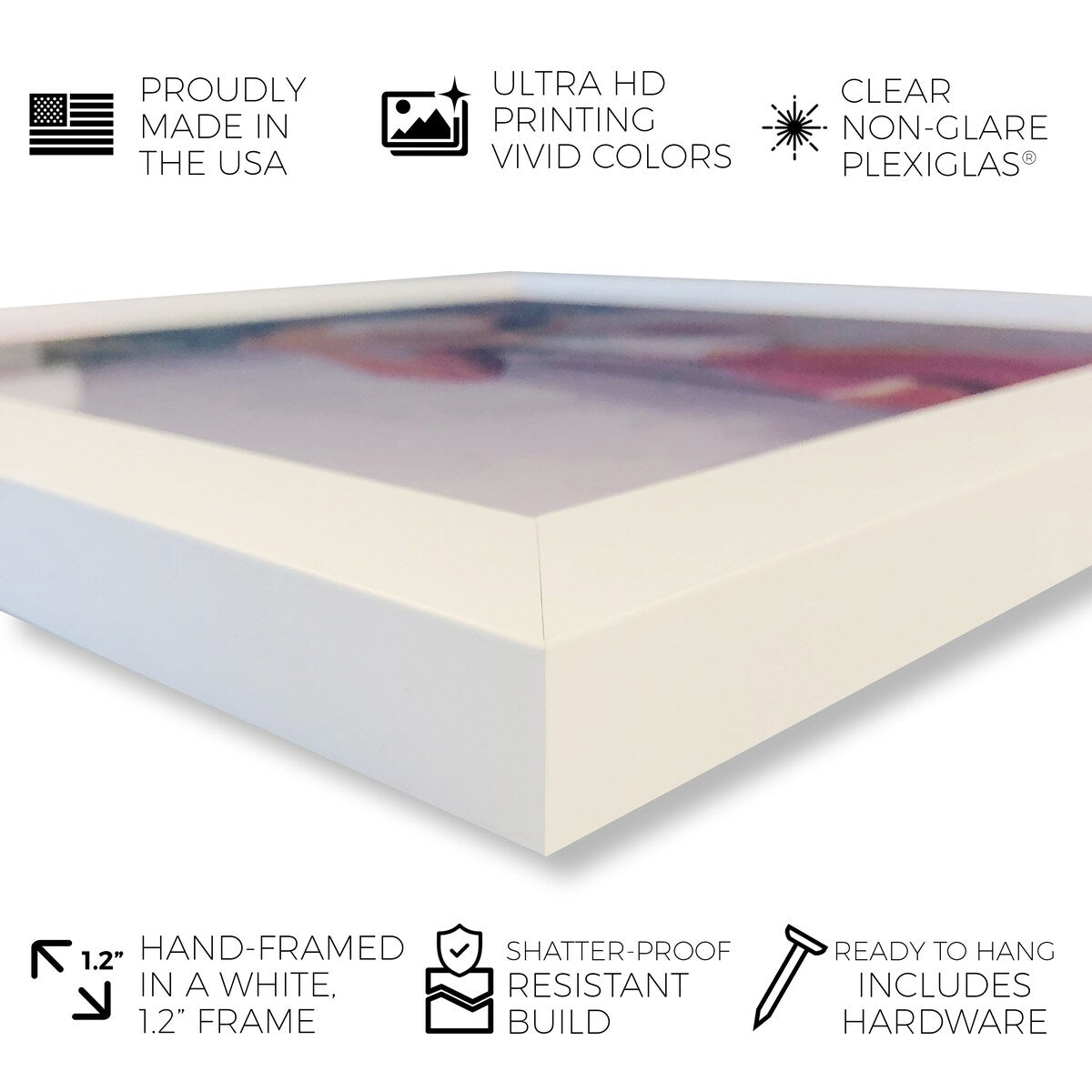 Displayed in a chic modern frame, this unique, contemporary artwork from Wynwood Studio is an absolute must-have for your home decor. Hand-framed in the USA by skilled artisans, this flat profile framed print is sure to be a talking point and a source of daily joy in your living room, bedroom, or any space in your home. Protected by shatterproof plexiglass, your artwork stays safe and vibrant. Choose from a range of decorative frames including Black and White to match your personal style. Printed on museum-grade acid-free archival paper, this timeless wall art is ready to hang with a nail and hook included. With outer dimensions of 15 inches tall by 21 inches wide by 0.8 inches deep, it's the perfect size to make a statement. Wynwood Studio, a brand that understands your taste and style, brings you curated collections of unique artwork and giclees to captivate your imagination.