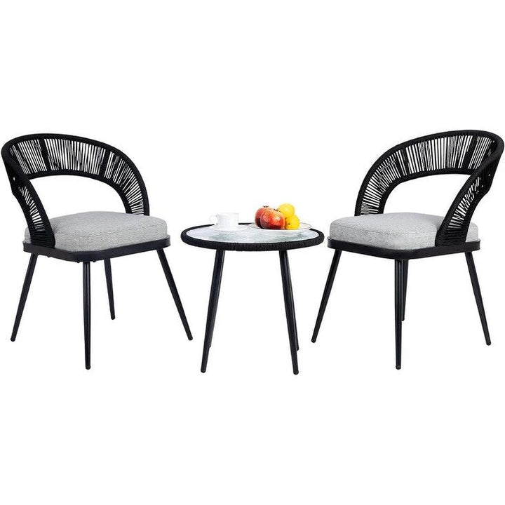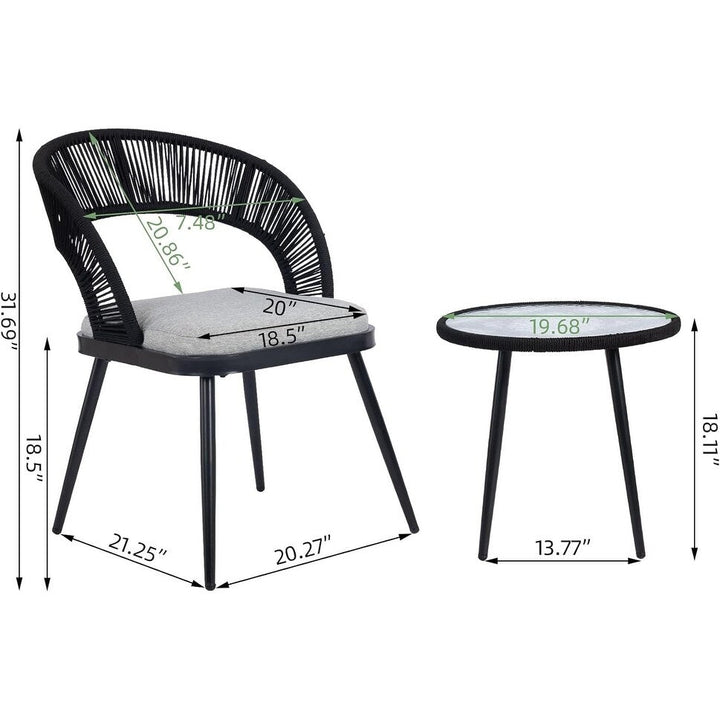 XINMICS 3 Pieces Handmade Rope Woven Cutout Backrest Patio Furniture
