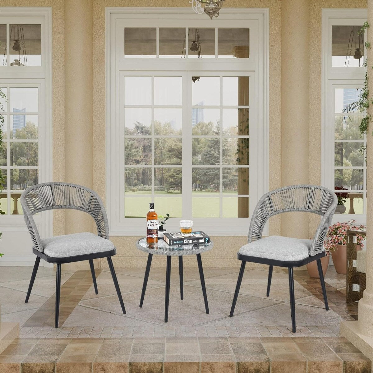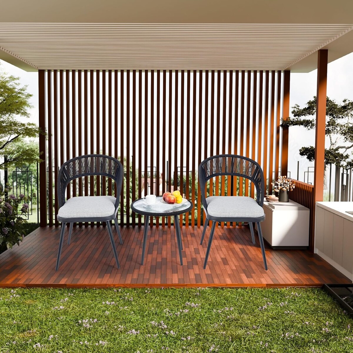 - HAND WRAPPED ROPE: The balcony chair's wrapped rope is made of a material specially designed for outdoor furniture, which is quick-drying, weather-resistant and colorfast. Compared to the PE material of common patio chairs can adhere to a longer period of time without fading and breaking.