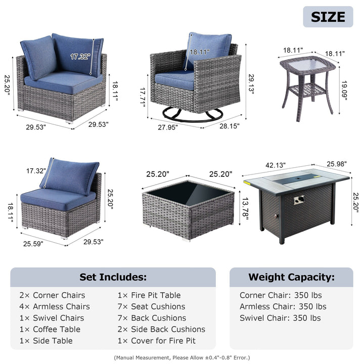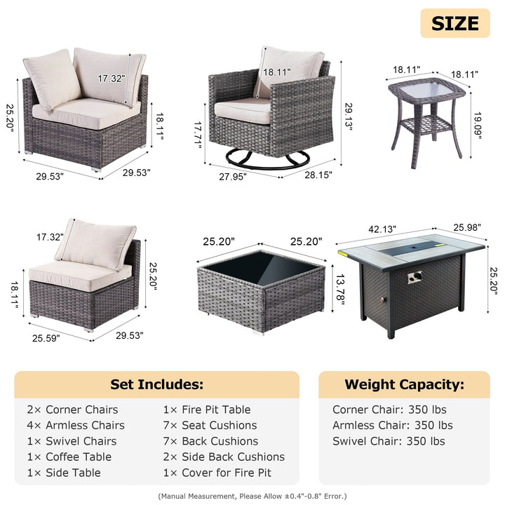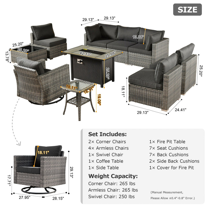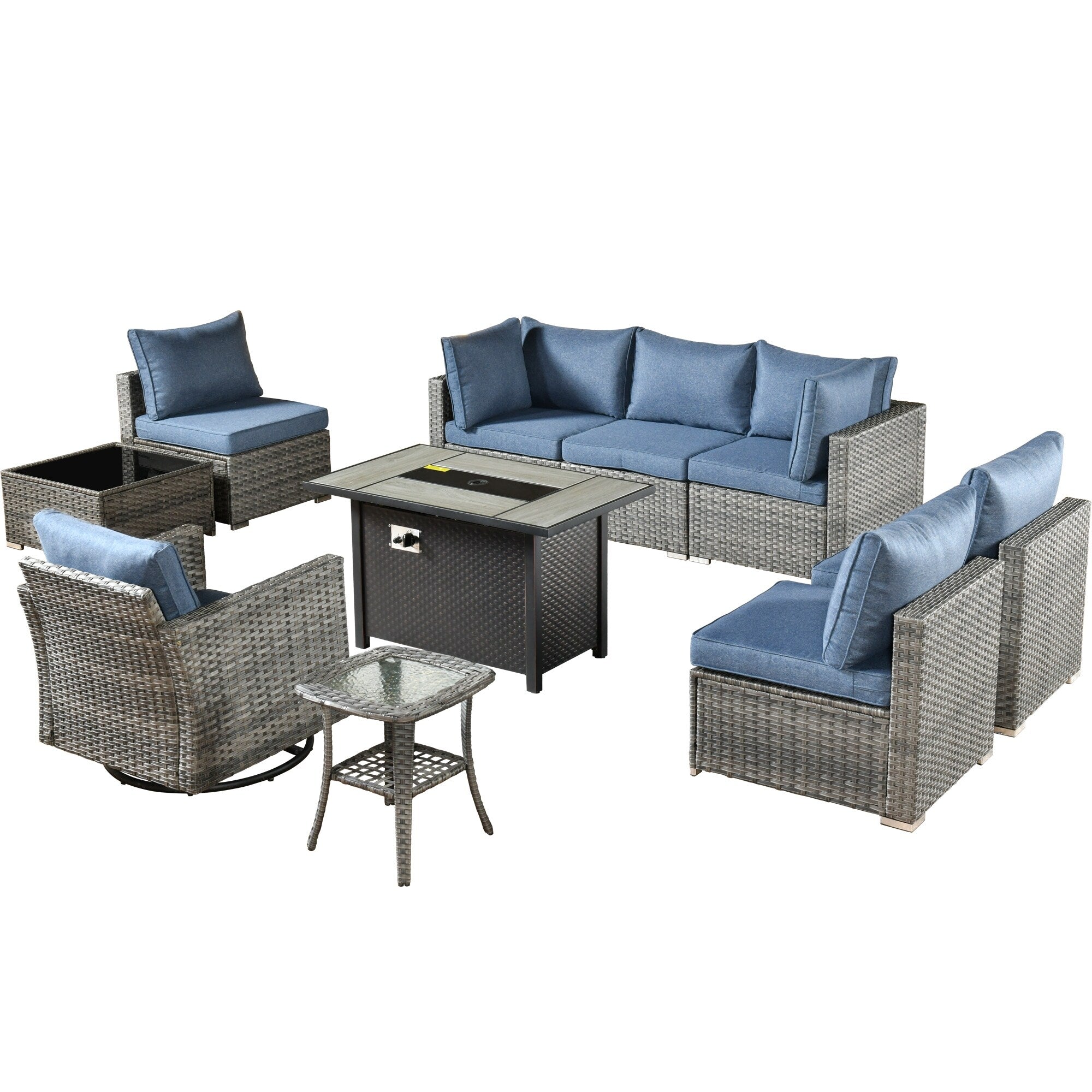 XIZZI 10-piece Patio Furniture Outdoor Seating Set with Fire Table