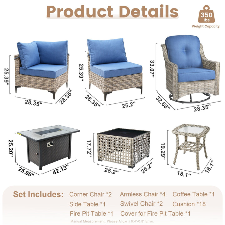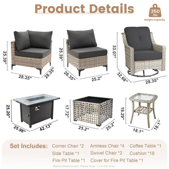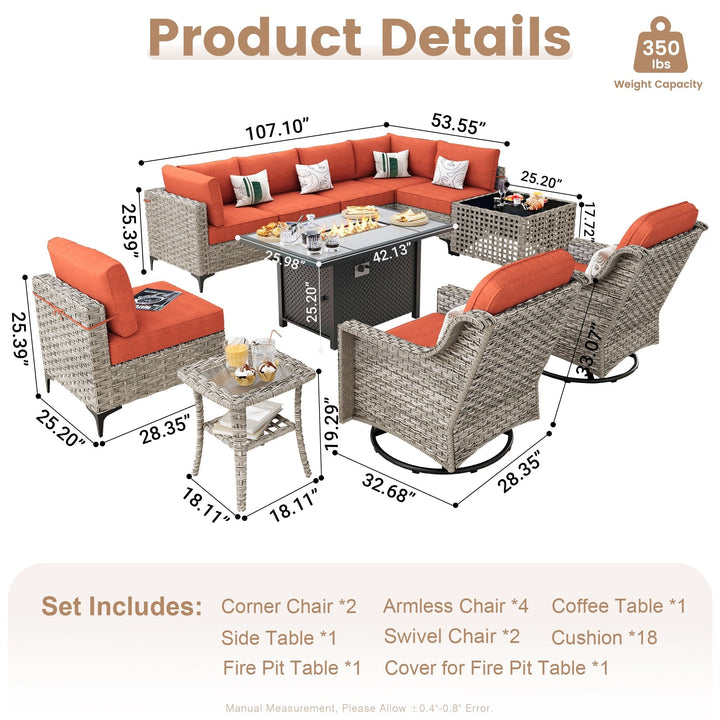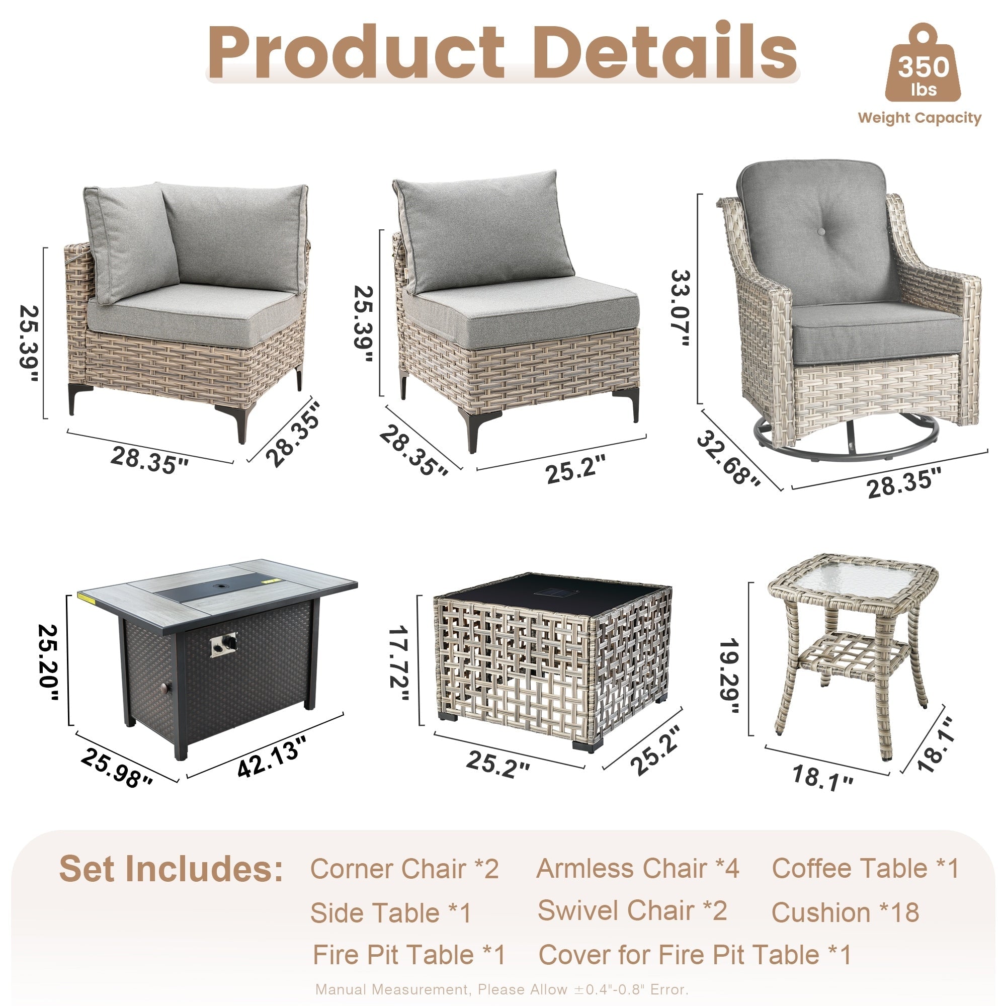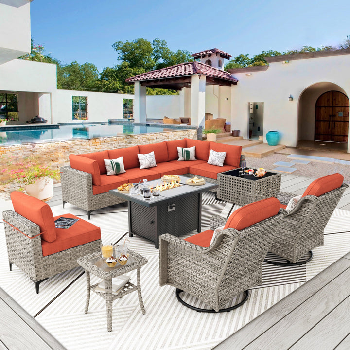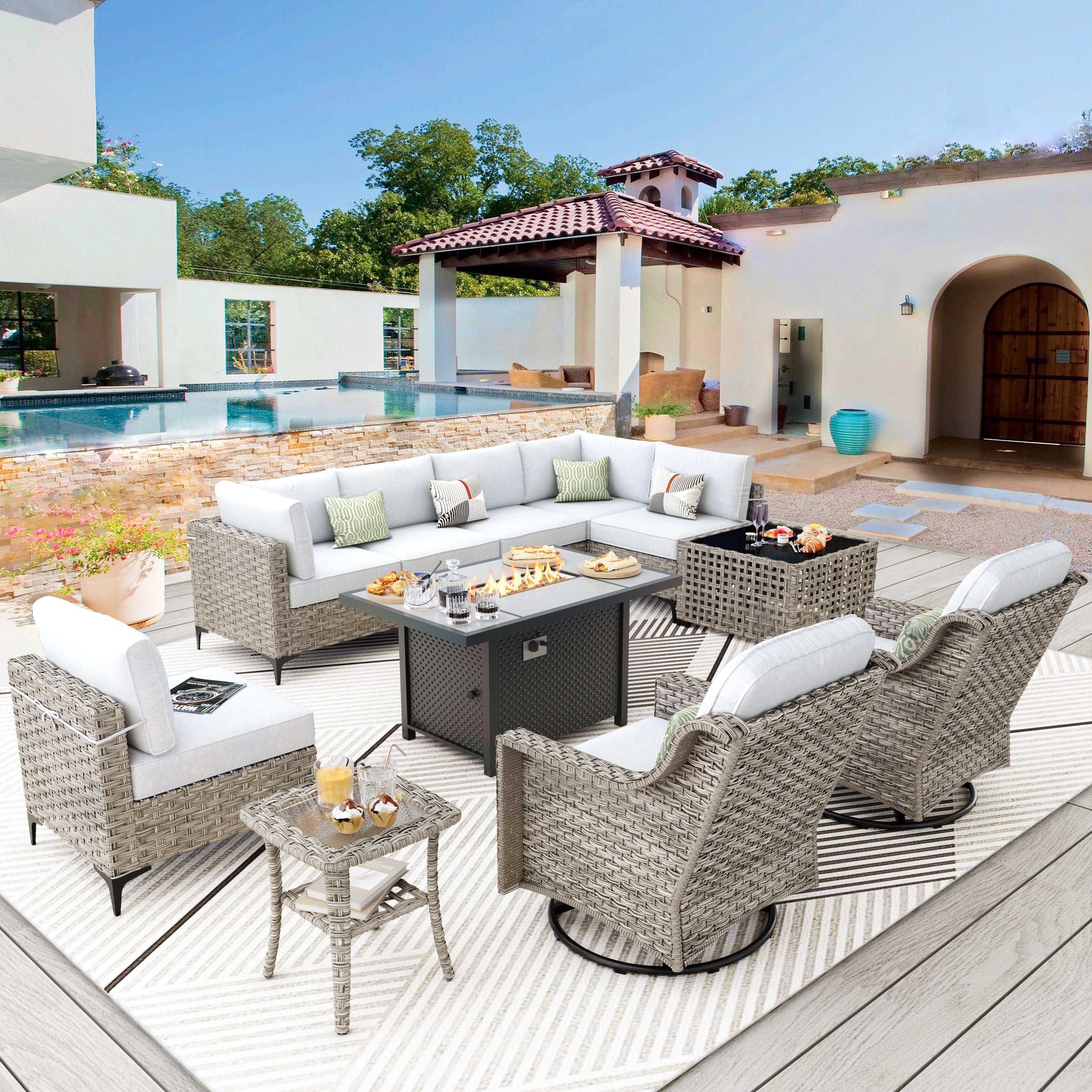 XIZZI 11-piece Patio Rattan Wicker Furniture Set with Fire Pit Table
