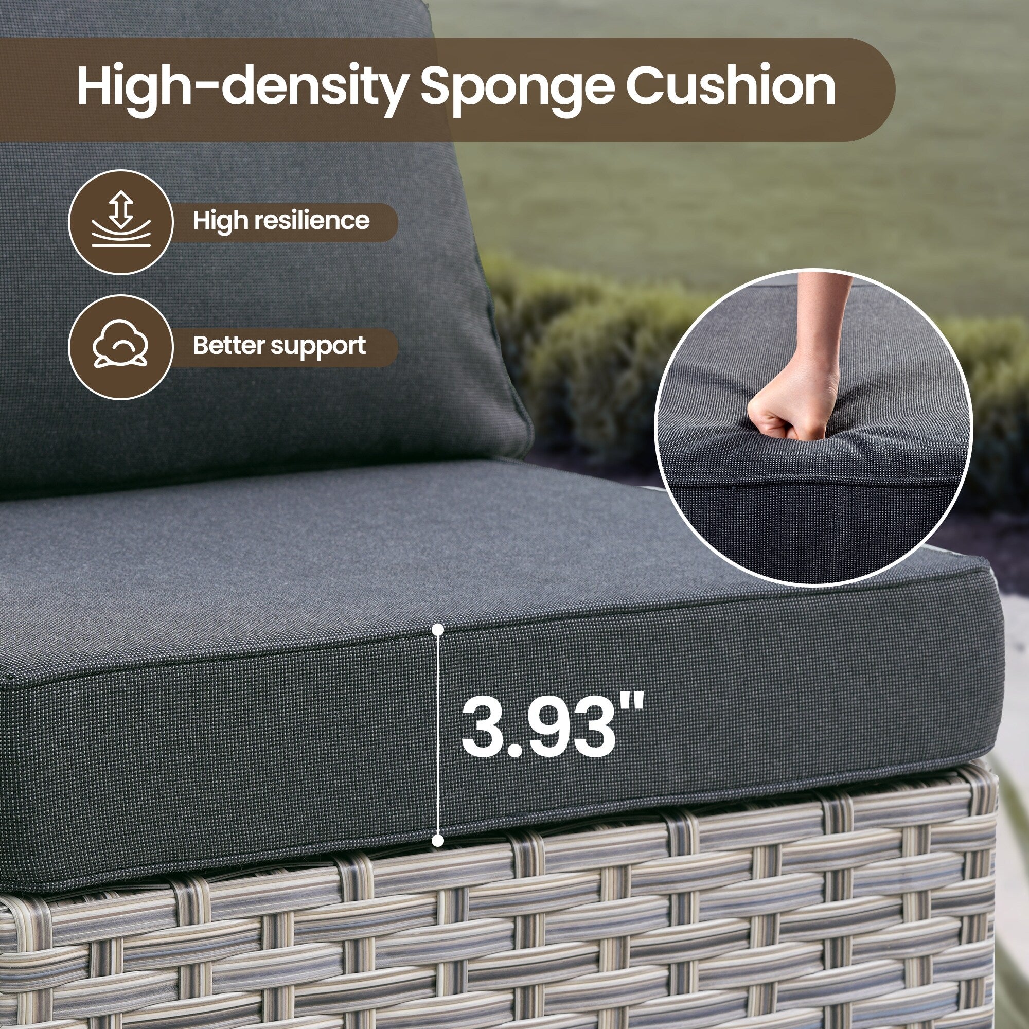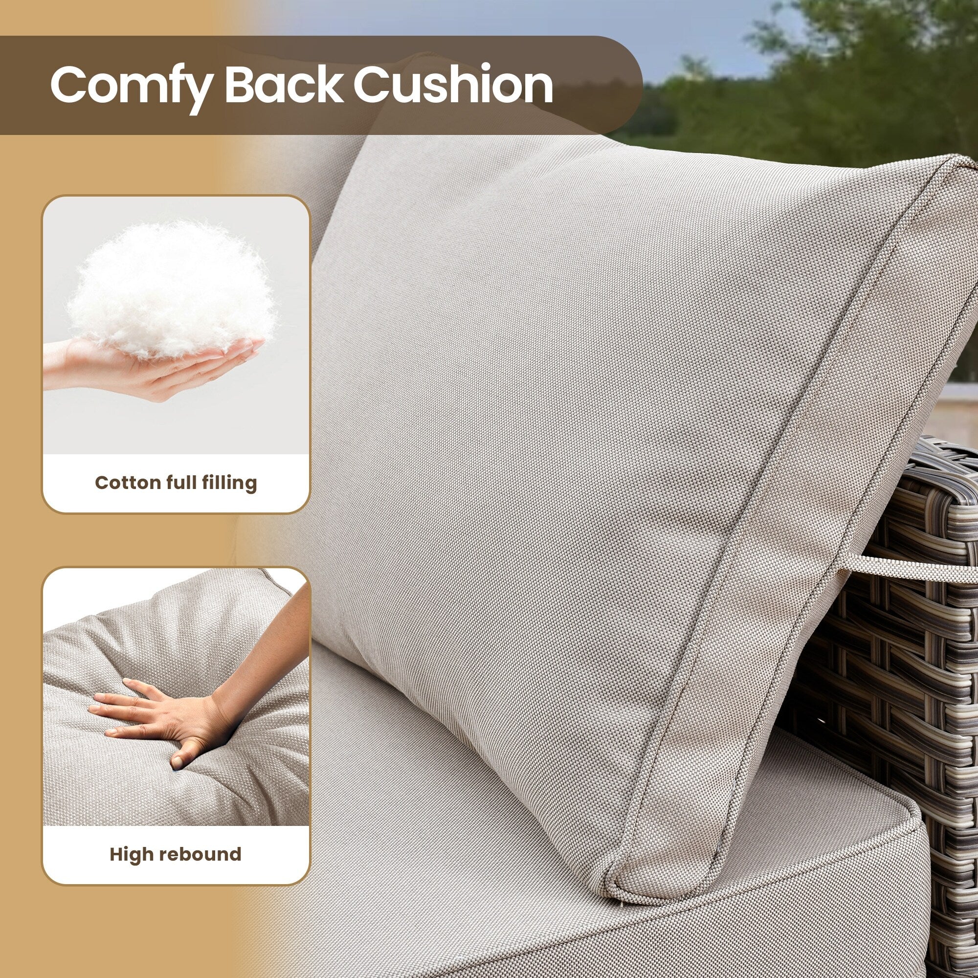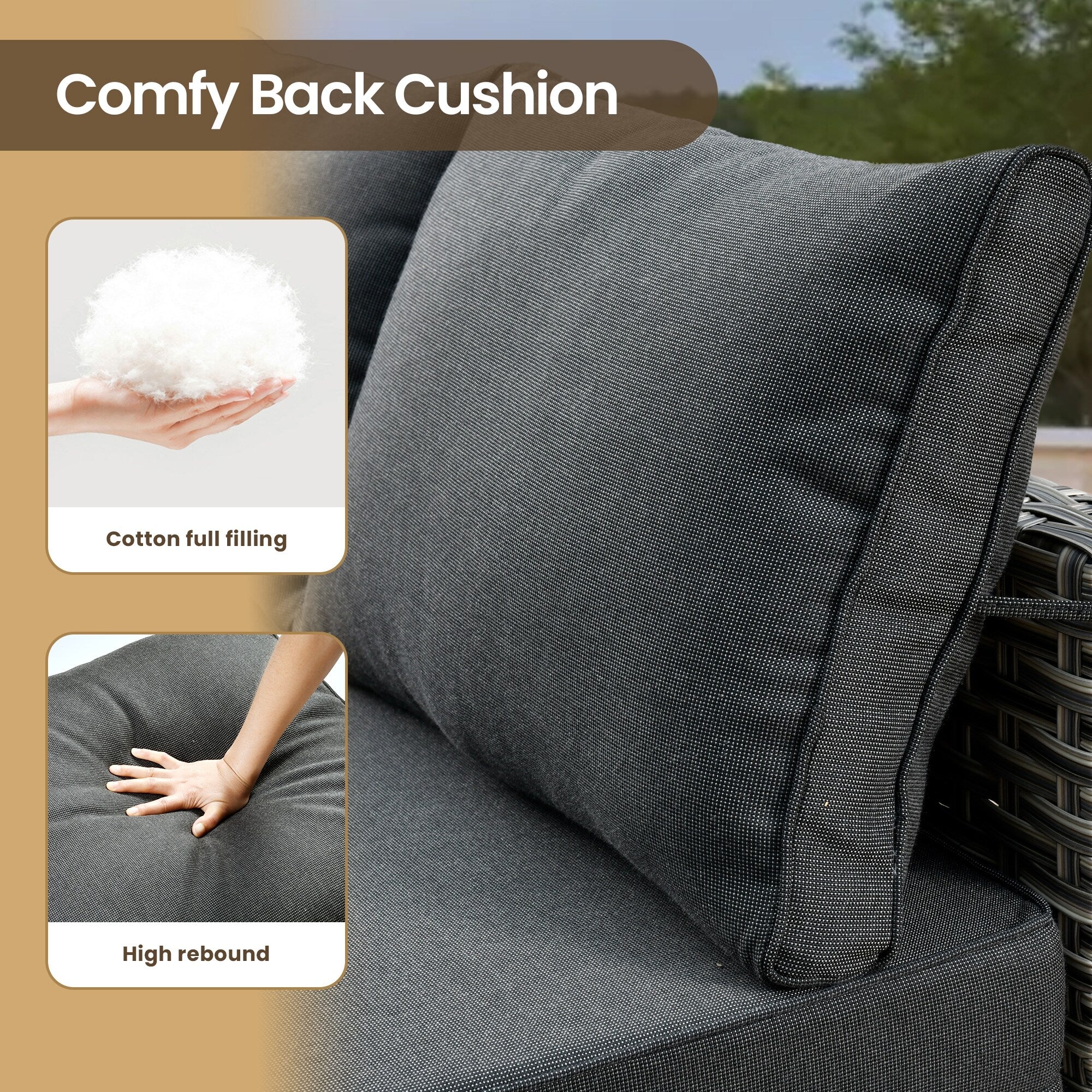 Gathering with friends or families for cocktails, chatting, or have a happy BBQ time to enrich the conversation and escape from your busy life. XIZZI patio furniture provides the perfect setting for your outdoor activities. Comes with high-density thick sponge padded seat cushions and fluffy back cushions for more comfort and relaxation. Modular design set can be rearranged into different combination as you want to suit any space. The fire place can be converted into a table easily with the lid covered for more functional experience. Ceramic tiles fire table top is heat-resistant and easy to clean. Coffee table with unique design create a romantic and warm atmosphere in the evening.