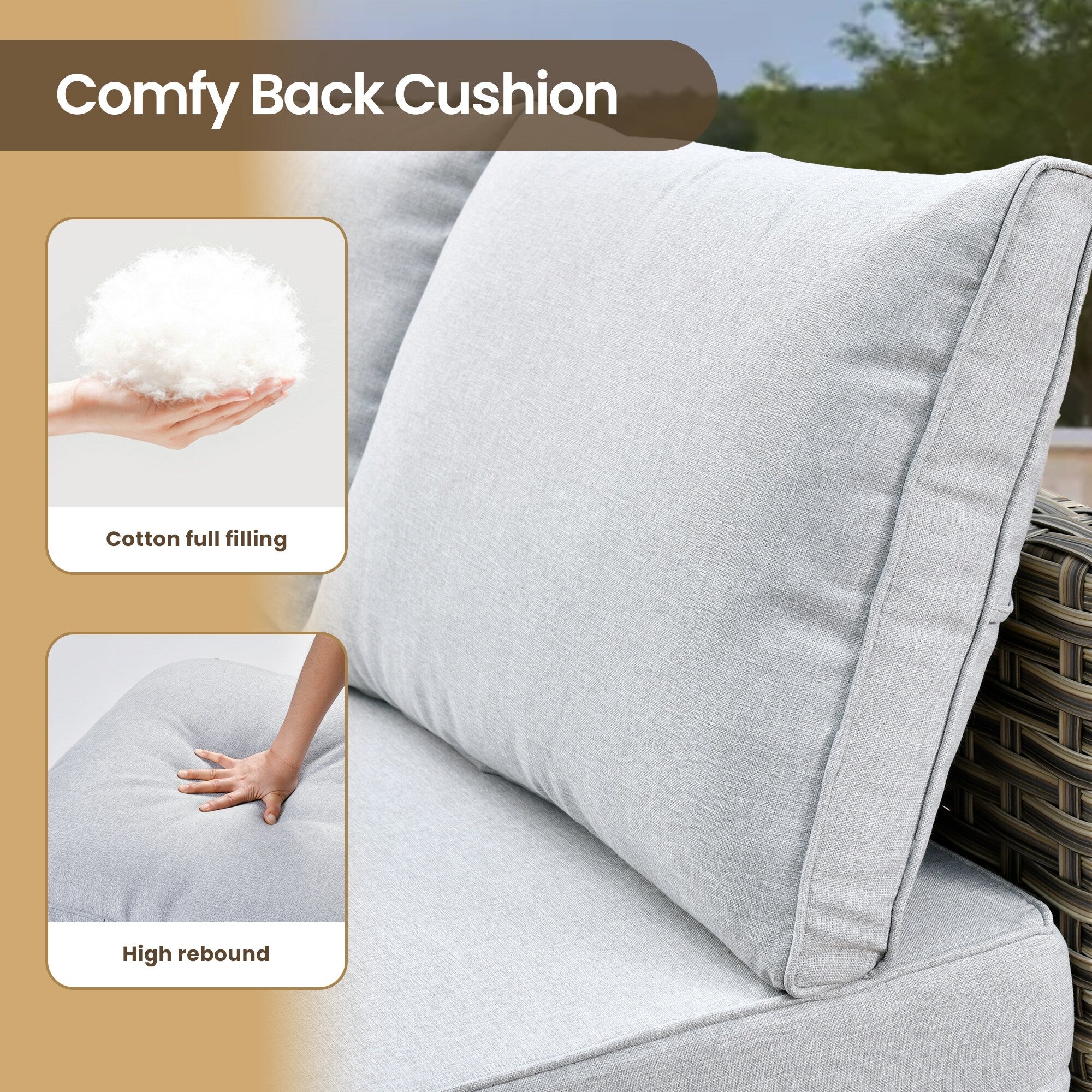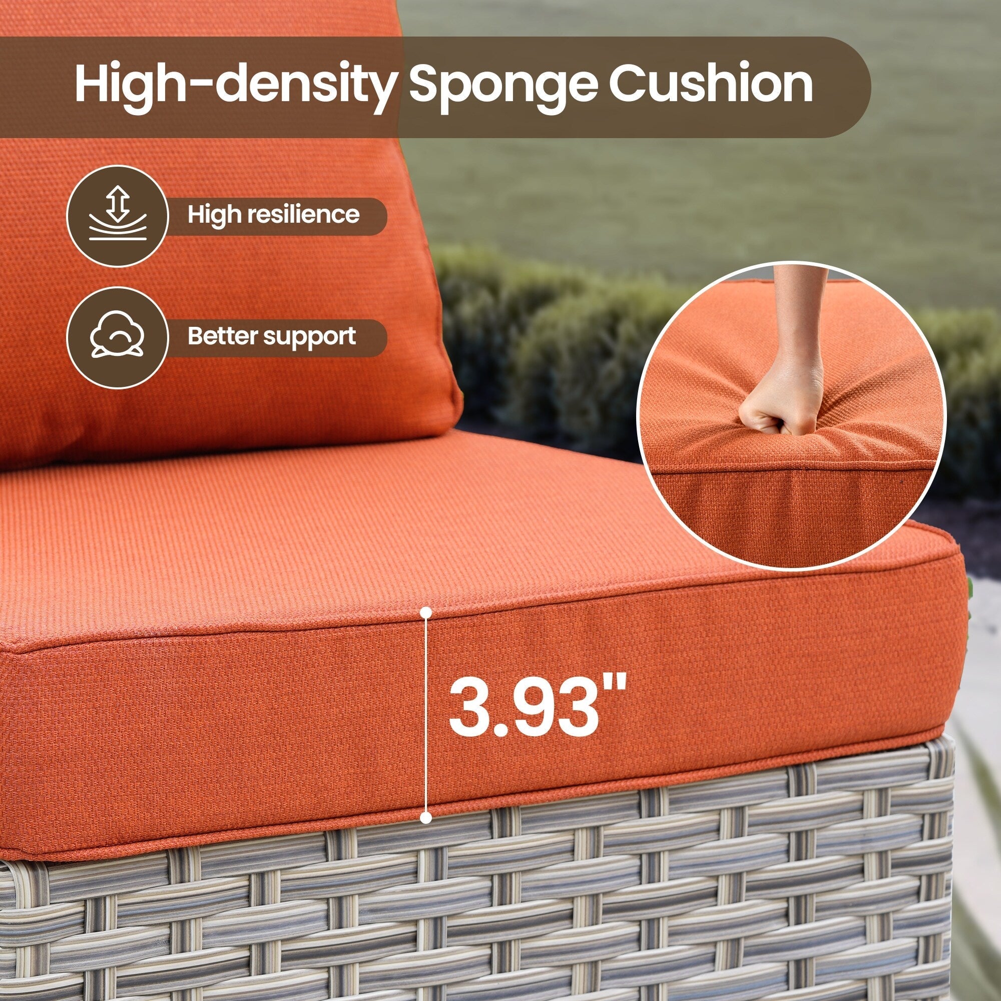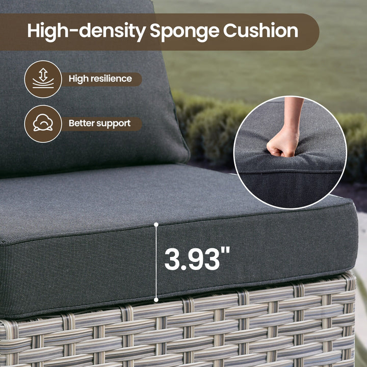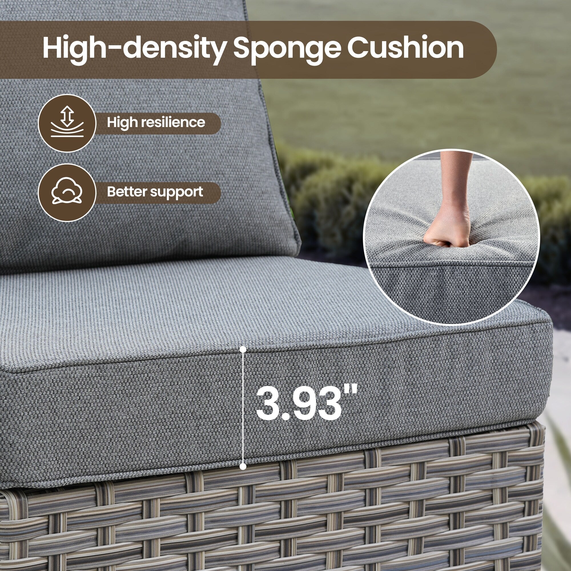 Gathering with friends or families for cocktails, chatting, or have a happy BBQ time to enrich the conversation and escape from your busy life. XIZZI patio furniture provides the perfect setting for your outdoor activities. Comes with high-density thick sponge padded seat cushions and fluffy back cushions for more comfort and relaxation. Modular design set can be rearranged into different combination as you want to suit any space. The fire place can be converted into a table easily with the lid covered for more functional experience. Ceramic tiles fire table top is heat-resistant and easy to clean. Coffee table with unique design create a romantic and warm atmosphere in the evening.
