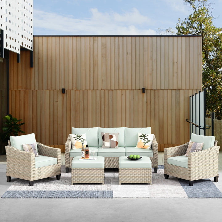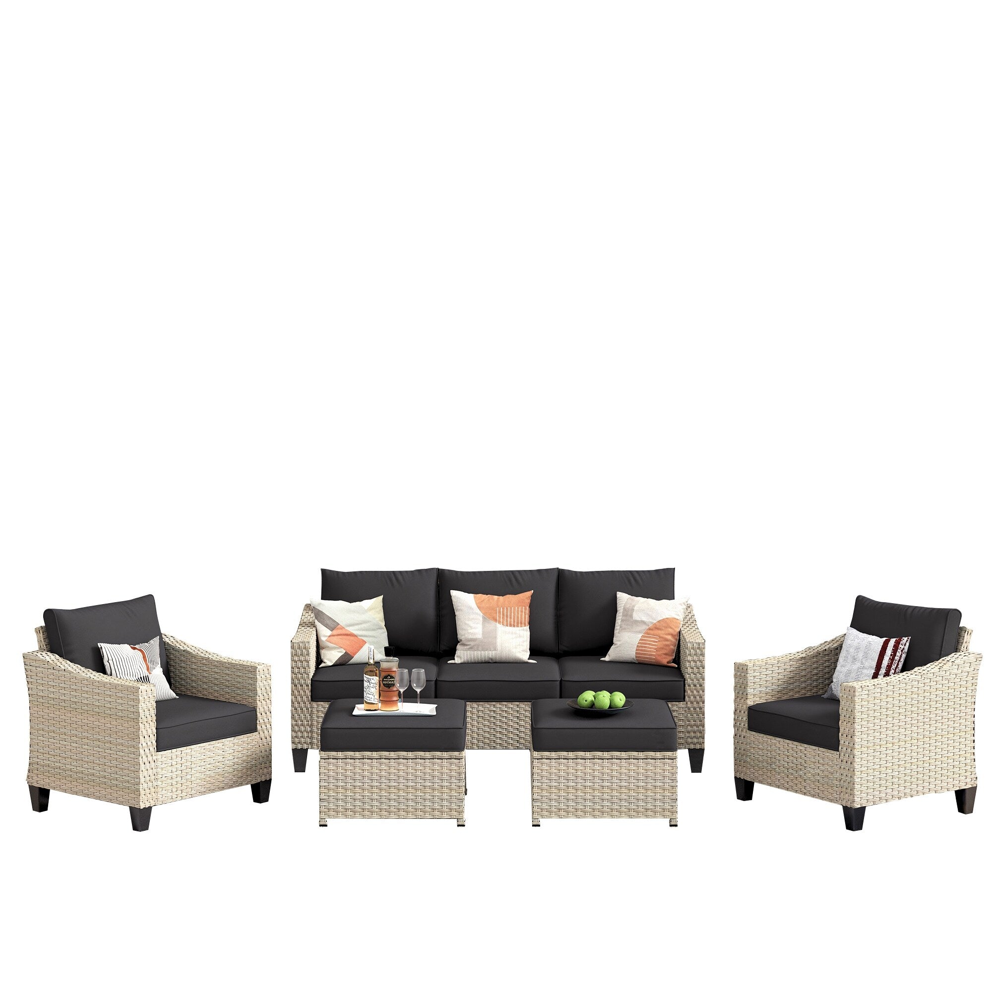 XIZZI 5-piece Outdoor Patio Furniture Rattan Wicker Conversation Sofa Set