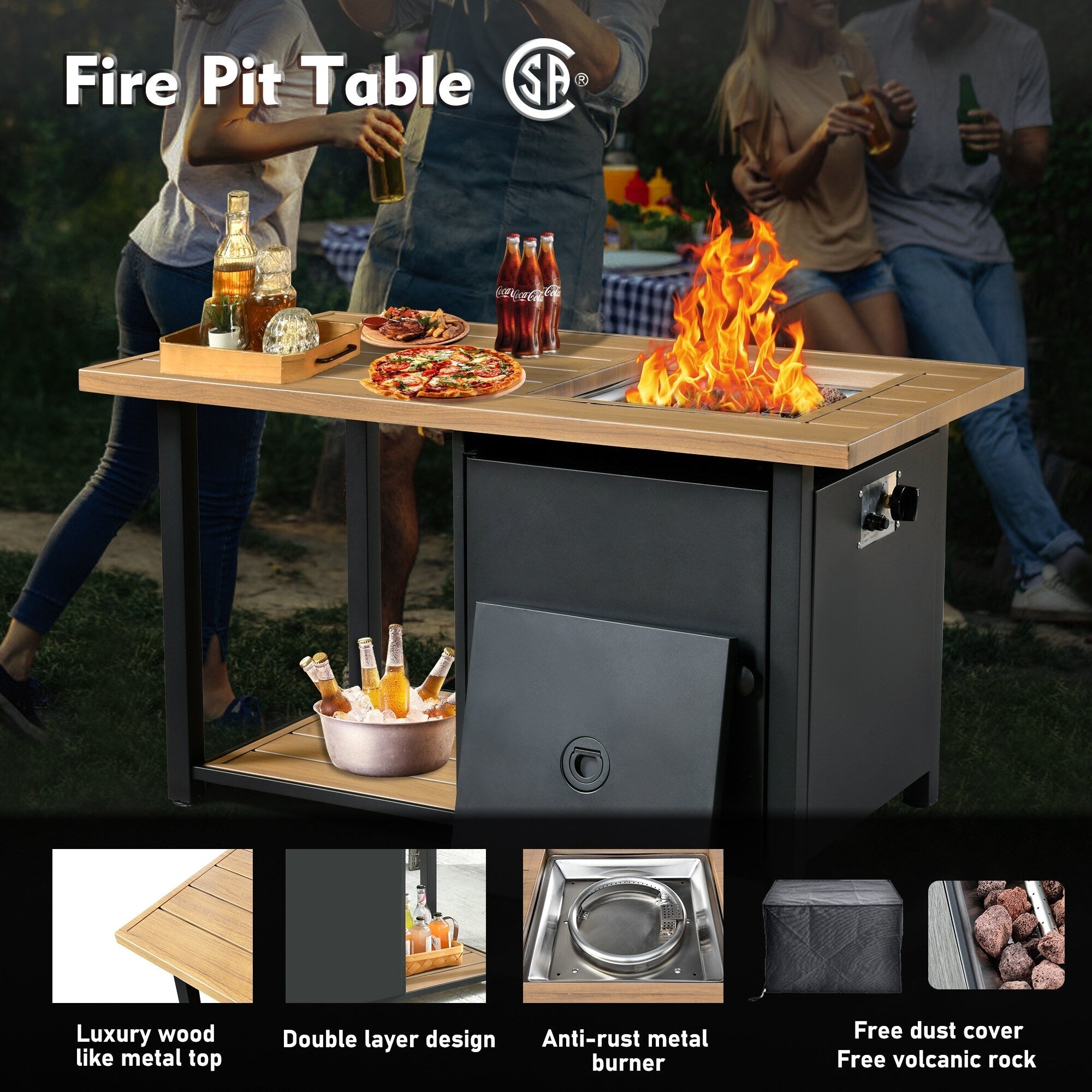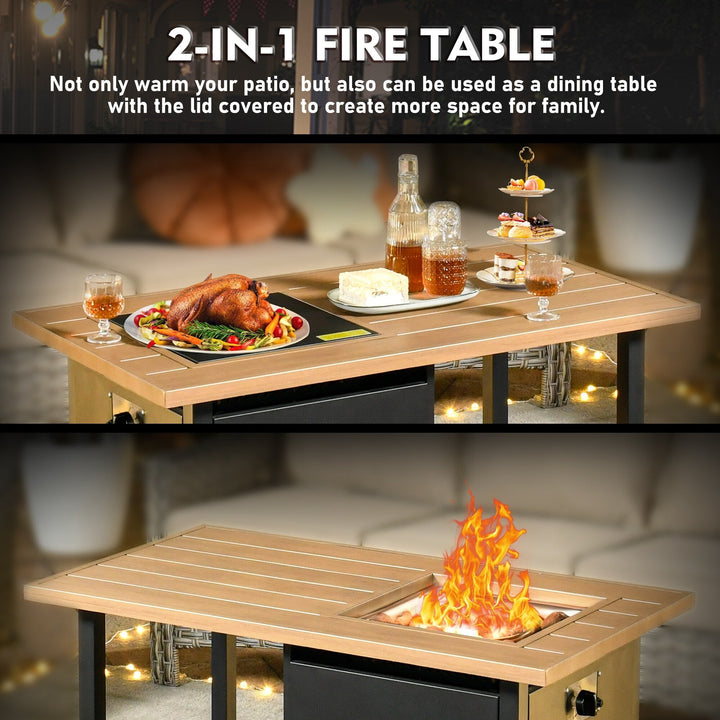 - Fire table can be converted into an outdoor dining table with the lid covered