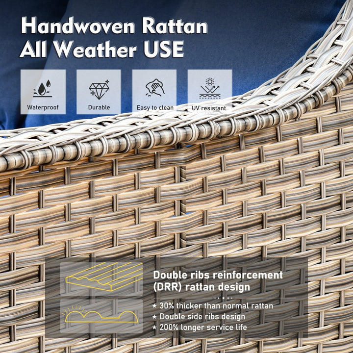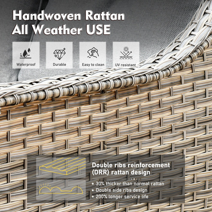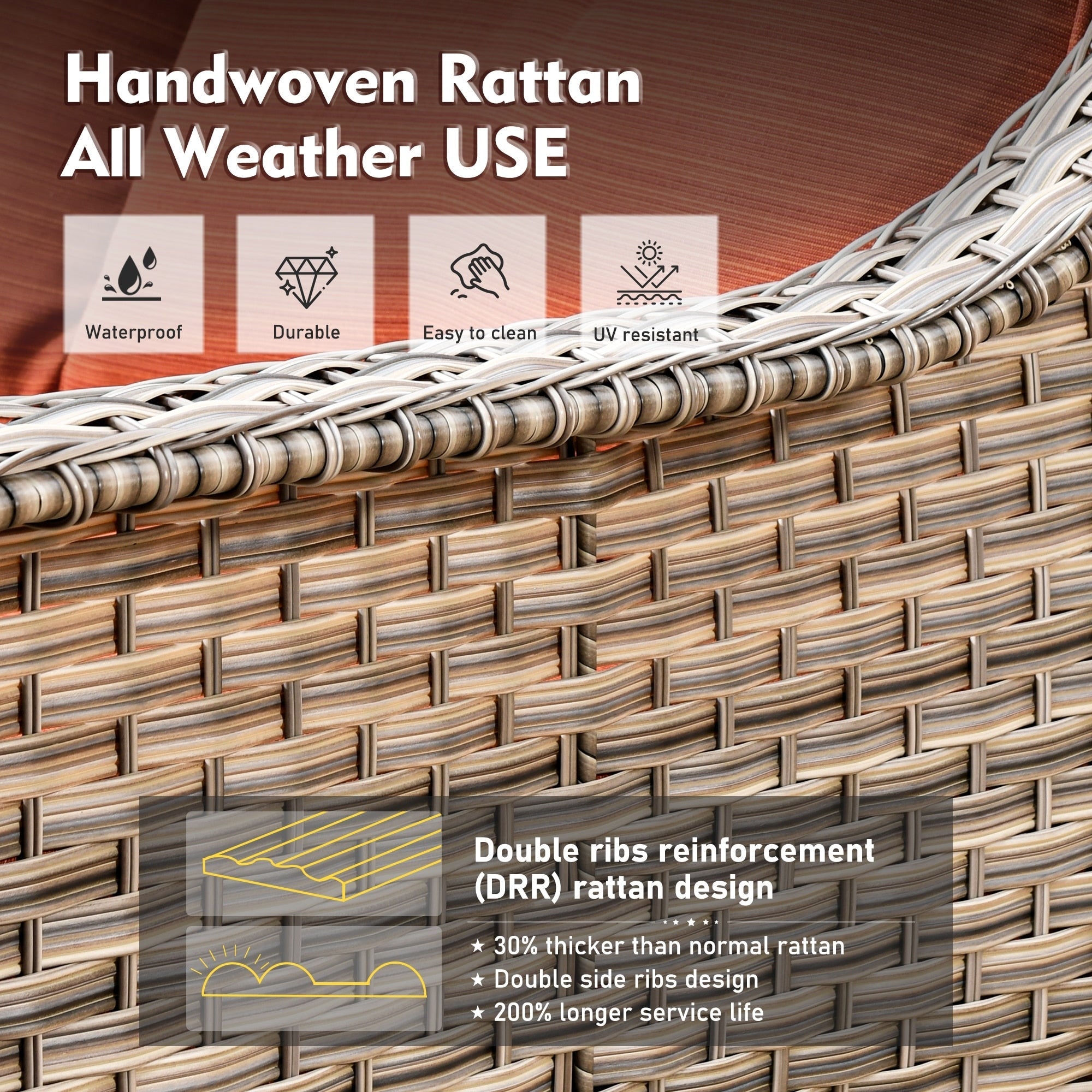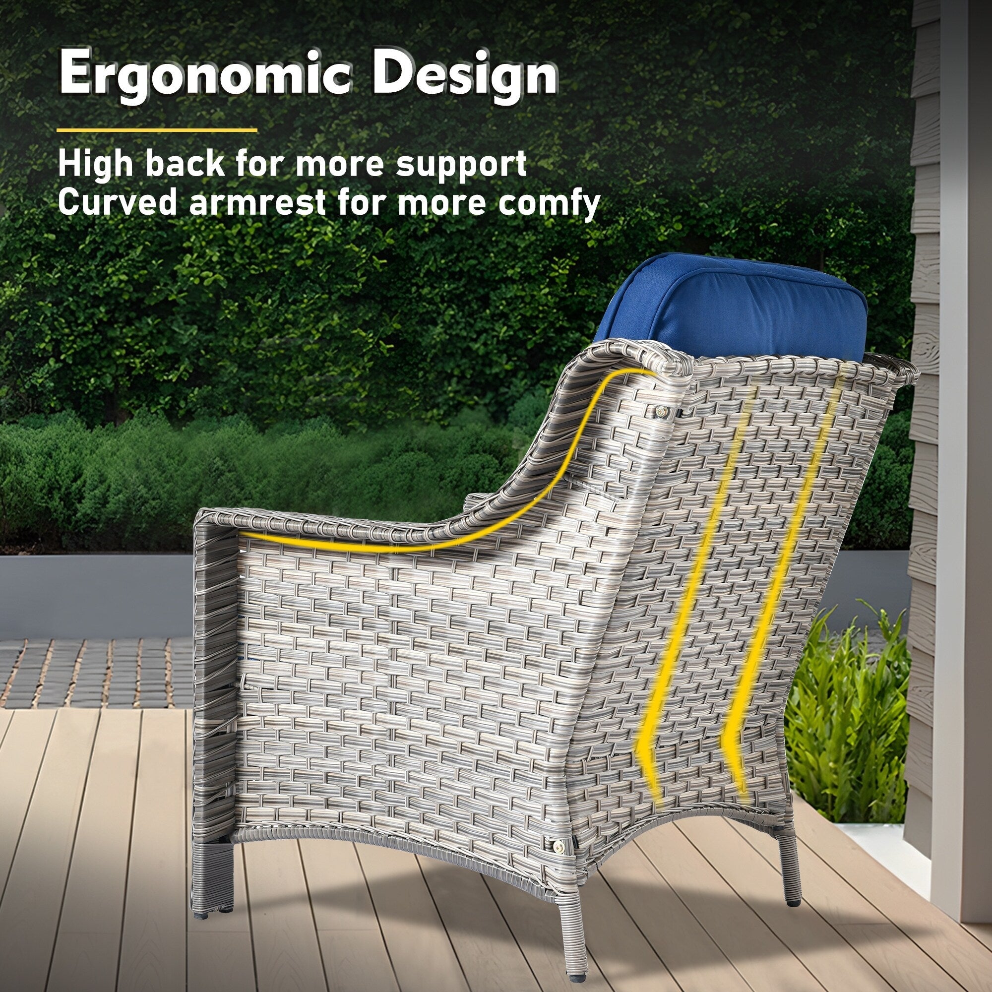 Outdoor wicker furniture set is crafted from high-quality PE wicker and UV-resistant water repellent fabric. The solid construction is sturdy and durable enough for long time outdoor using. High density cushions give you strong lumbar support and make you feel comfortable and relaxed. The fire pit table has a storage function to meet the storage needs, you can put some wine and beverages in the lower storage space, so that you can take out them to drink when dine. It is a durable and stylish outdoor furniture set that provides comfort and relaxation during your outdoor activities.