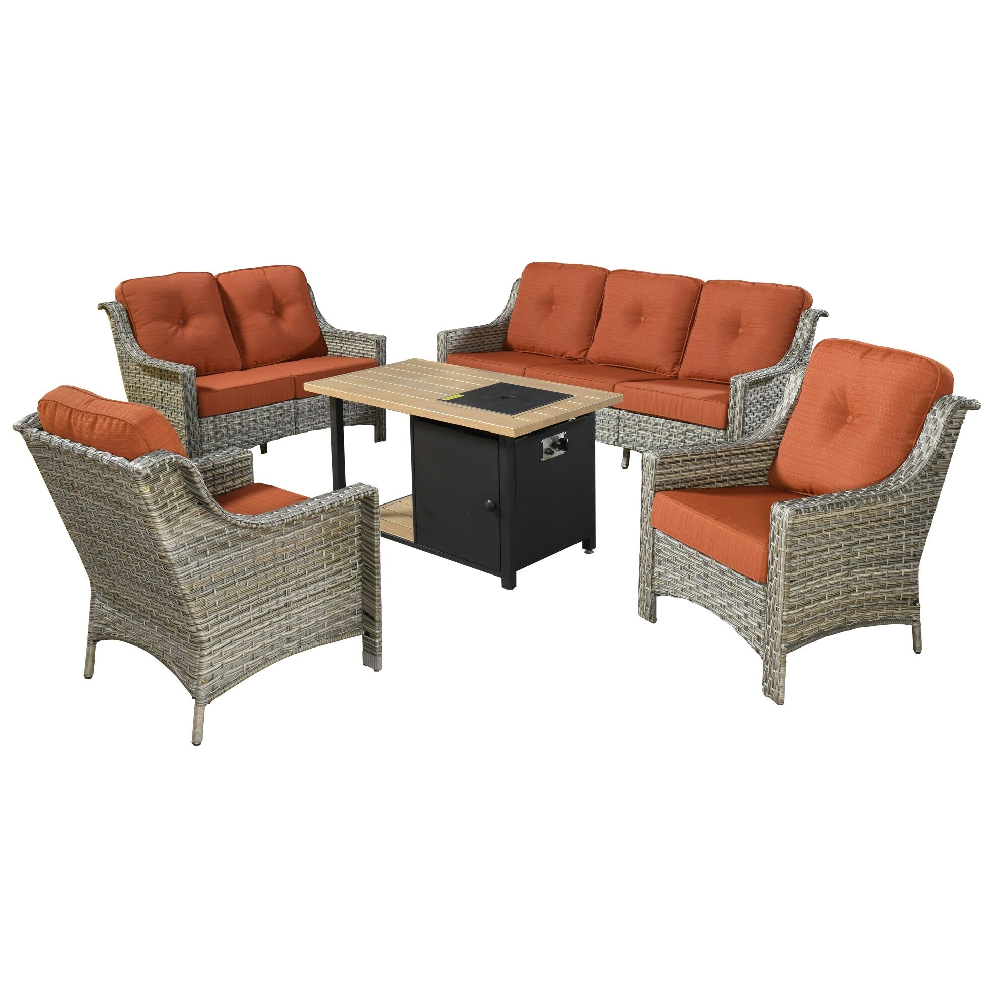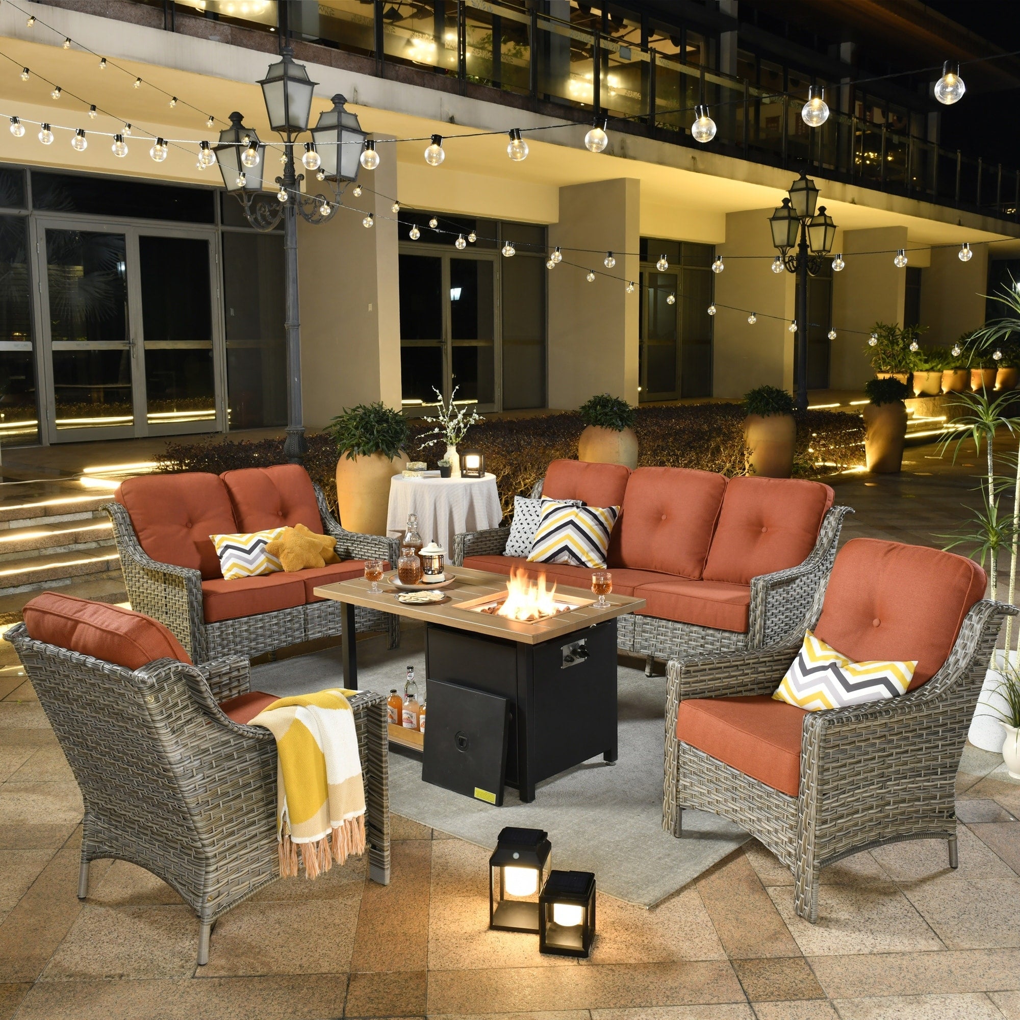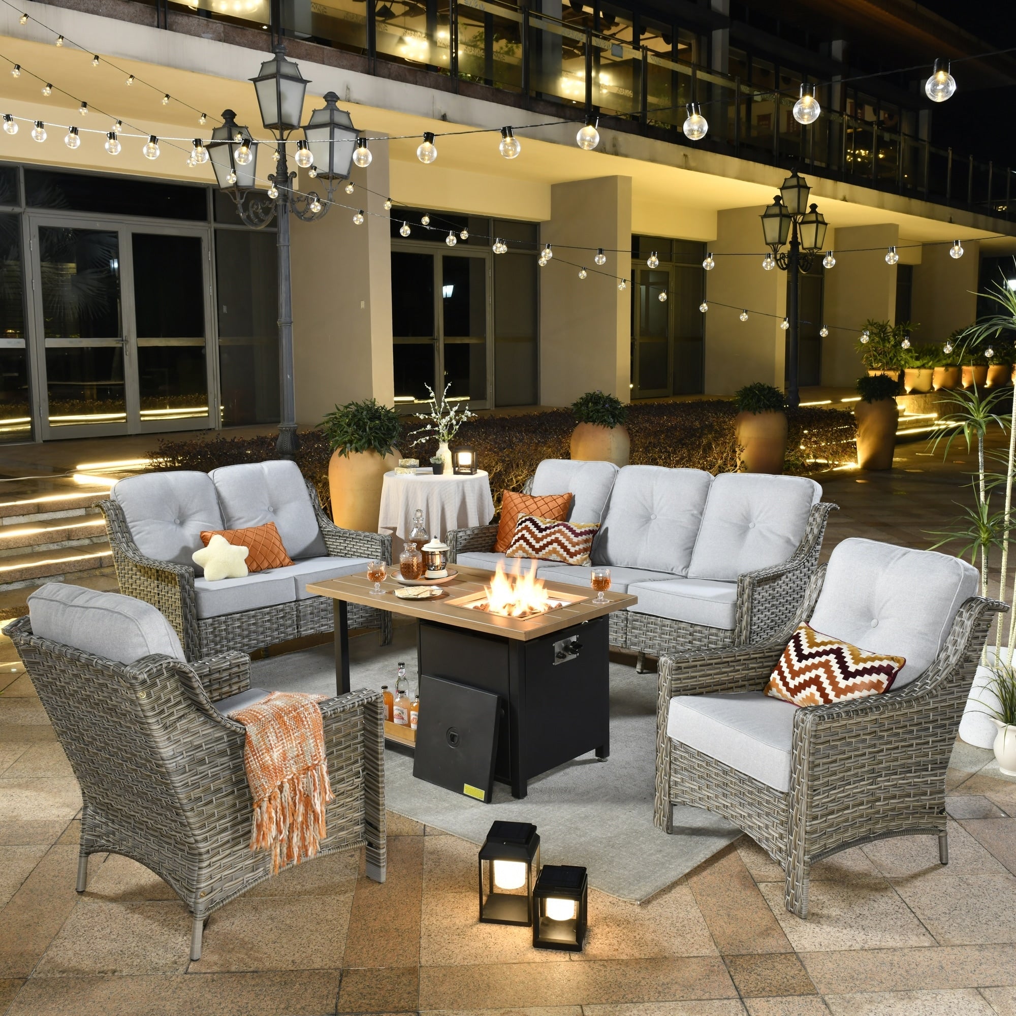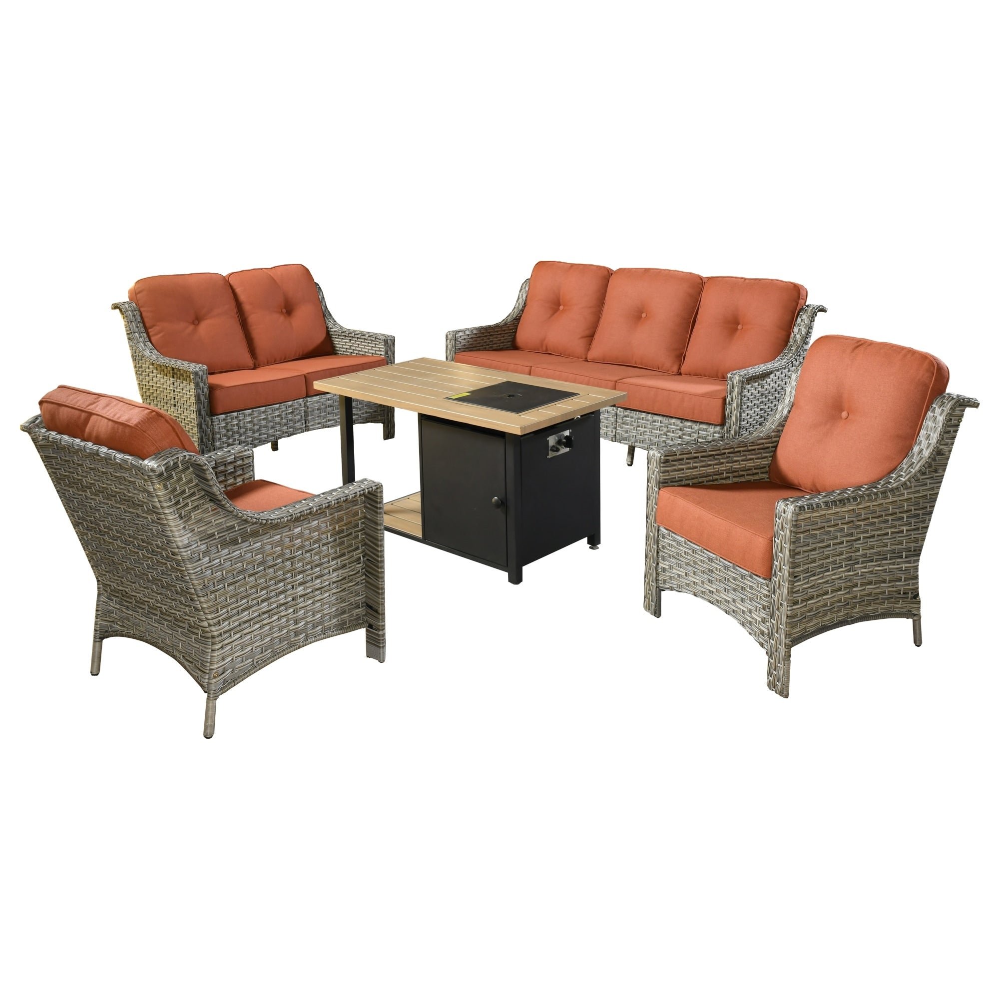 XIZZI 5-piece Patio Furniture Wicker Outdoor High Back Sofa Set with Fire Pit