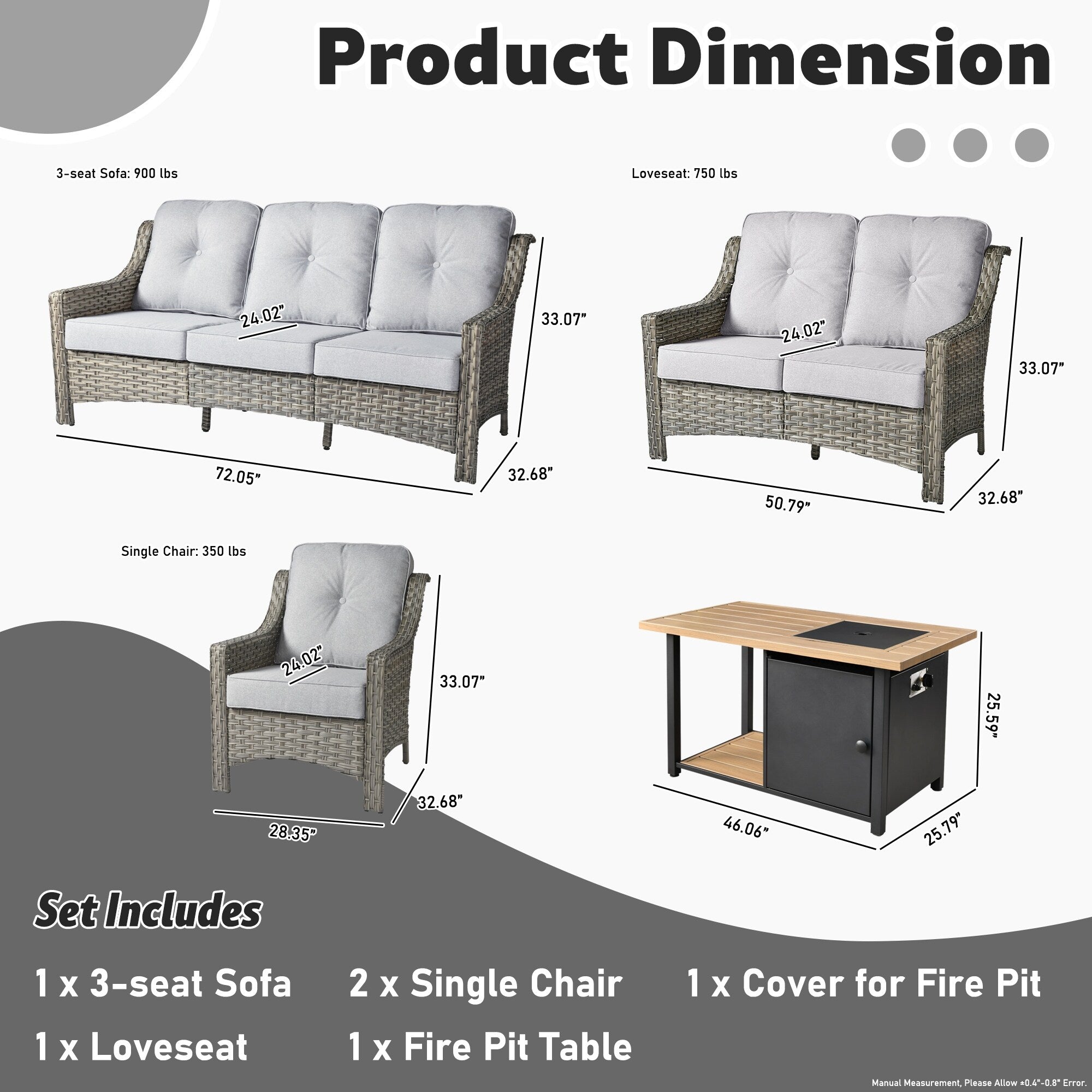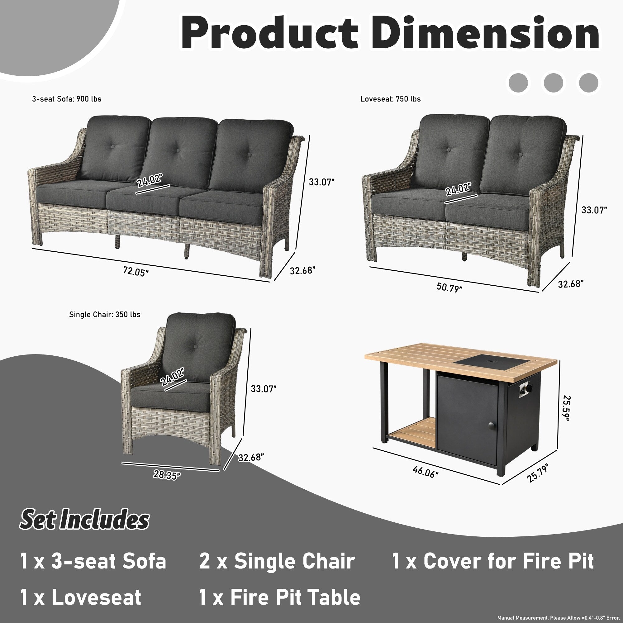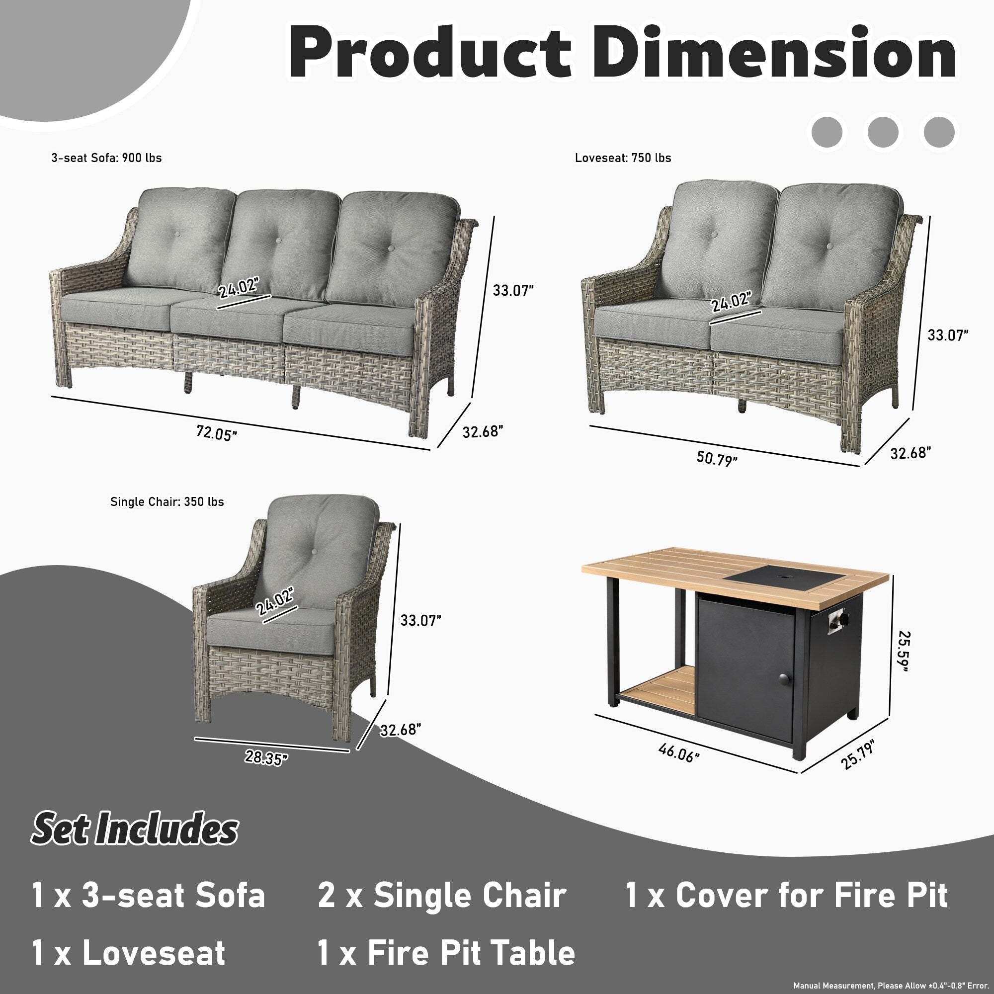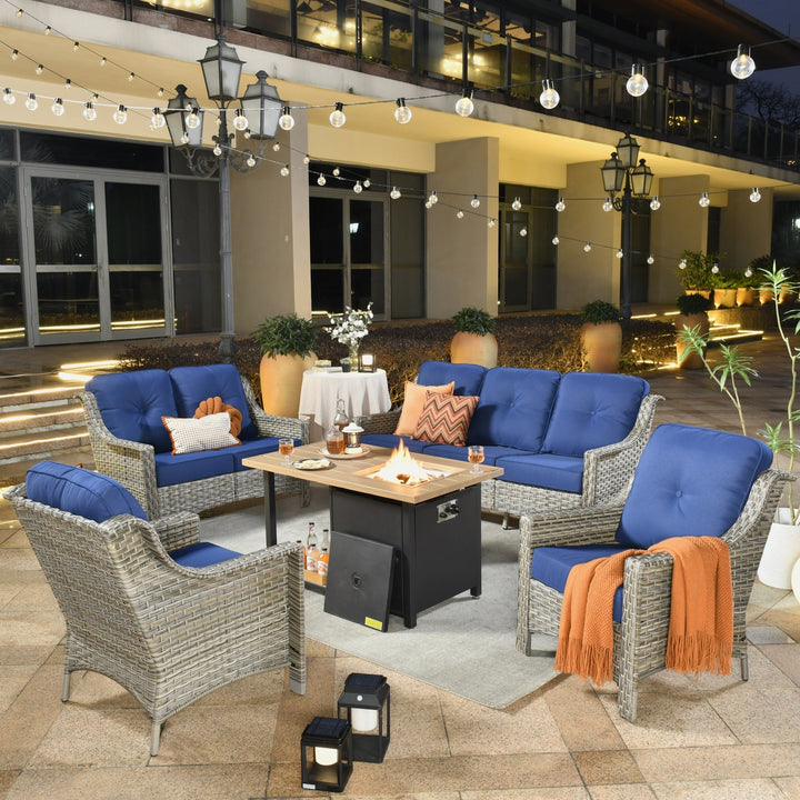 XIZZI 5-piece Patio Furniture Wicker Outdoor High Back Sofa Set with Fire Pit