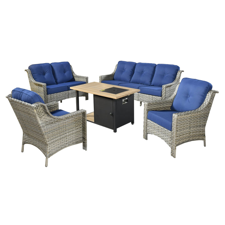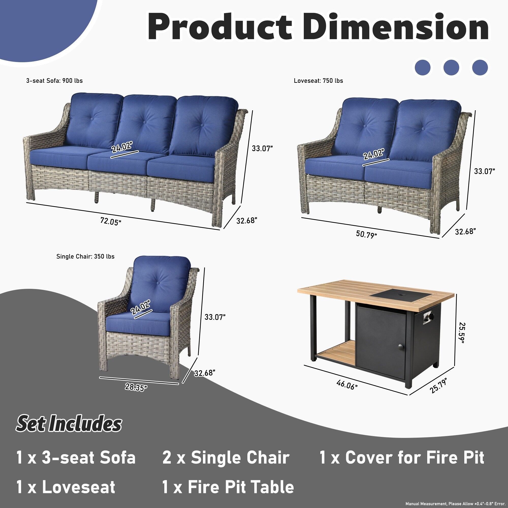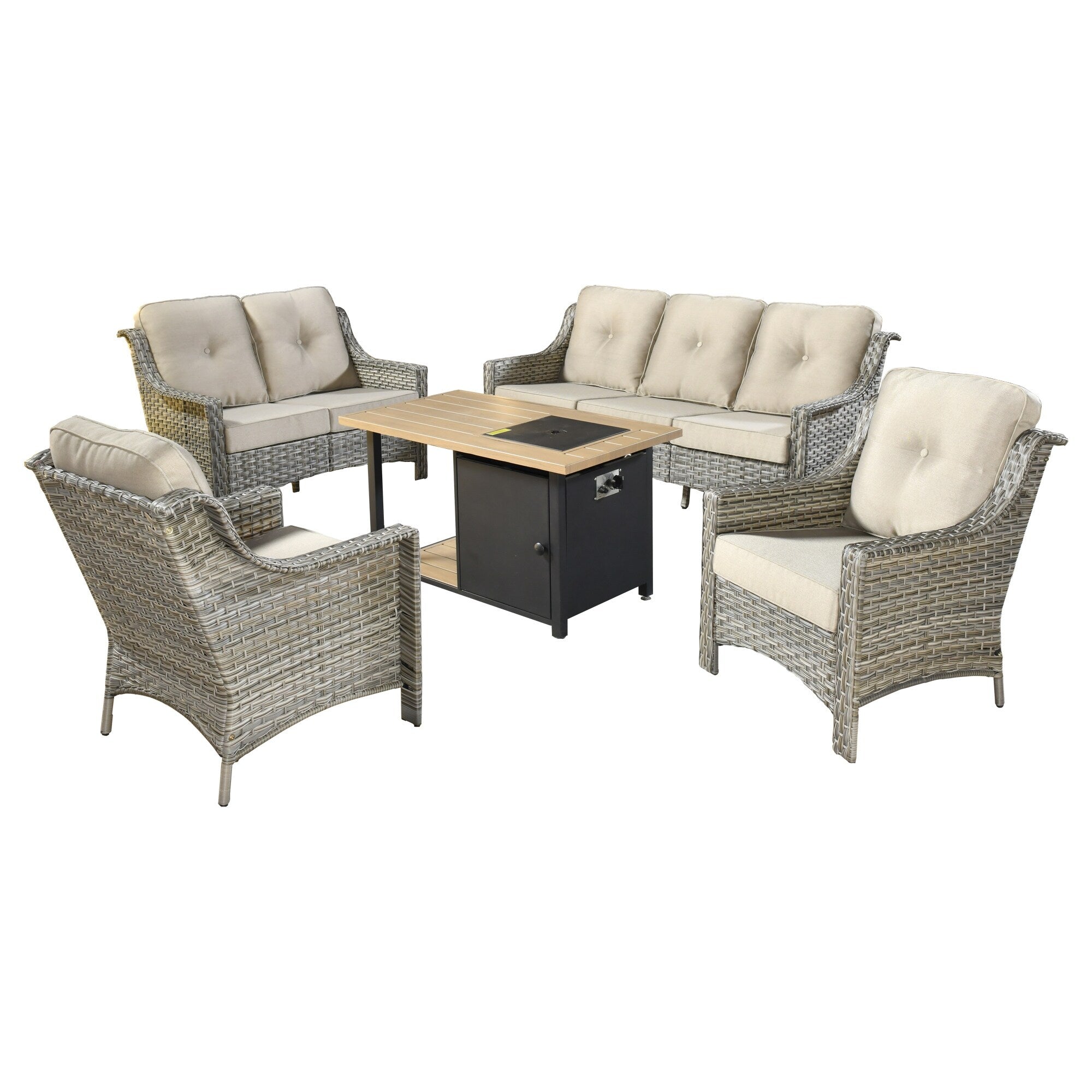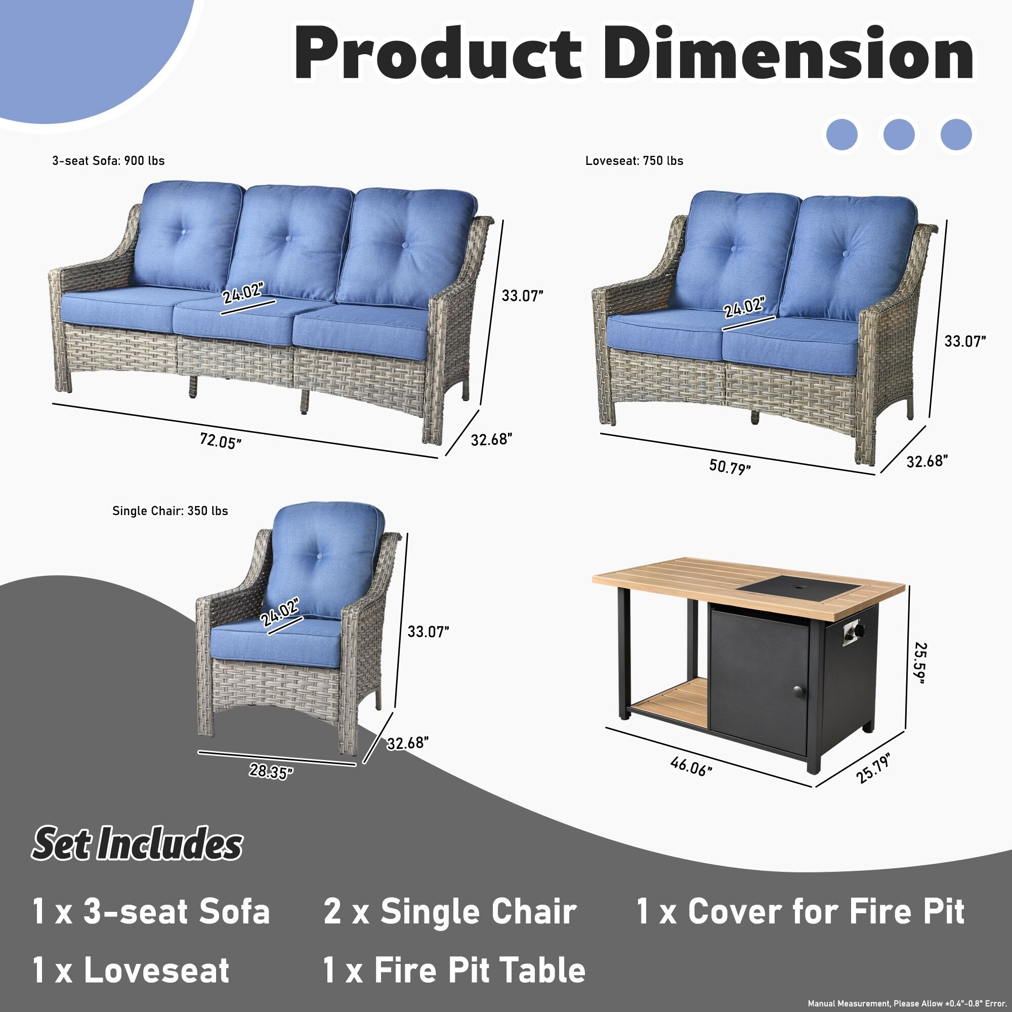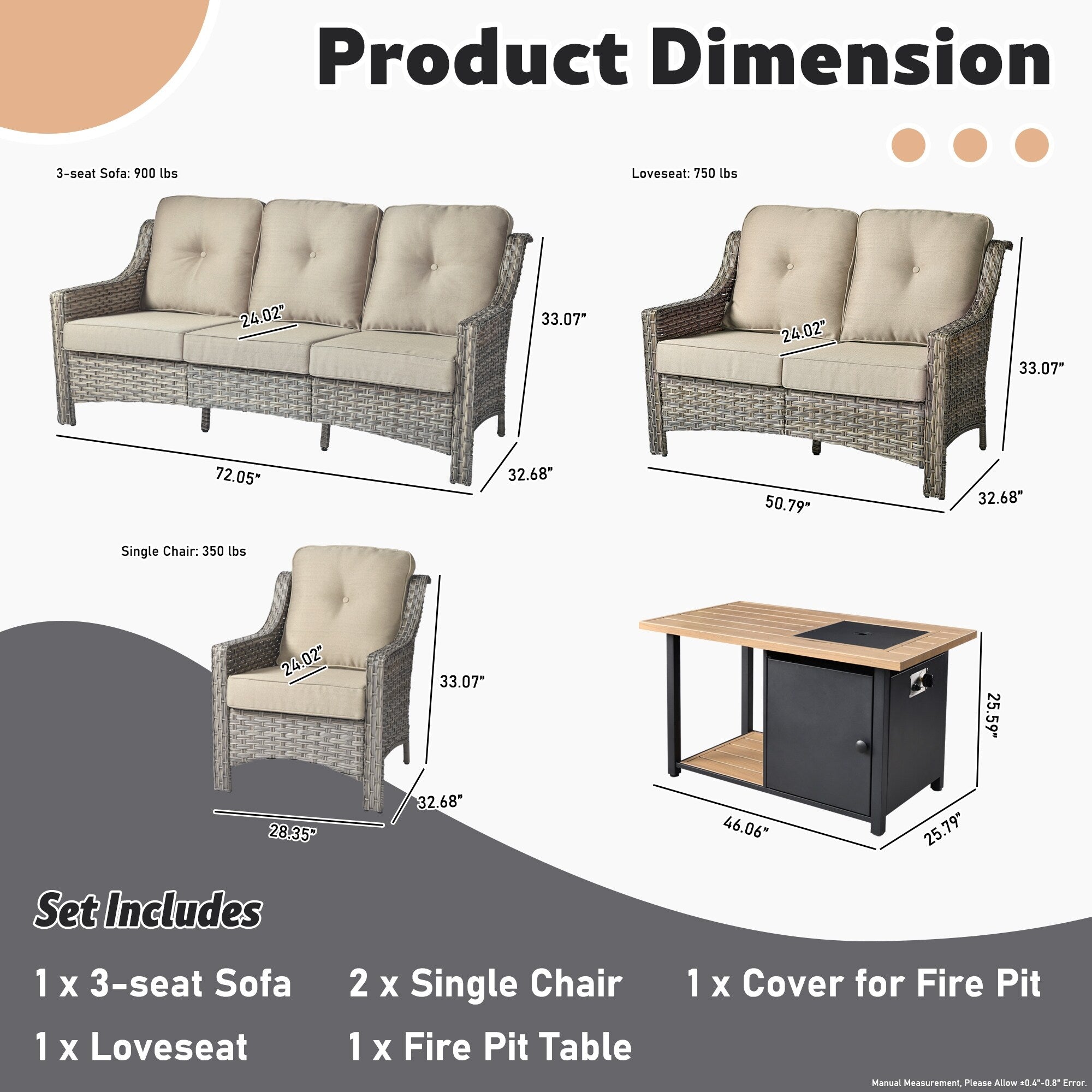XIZZI 5-piece Patio Furniture Wicker Outdoor High Back Sofa Set with Fire Pit