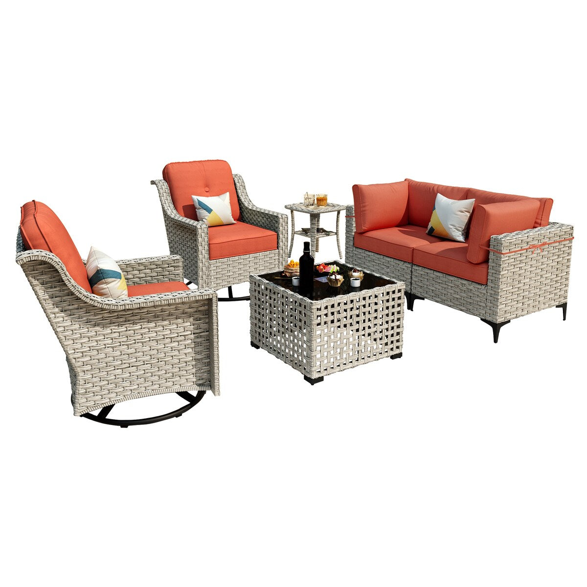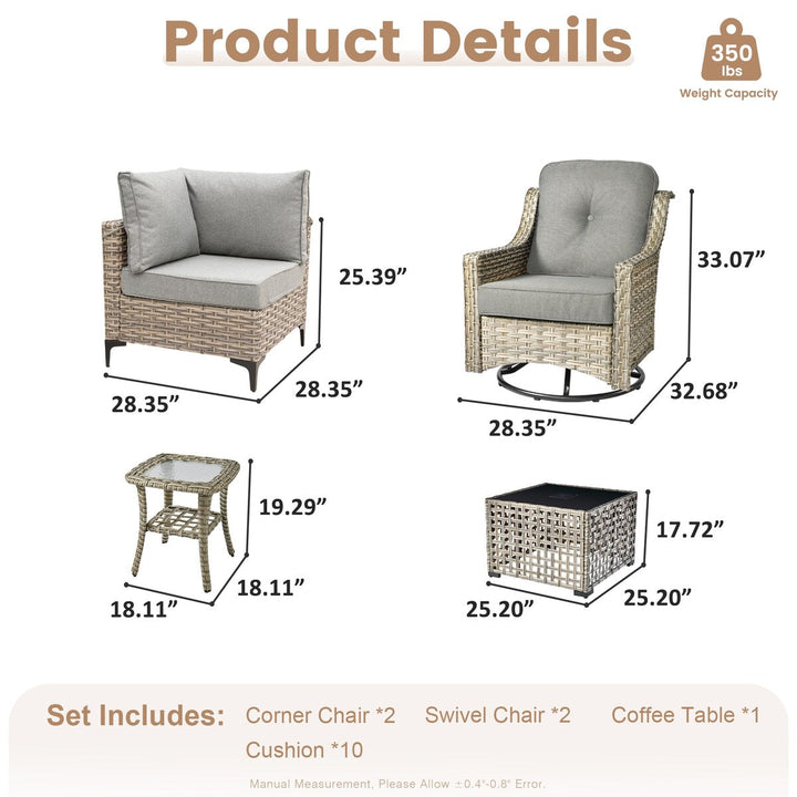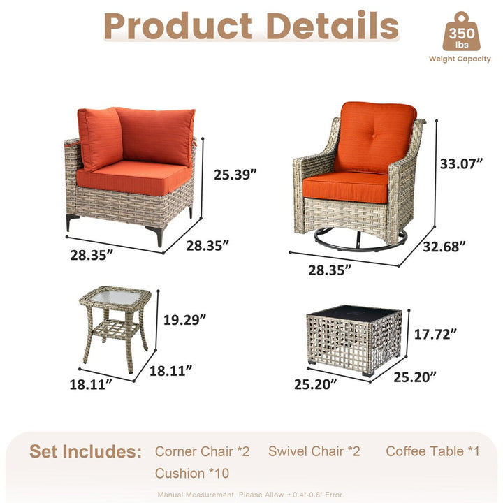 XIZZI 6-piece Patio Furniture Wicker Conversation Set with Swivel Chair