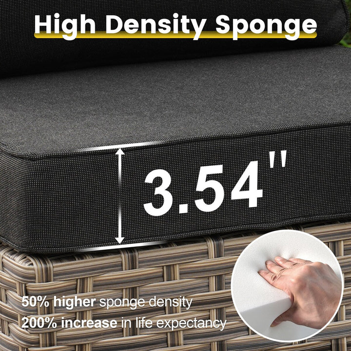Durable and weather-resistant patio conversation sofa set can withstand any outdoor conditions. The cushions are thick and comfortable, providing excellent support and relaxation and the covers are removable in case you need to change and clean them. Swivel rocking chairs are more stable with solid base structure and can rotate 360 degree and rock back or forth smoothly. Coffee table and side table with tempered glass top, sturdy and easy to clean. You can enjoy a refreshing beverage or favorite books by your side or put a potted plant on as a decoration. Rattan wicker patio furniture sofa set is ideal for outdoor patio, porch, backyard, balcony, poolside, garden, deck and other suitable space in your home.