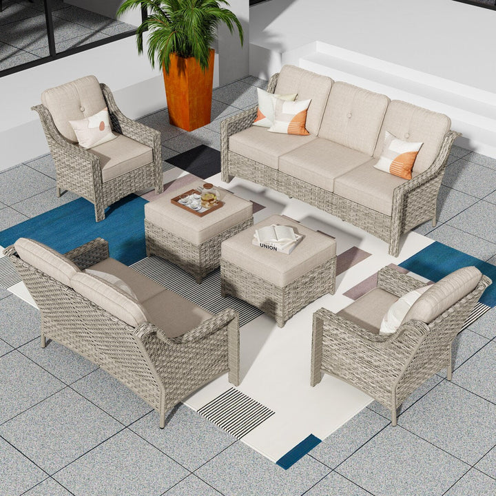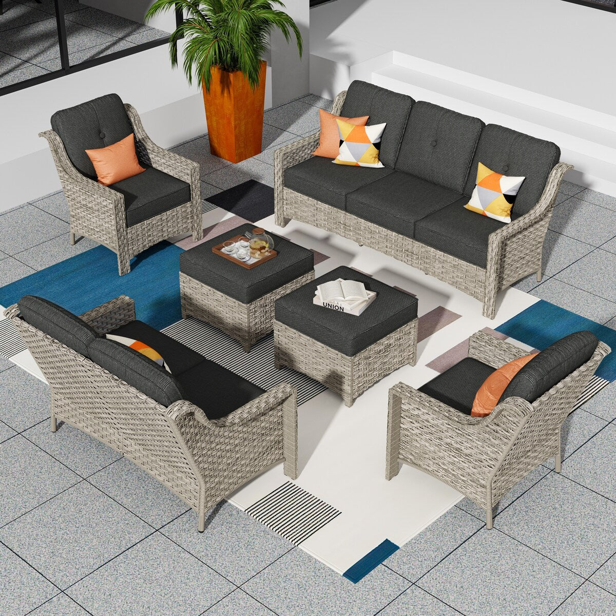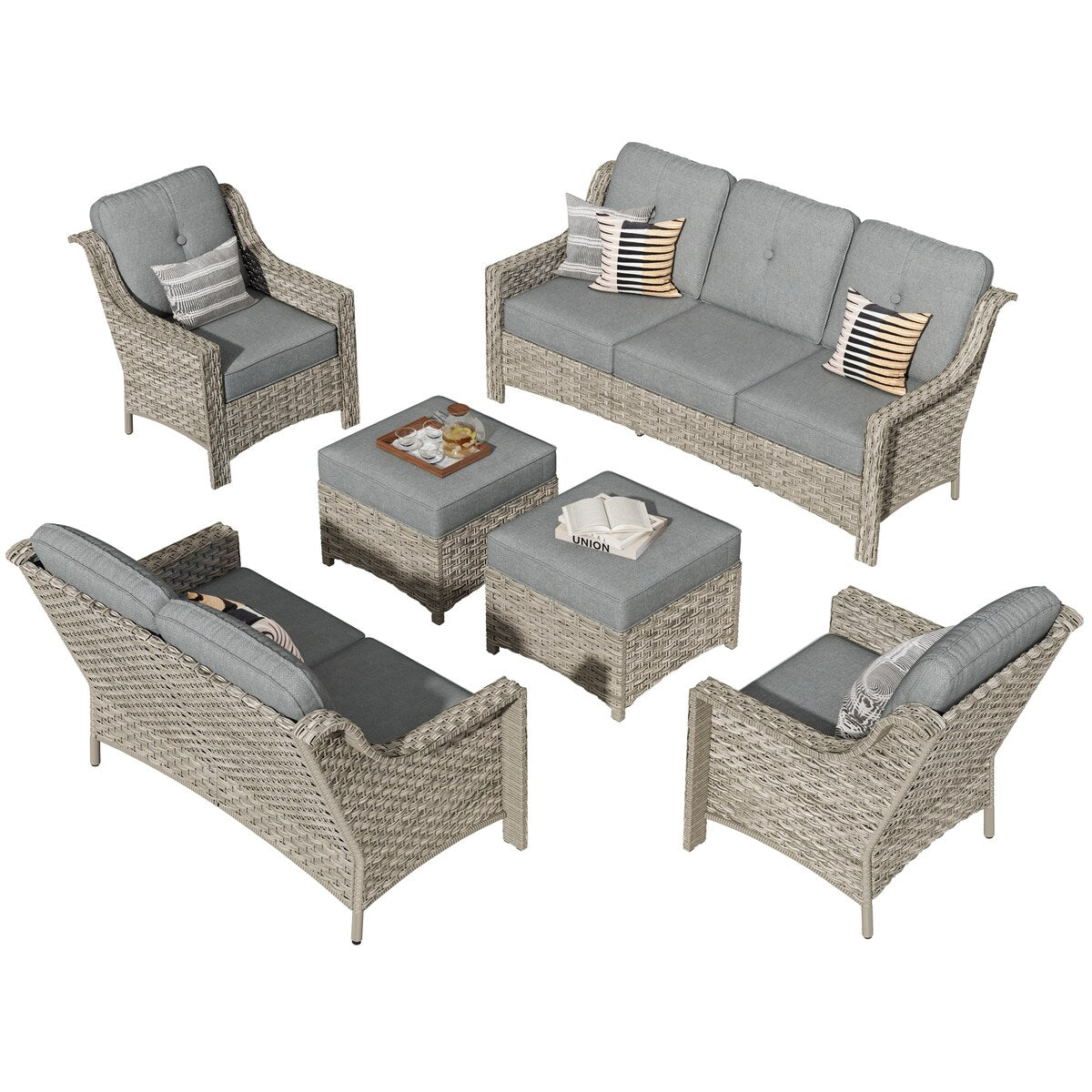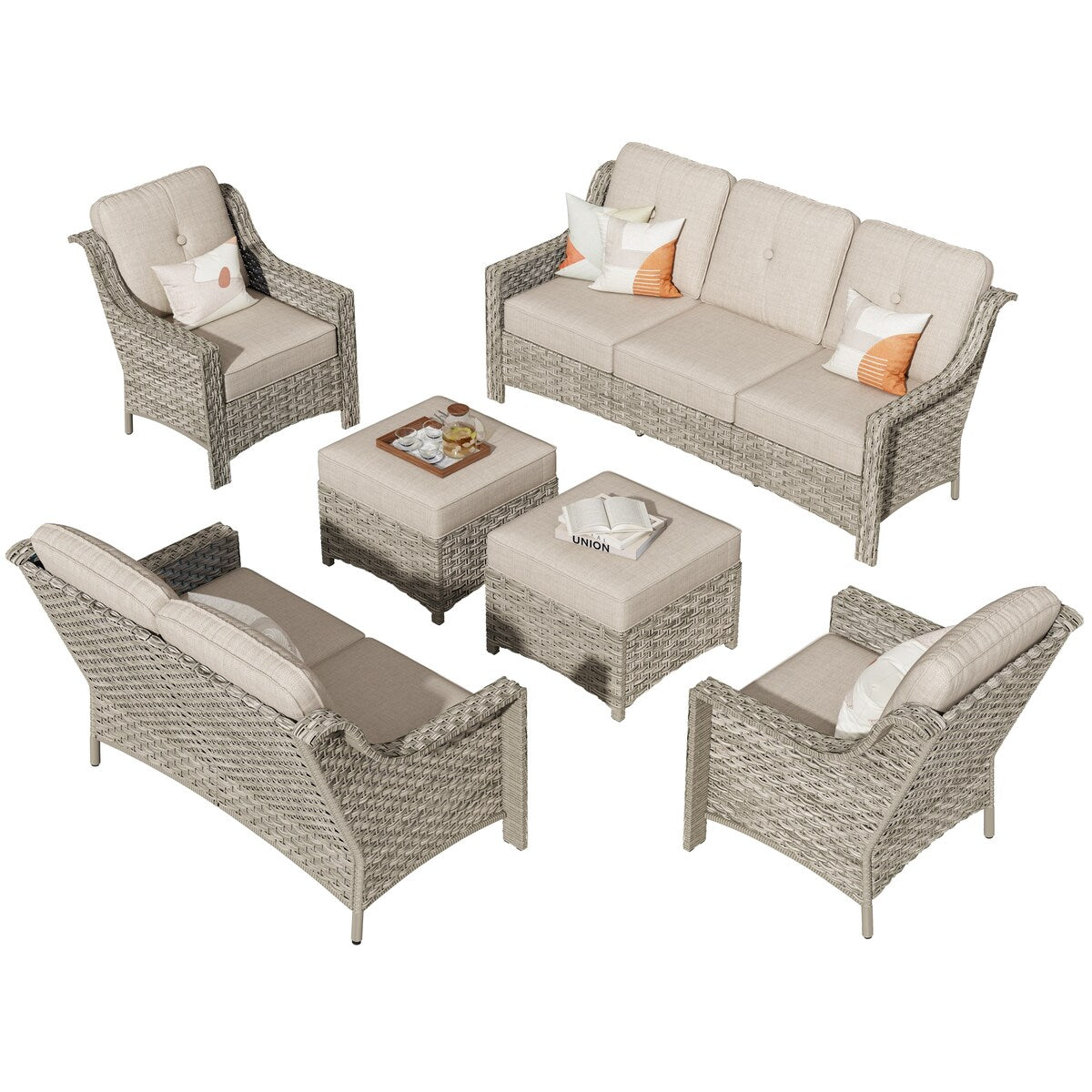 XIZZI 6-Piece Patio Wicker Outdoor Furniture Deep Seat Conversation Sofa Set