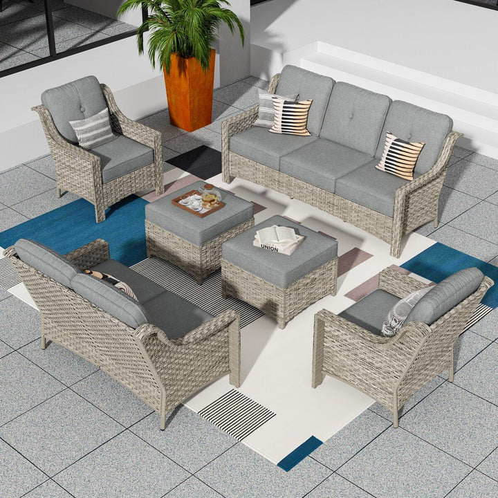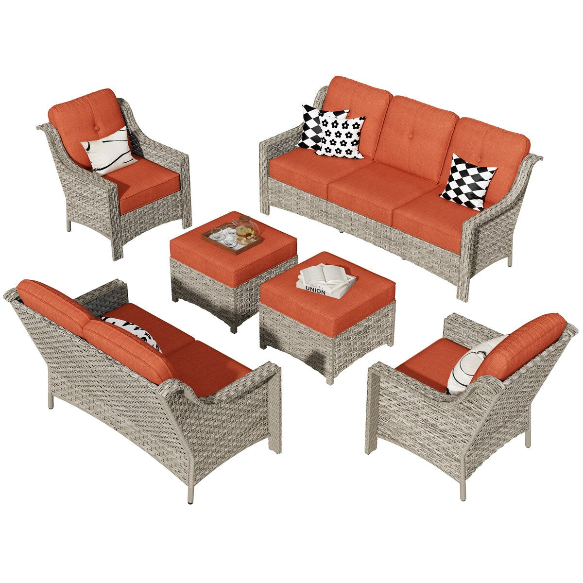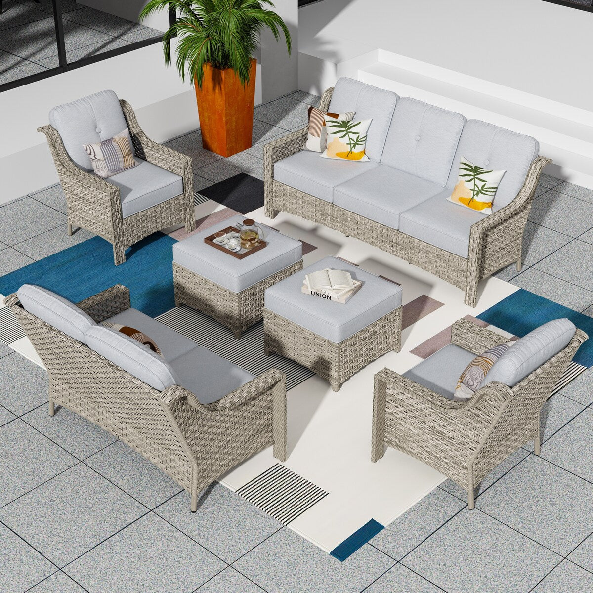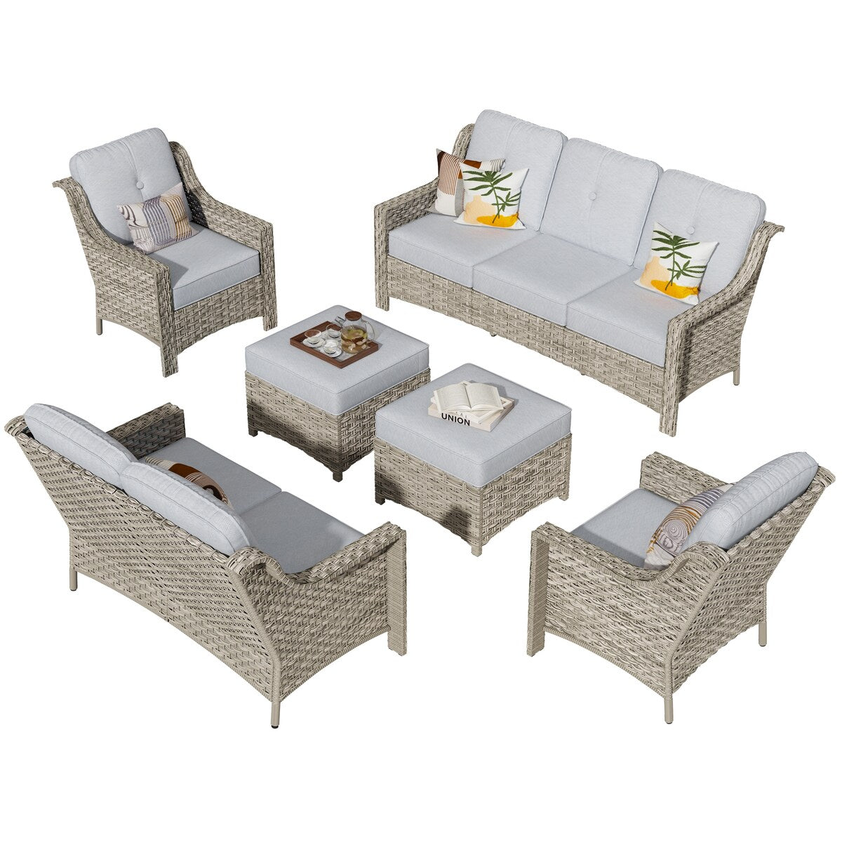 XIZZI 6-Piece Patio Wicker Outdoor Furniture Deep Seat Conversation Sofa Set