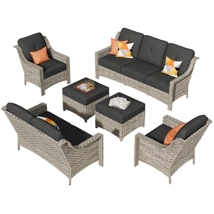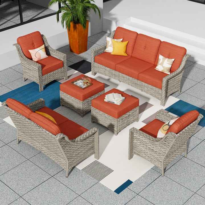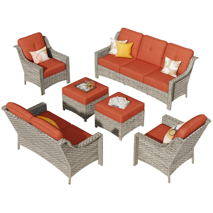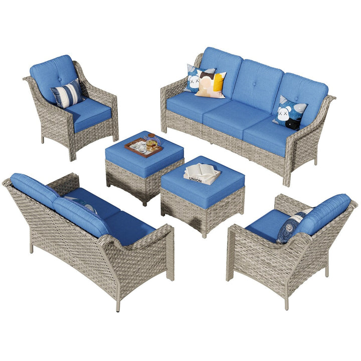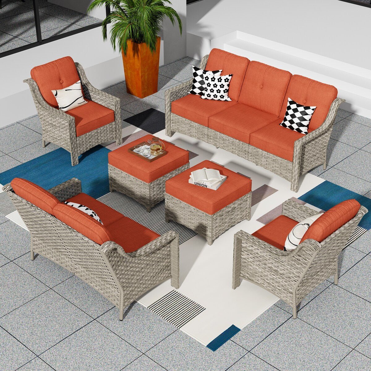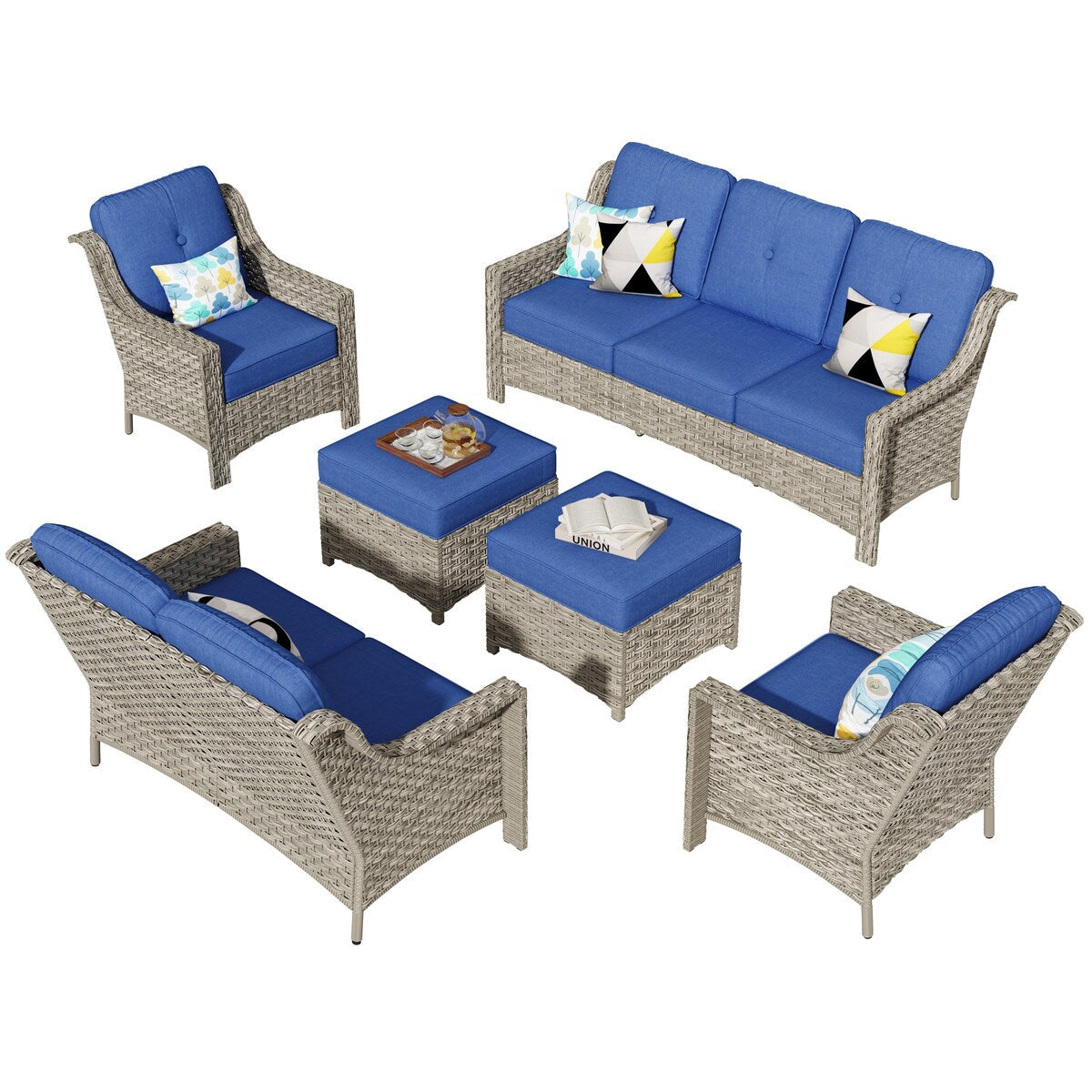 XIZZI 6-Piece Patio Wicker Outdoor Furniture Deep Seat Conversation Sofa Set