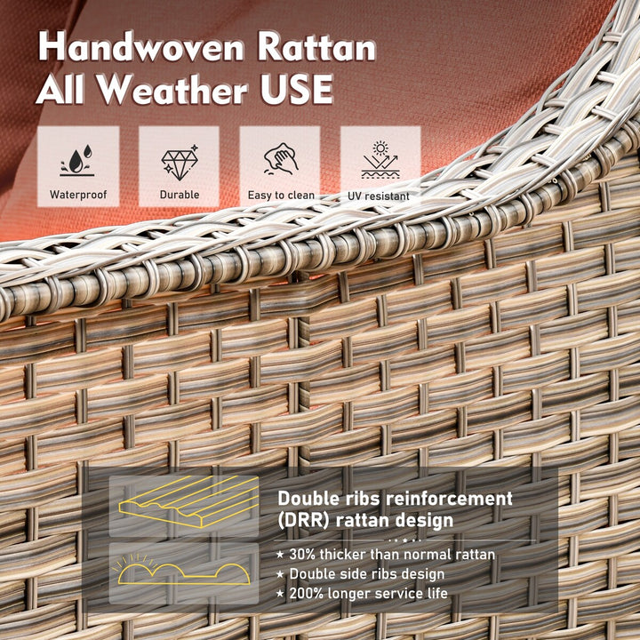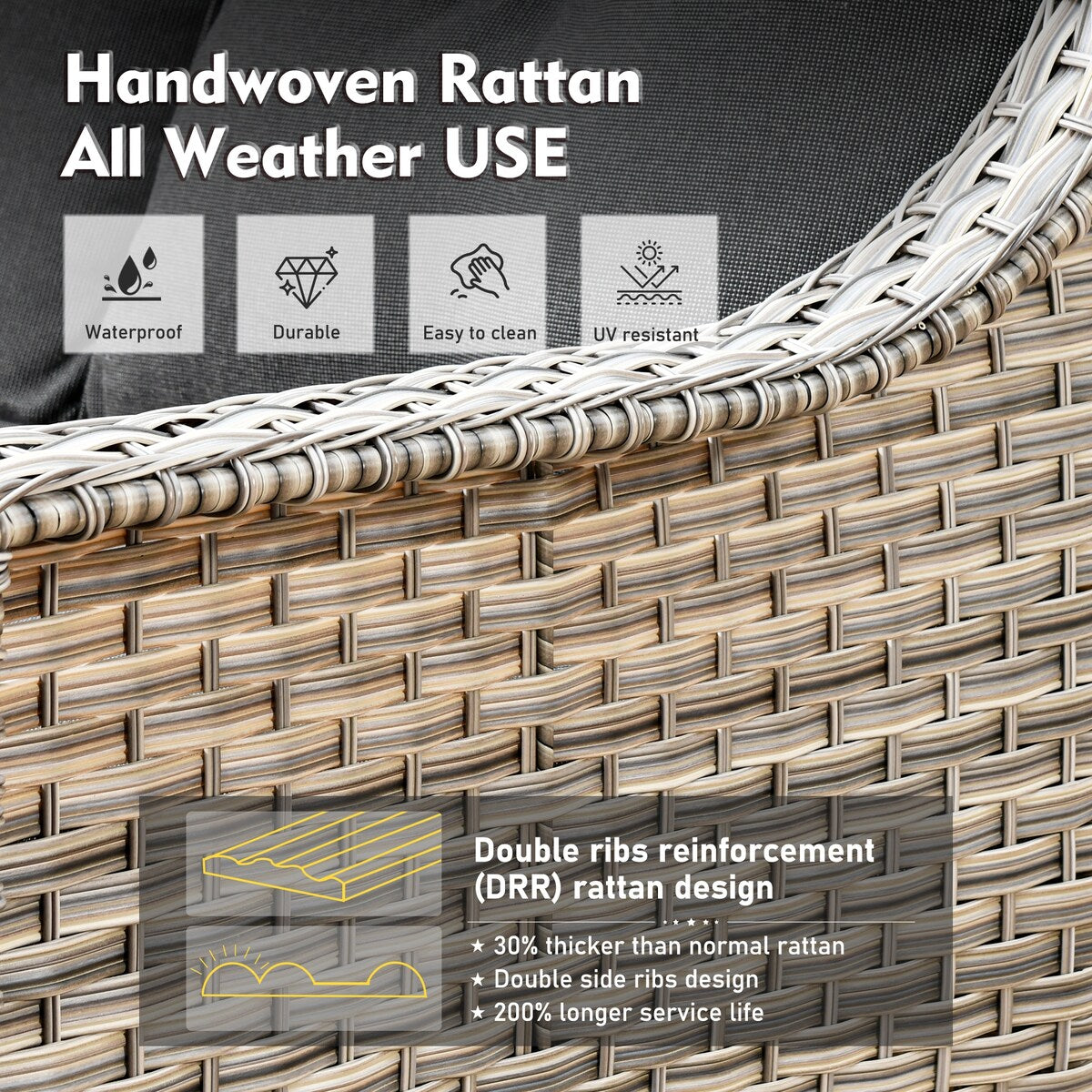 - Powder-coated steel frame is wrapped in durable PE rattan