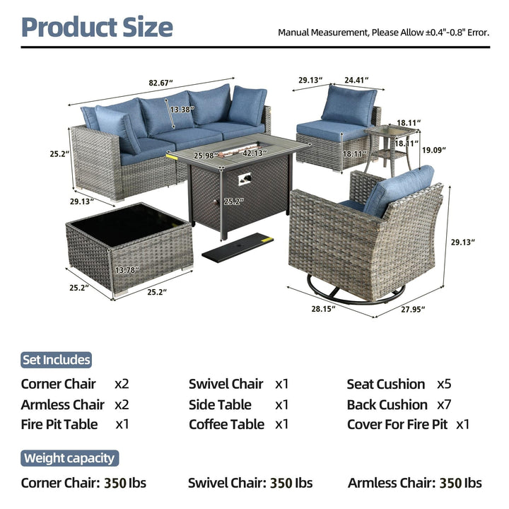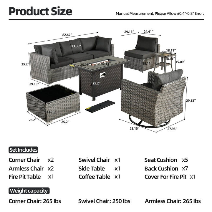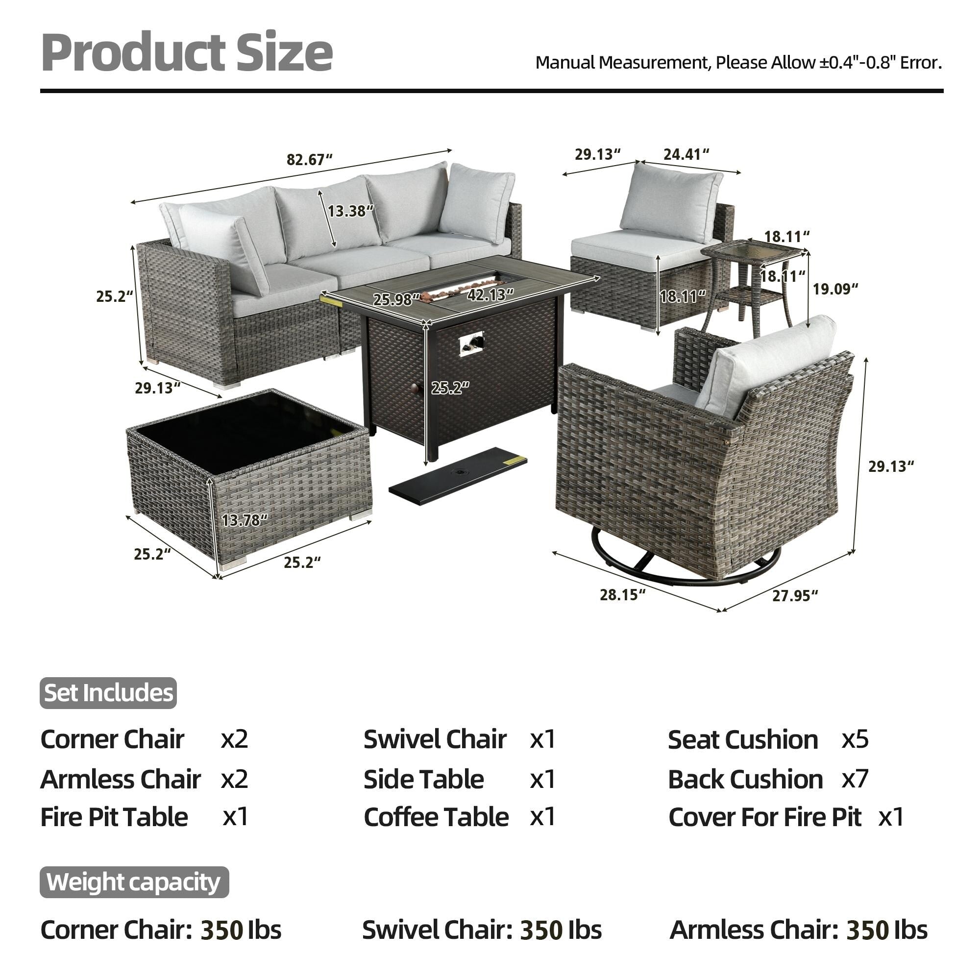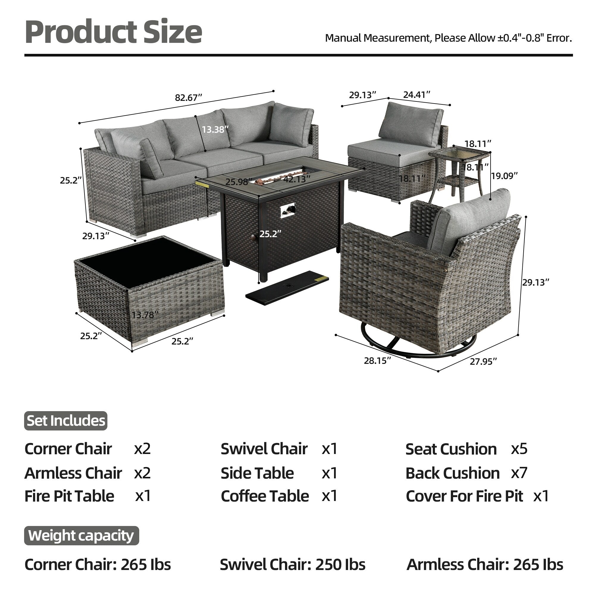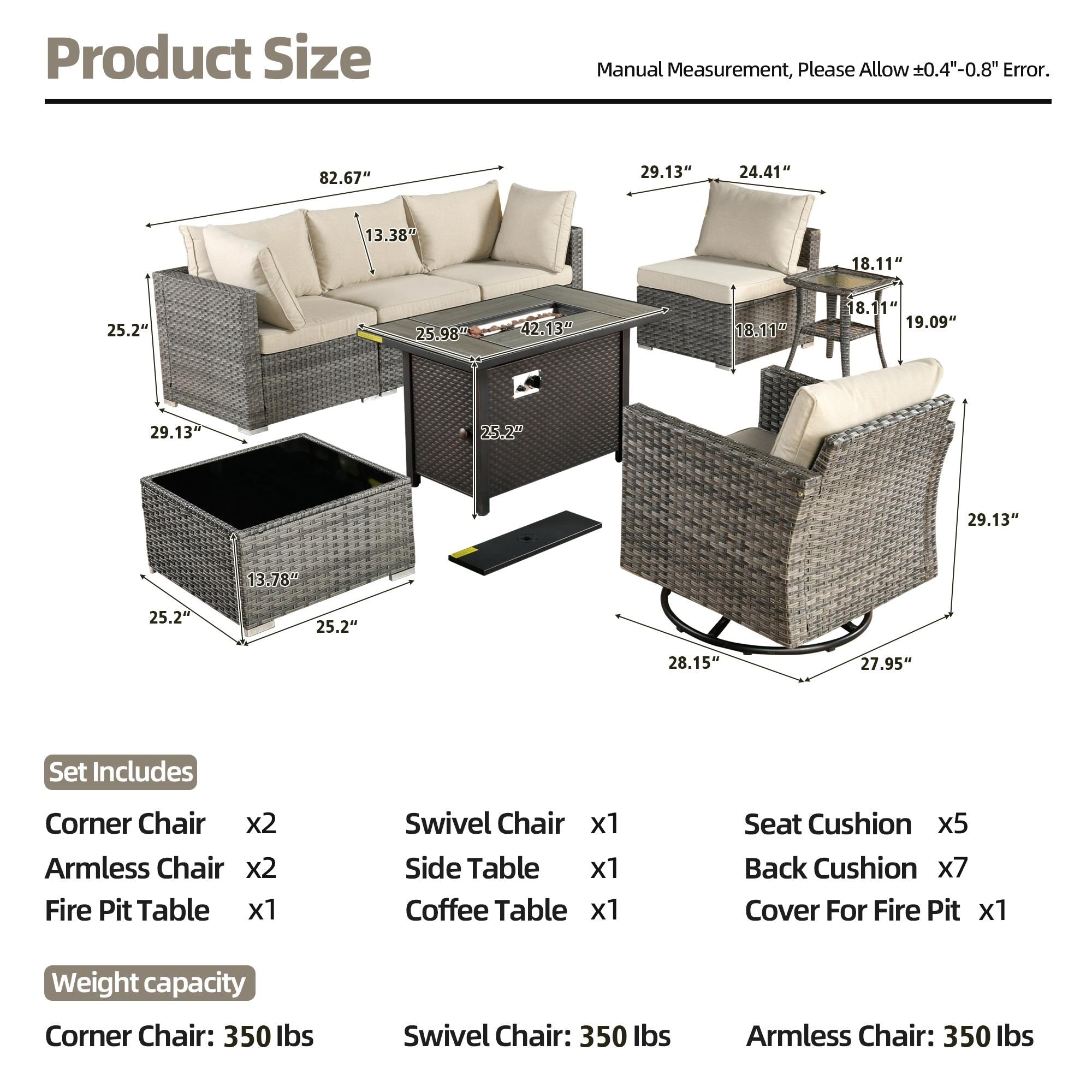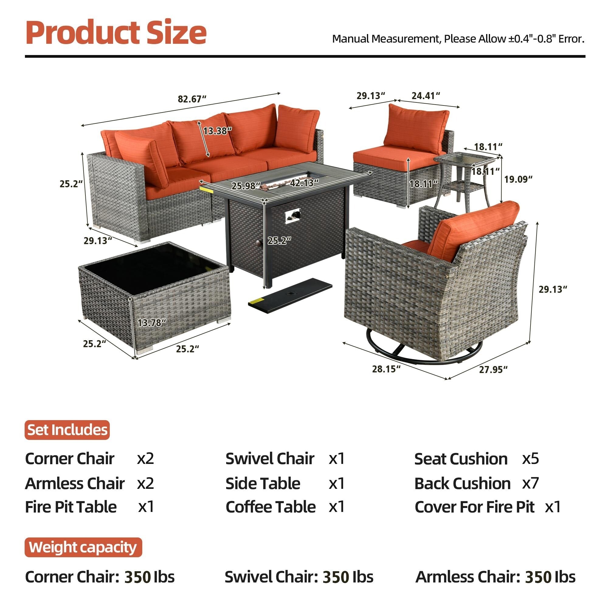 XIZZI 8-piece Patio Outdoor Wicker Furniture Swivel Chair Set with Firepit Table