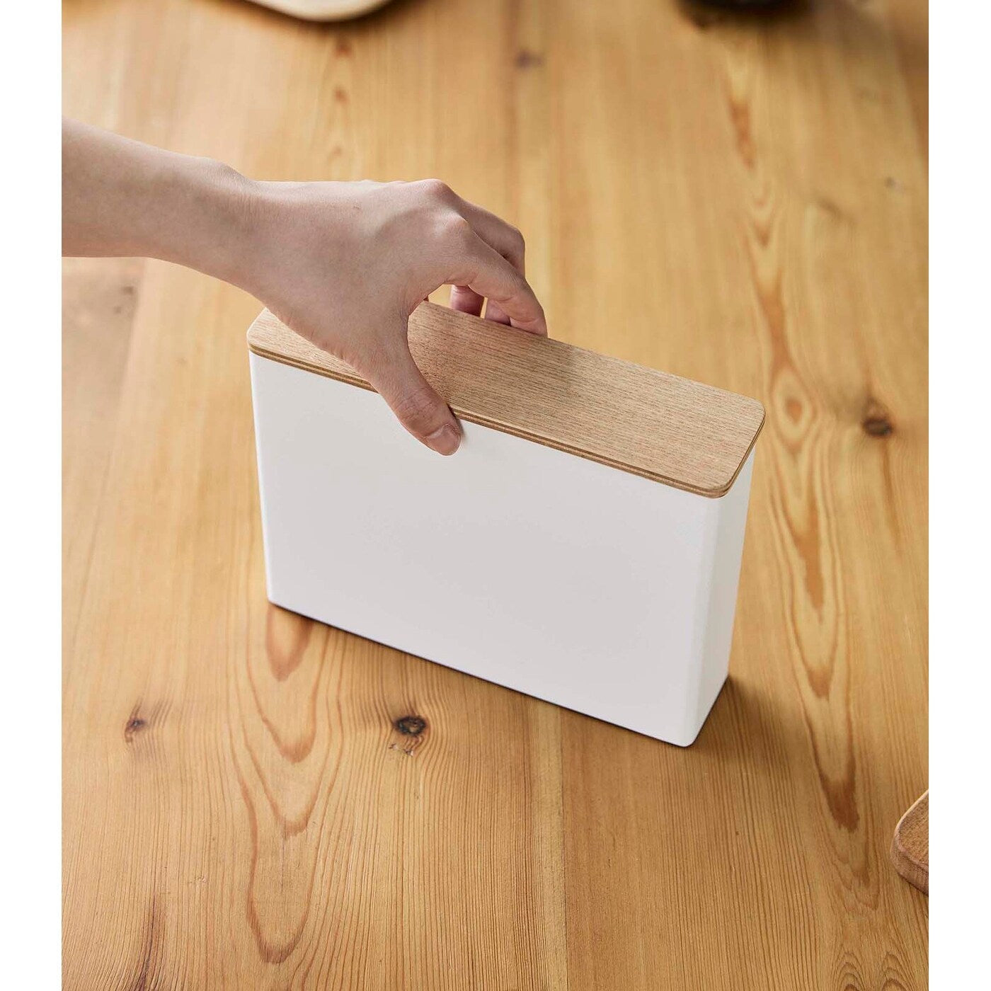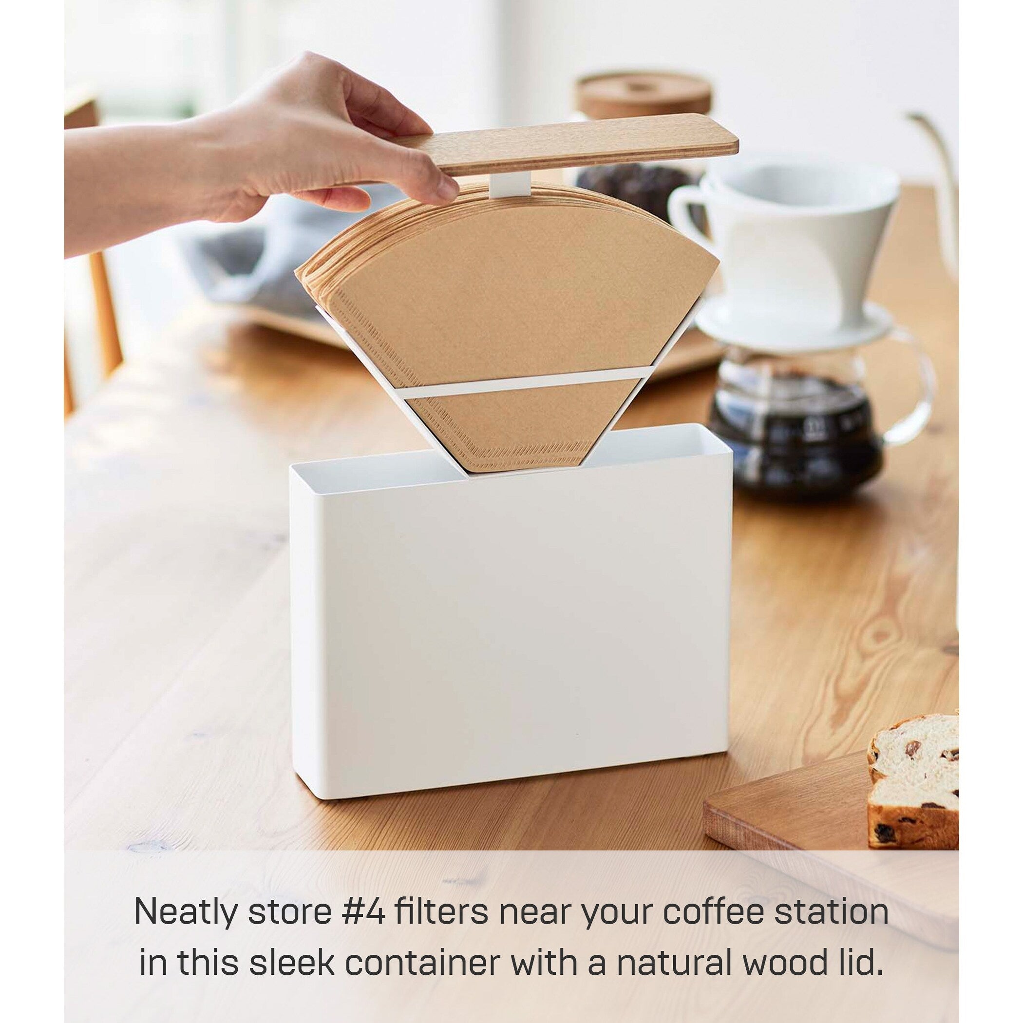 Yamazaki Home Coffee Filter Case - Size 04, Steel and Wood, 04 Coffee Filters, Lid - L 2.05 x W 8.27 x H 6.1 inches
