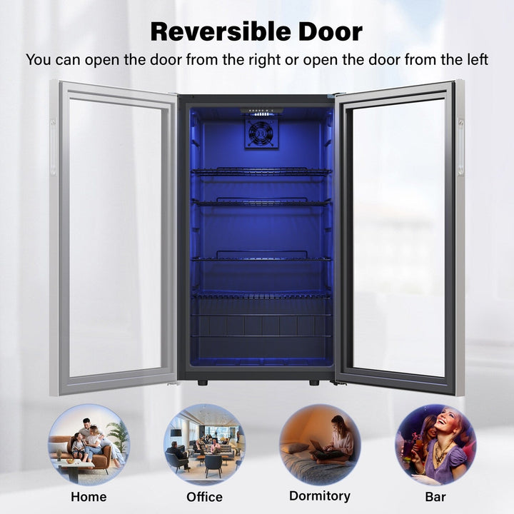 - Sleek Design with UV Protection: The stainless steel door and double-pane UV-protected glass not only adds a modern touch to any room but also shields your drinks from harmful UV rays. The insulated, moisture-resistant design ensures drinks remain fresh, maintaining their original flavor and quality.