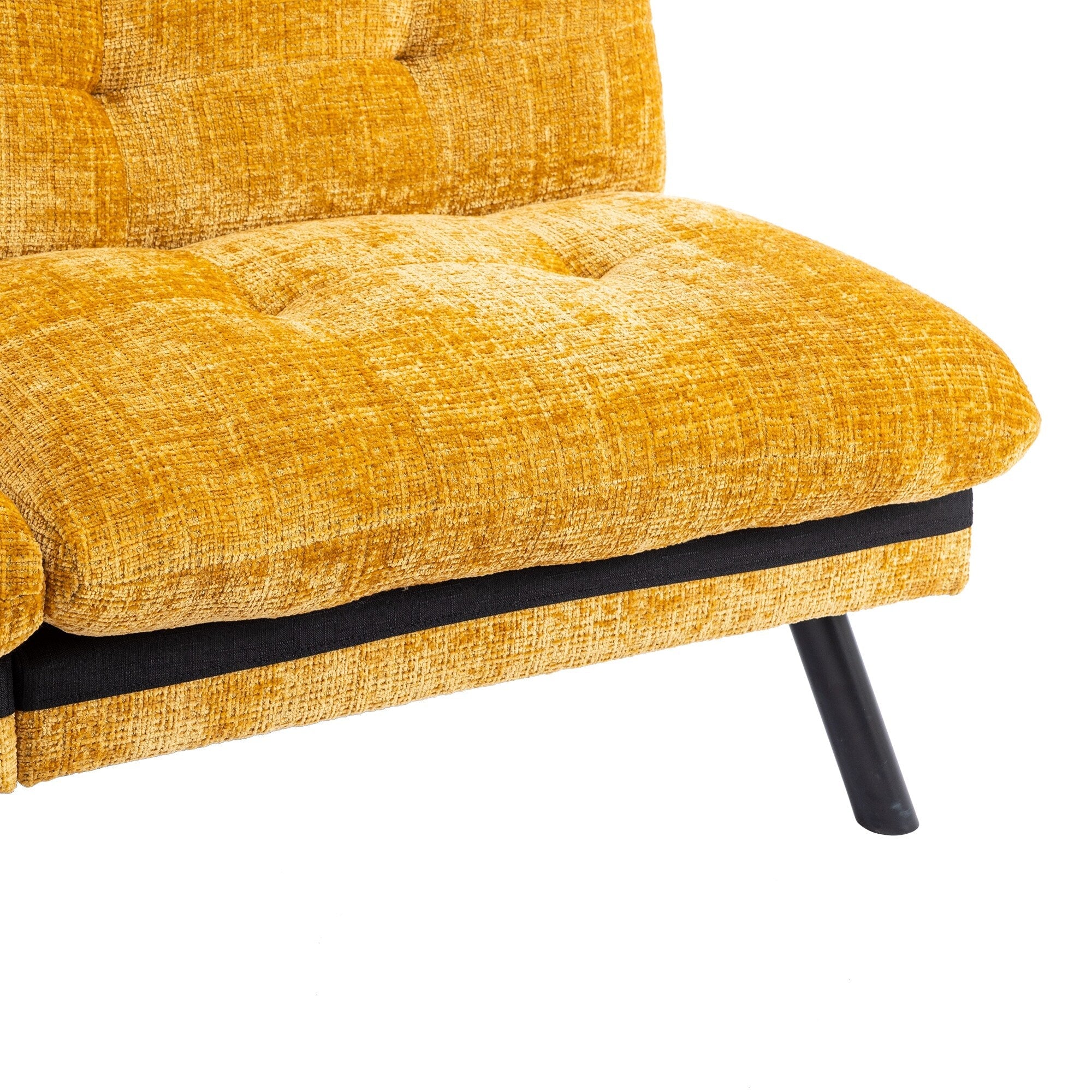 This sofa bed is designed to fit seamlessly into small spaces, offering a modern and sophisticated look that enhances any living area.The three adjustable back positions provide versatile comfort, whether you're relaxing, reading, or watching TV.The Chenille fabric is soft and durable, ensuring both comfort and longevity. The 6 metallic black legs add a stylish touch.The strong wooden frame and comfortable polyester and foam filling ensure that this sofa bed is both stable and cozy, making it a perfect addition to your home.Easy to assemble, you only need to install the sofa feet and connect the buttons for the backrest, making setup a breeze.