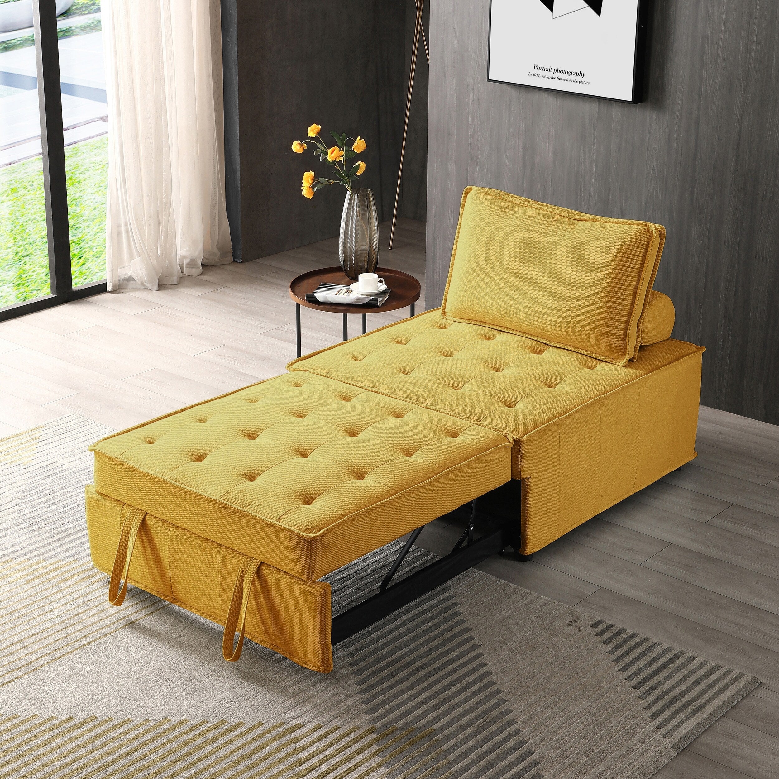 Yellow Ottoman Pull Out Sofa Bed with Adjustable Backrest