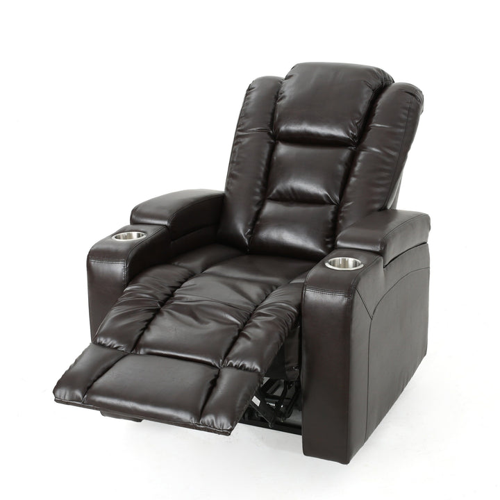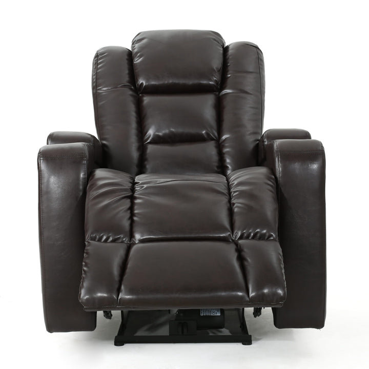 Yoma Power Recliner Chair, 2 Cupholders, Storage, USB, Brown Faux Leather