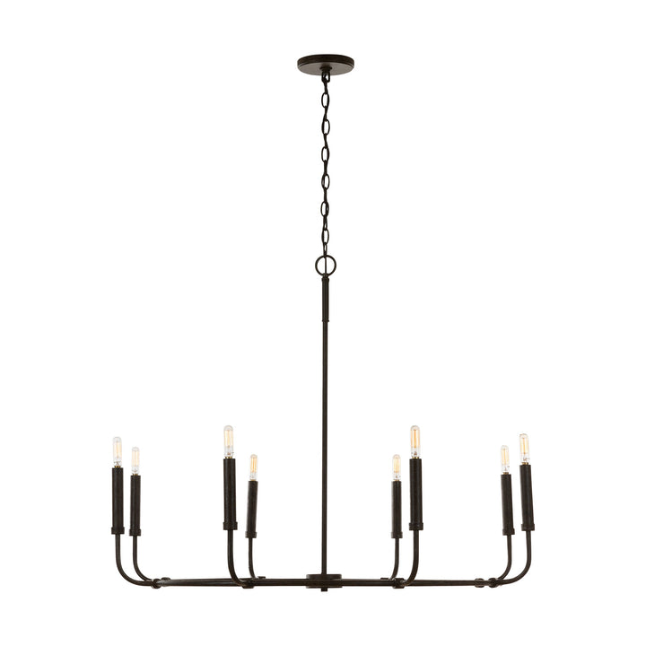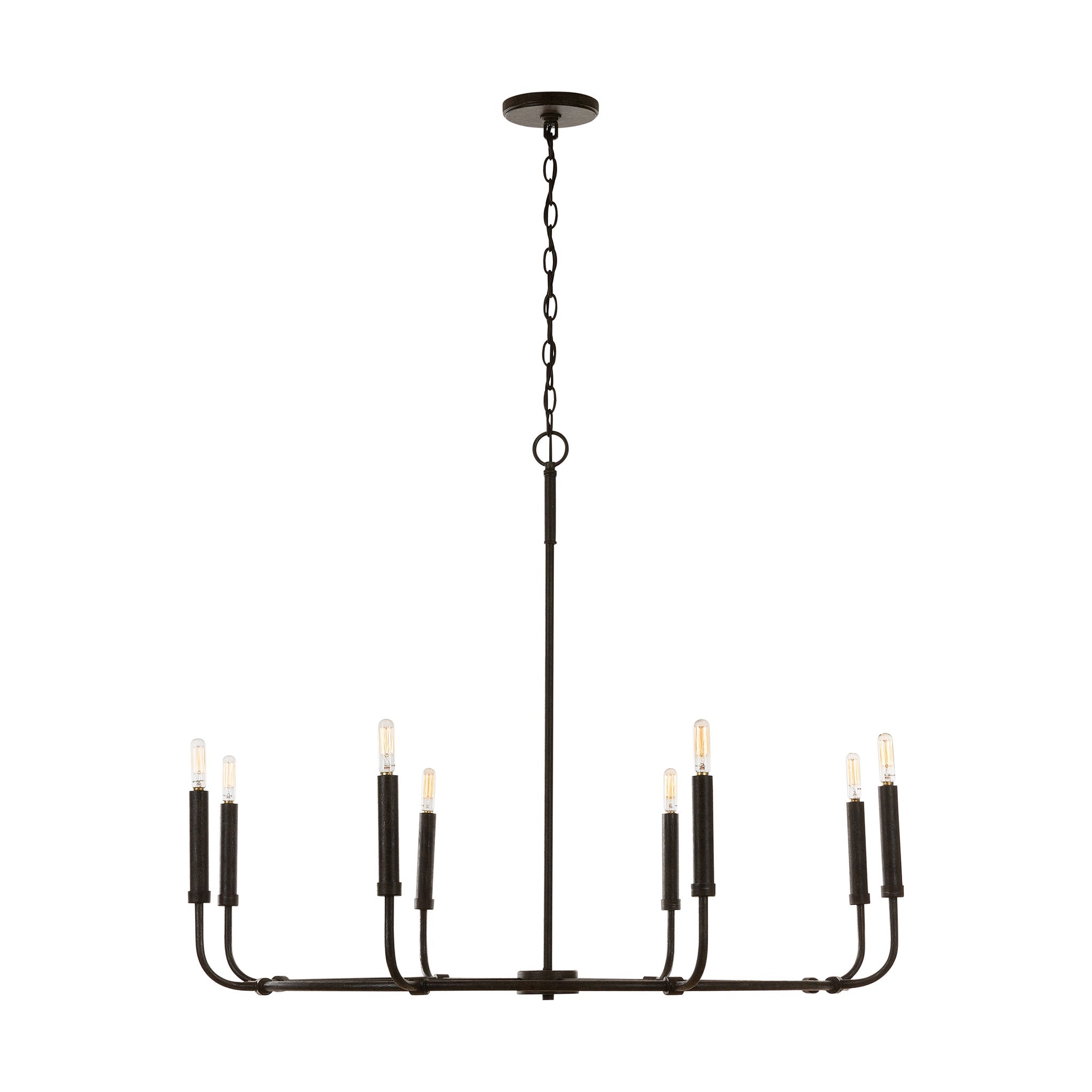 Graceful, unpretentious lines paired with a mineral brown finish create an impactful yet understated appeal. Eight 60W sockets. UL listed. Includes matching 10' chain and ceiling plate. UL listed. Imported