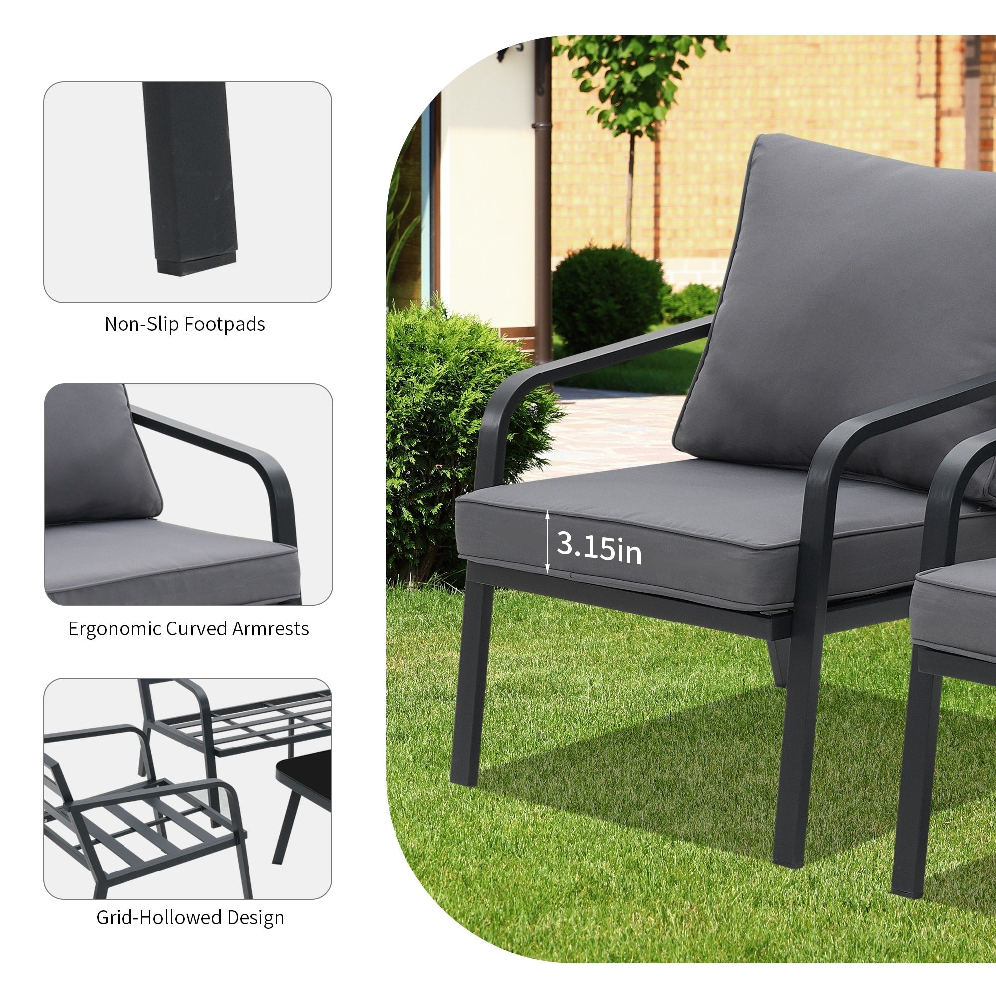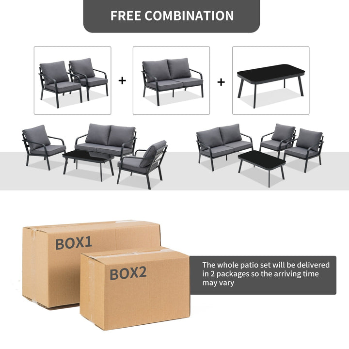 Zenova 2/4 Pcs Aluminum Patio Conversation Set Outdoor Sectional Sofa with Single Chairs