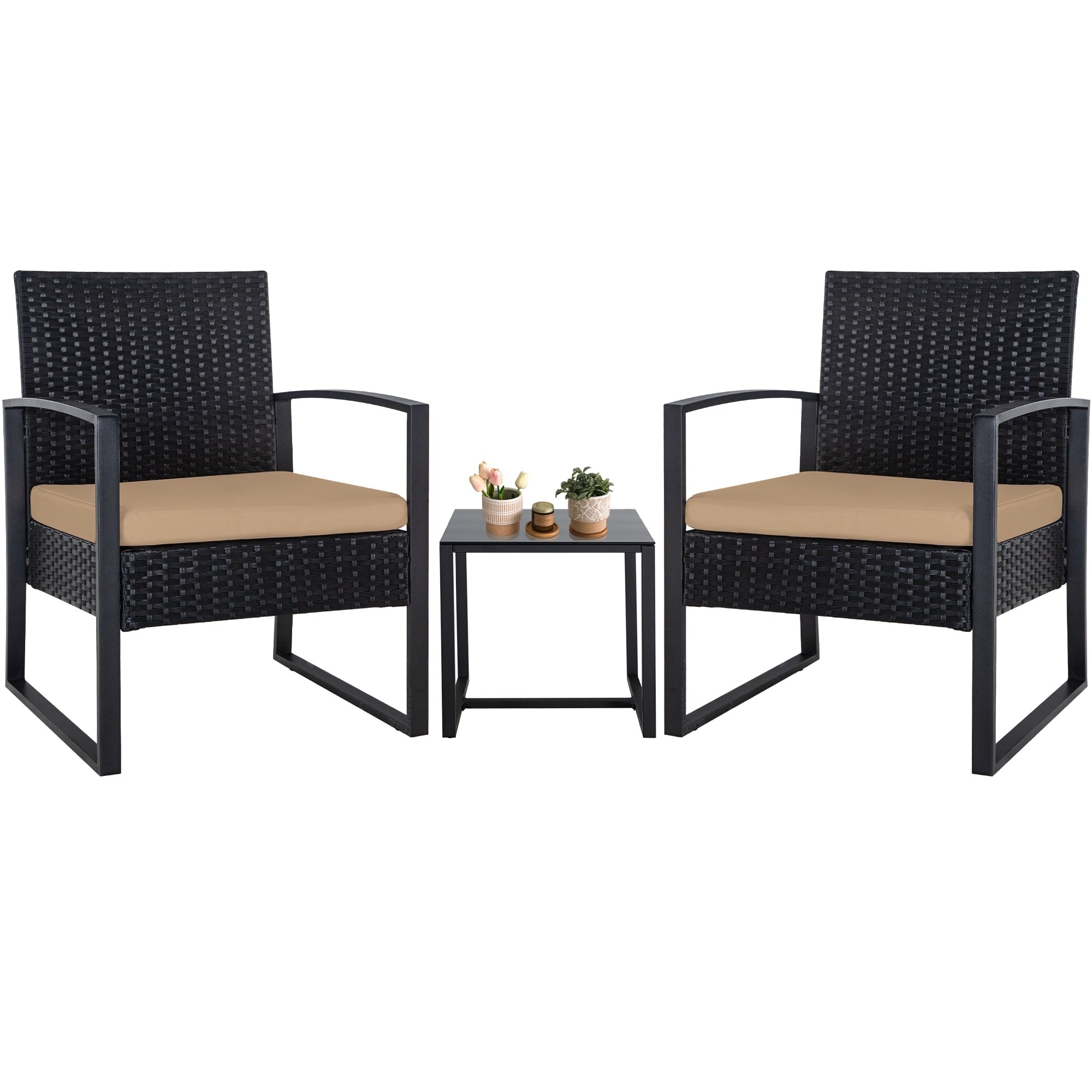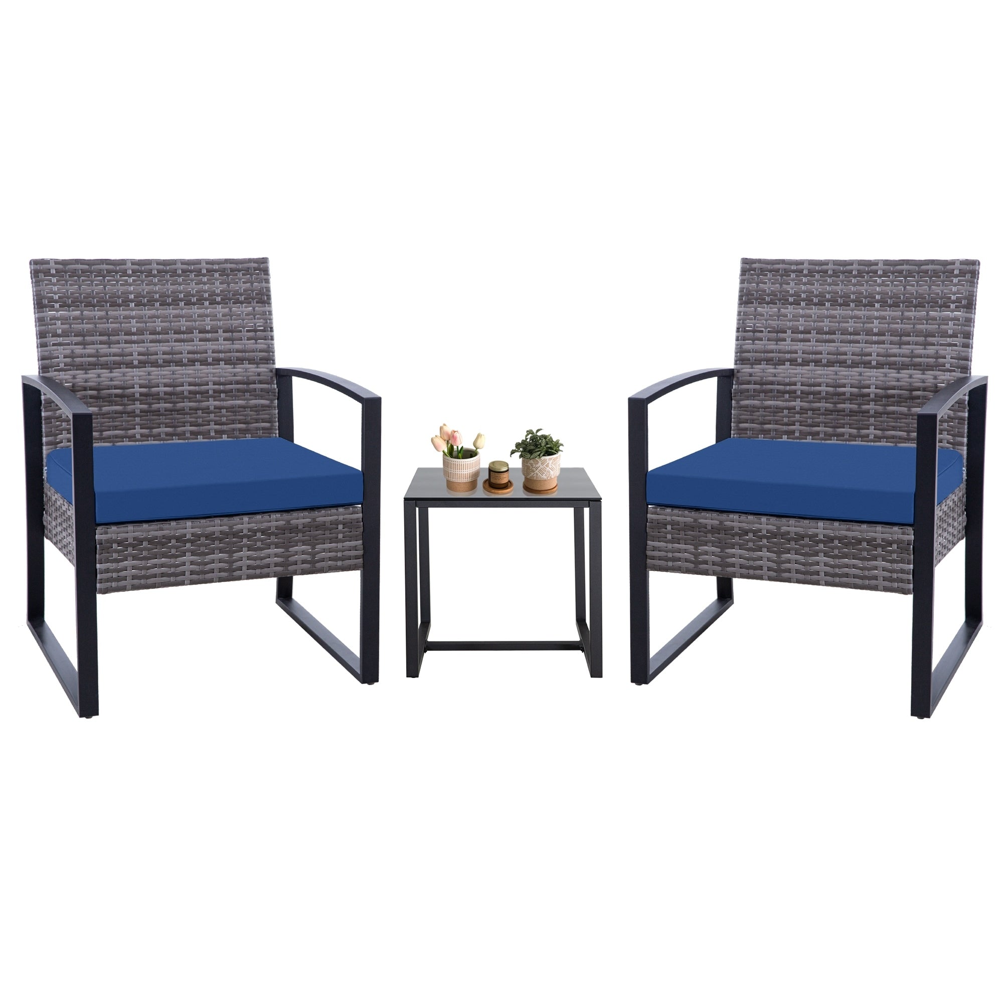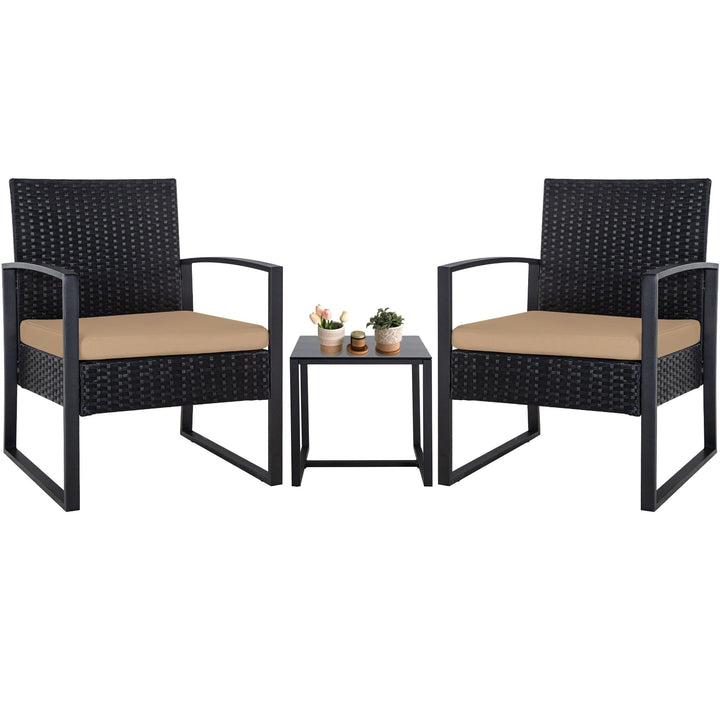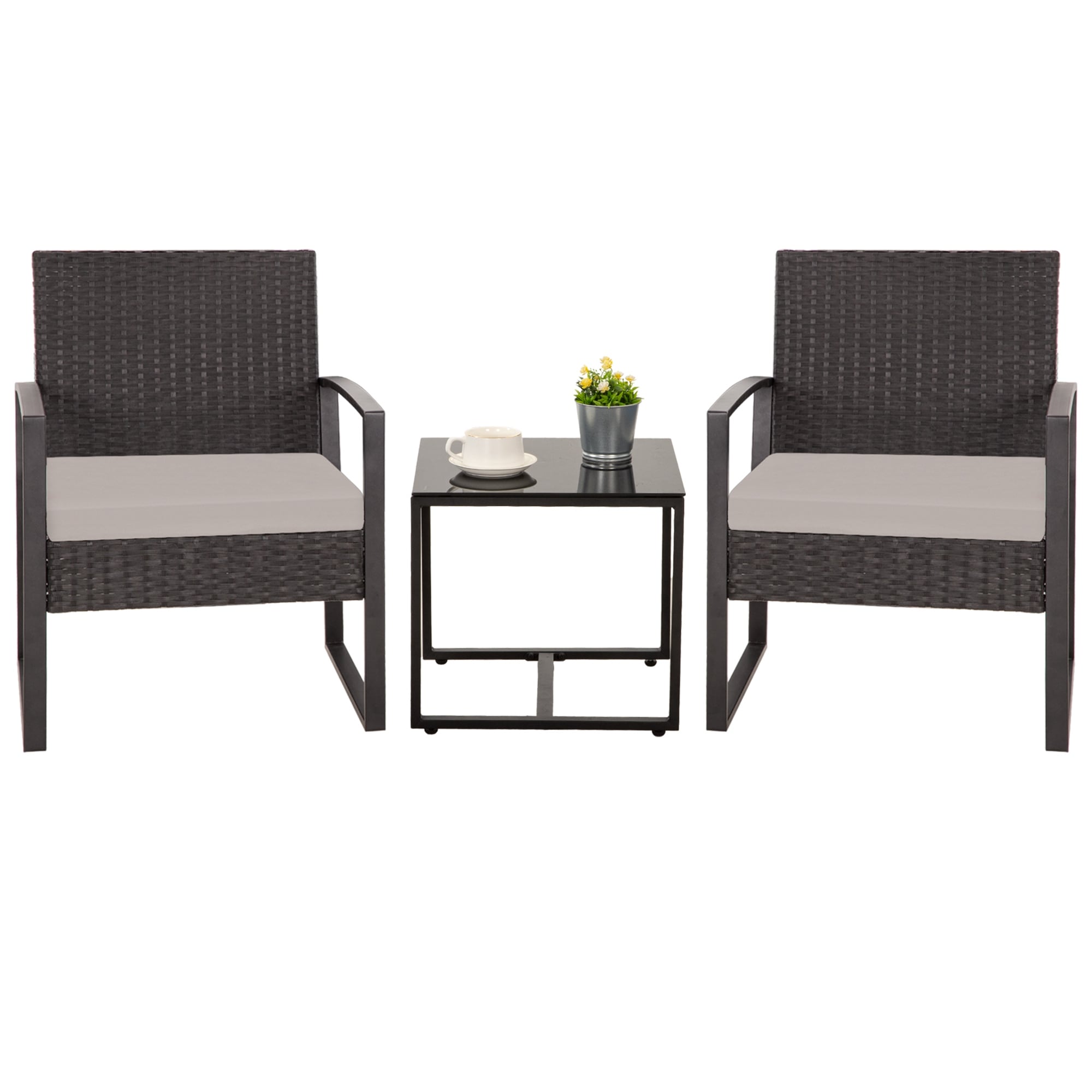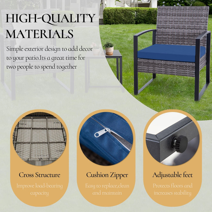 Zenova 3 Piece Outdoor Patio Convensation Set, Wicker Table and Chairs Set of 2, All-Weather Rattan Balcony Furniture Set