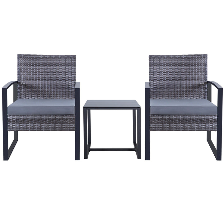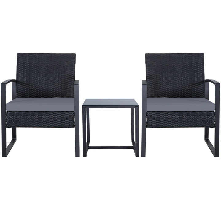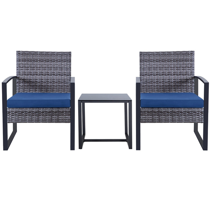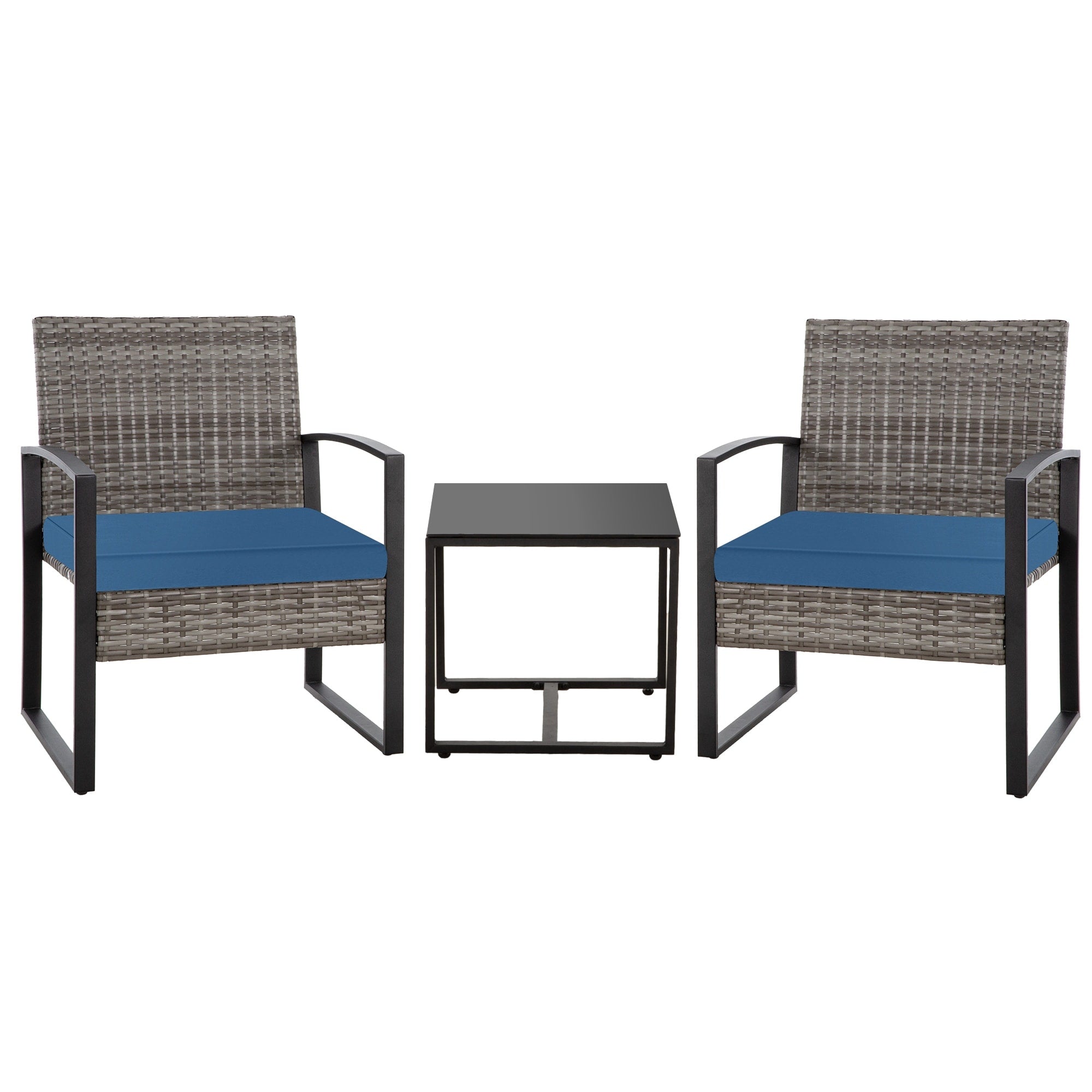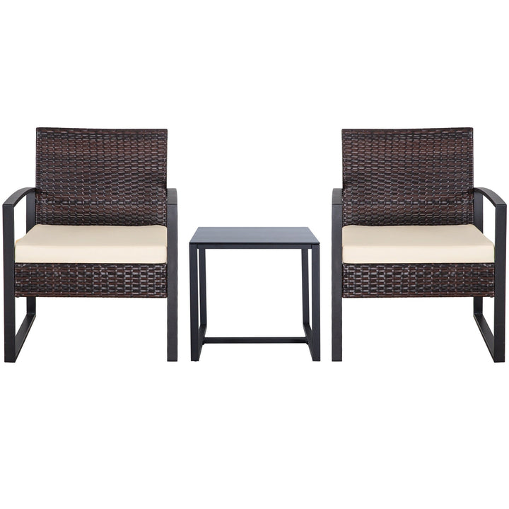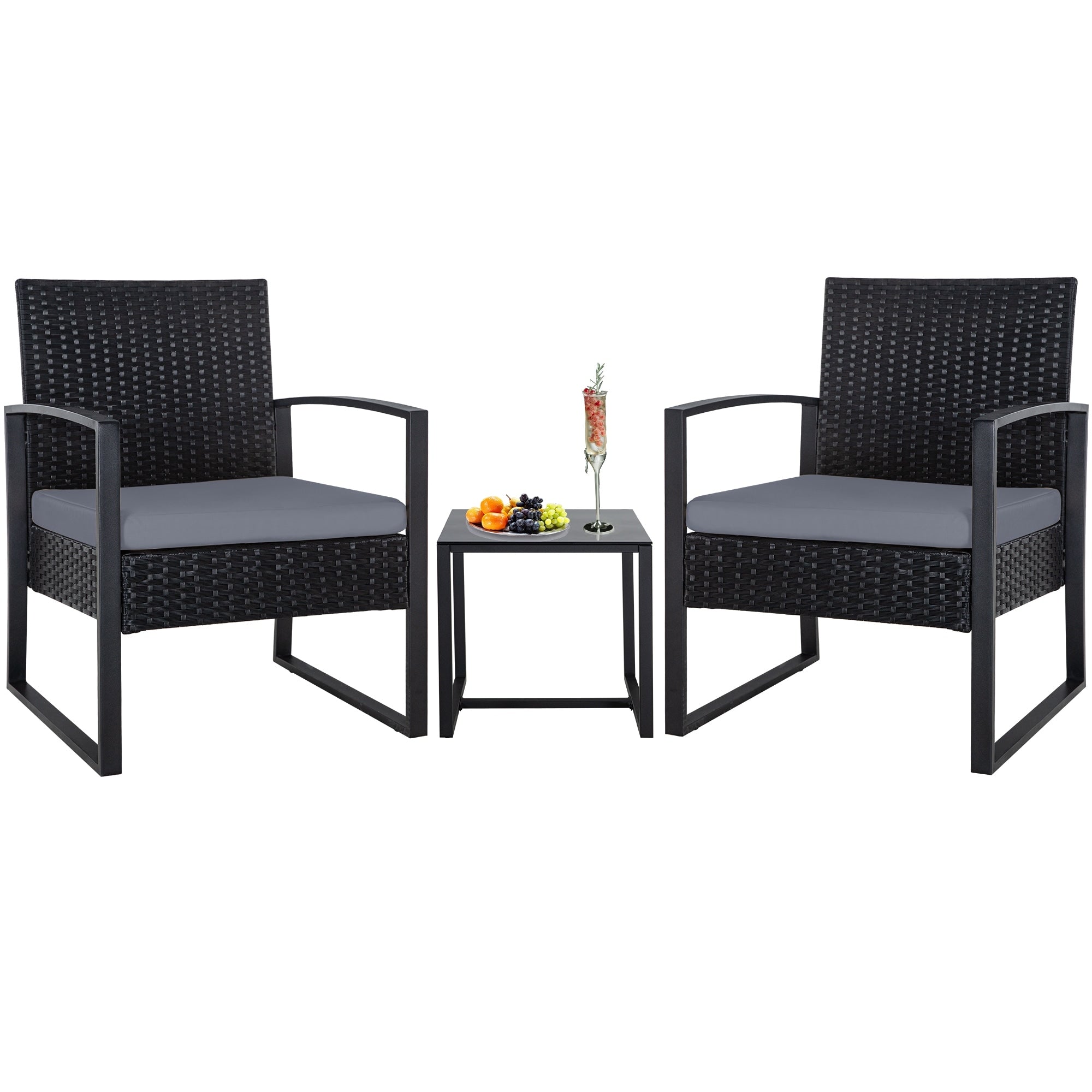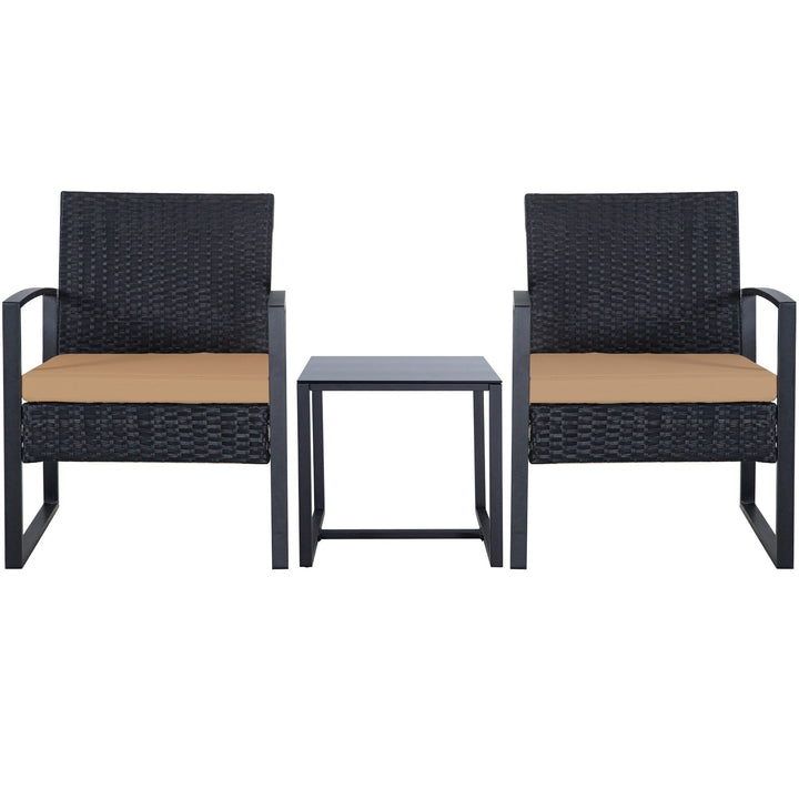 Zenova 3 Piece Outdoor Patio Convensation Set, Wicker Table and Chairs Set of 2, All-Weather Rattan Balcony Furniture Set