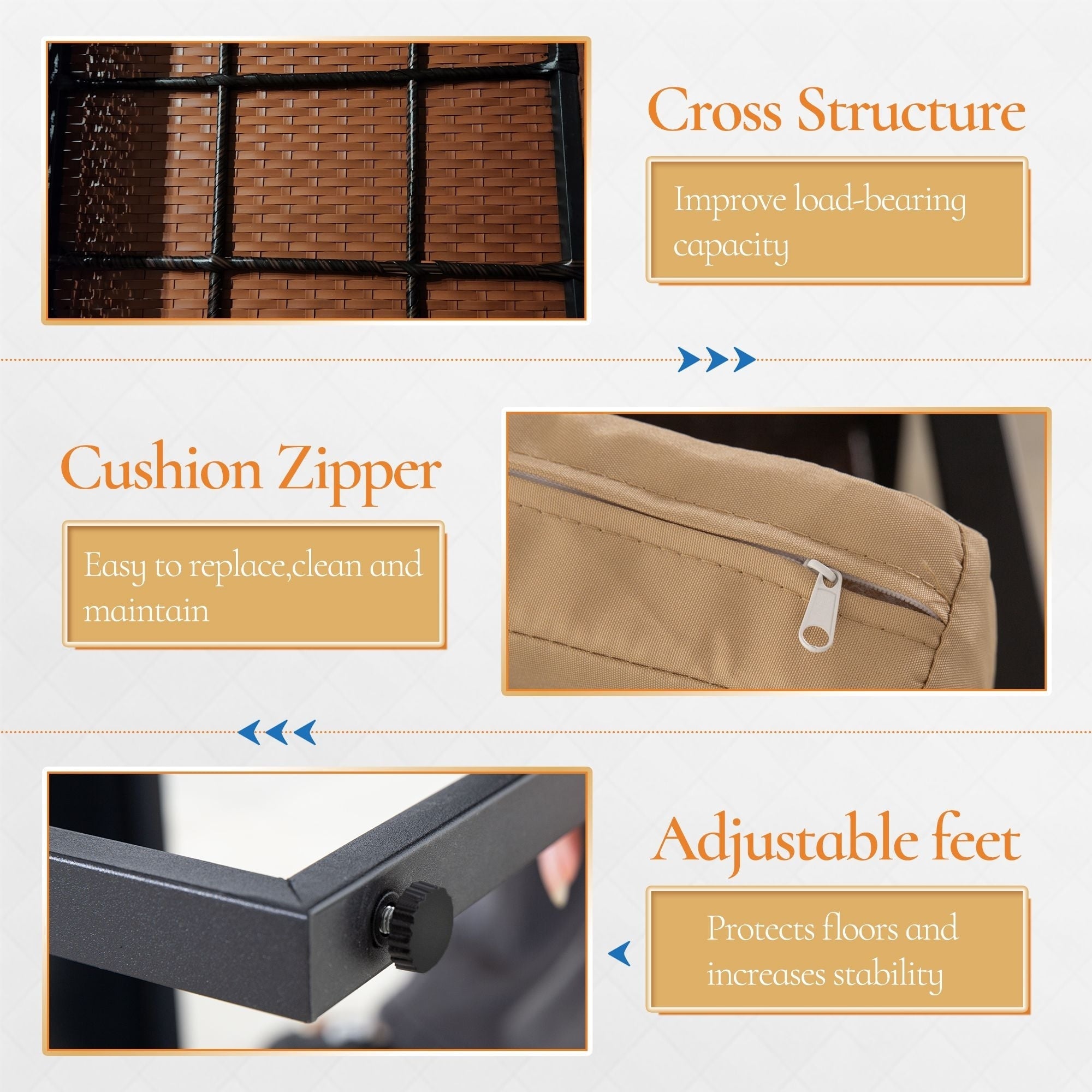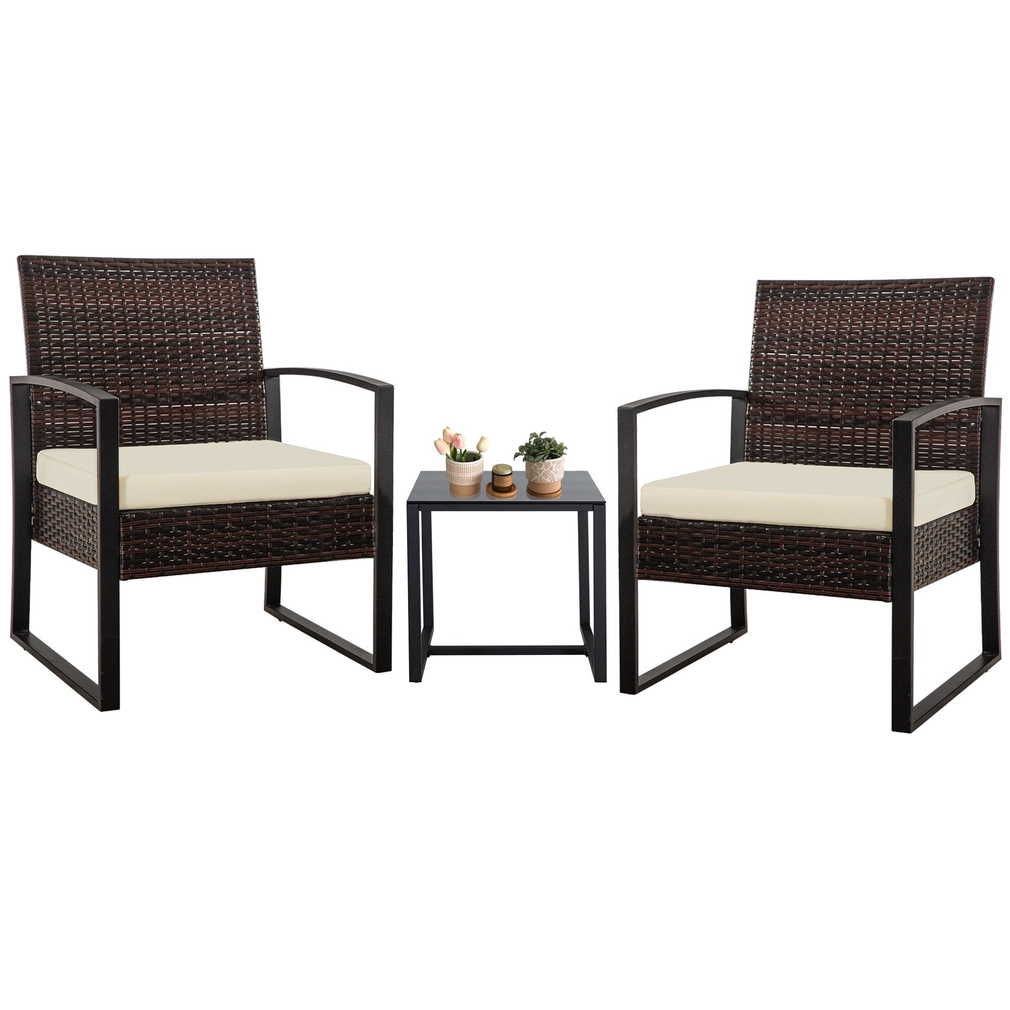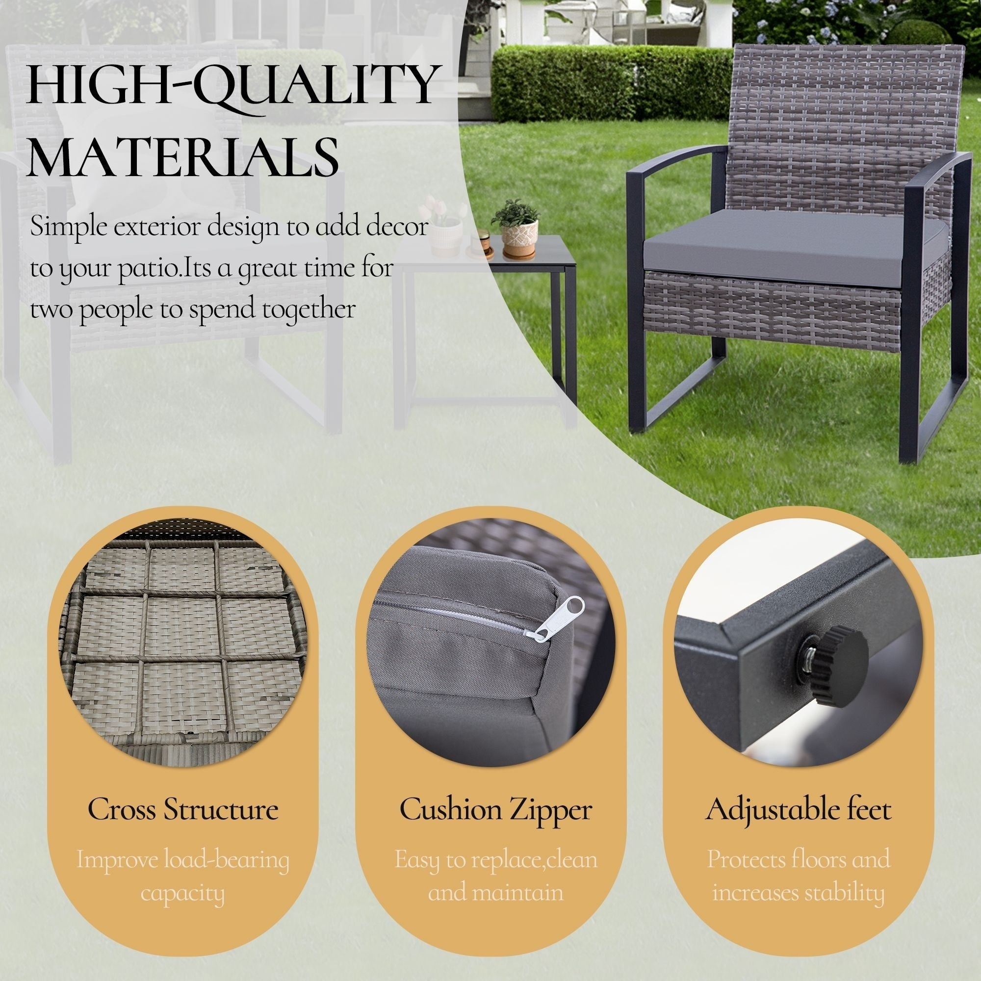 - Durable & Stability:The patio bistro set features sturdy powder-coated steel frame which offer extra support for long-lasting use. Exquisite Handwoven PE rattan gives the look & texture of wicker with the durability, weather and UV resistance. ???
