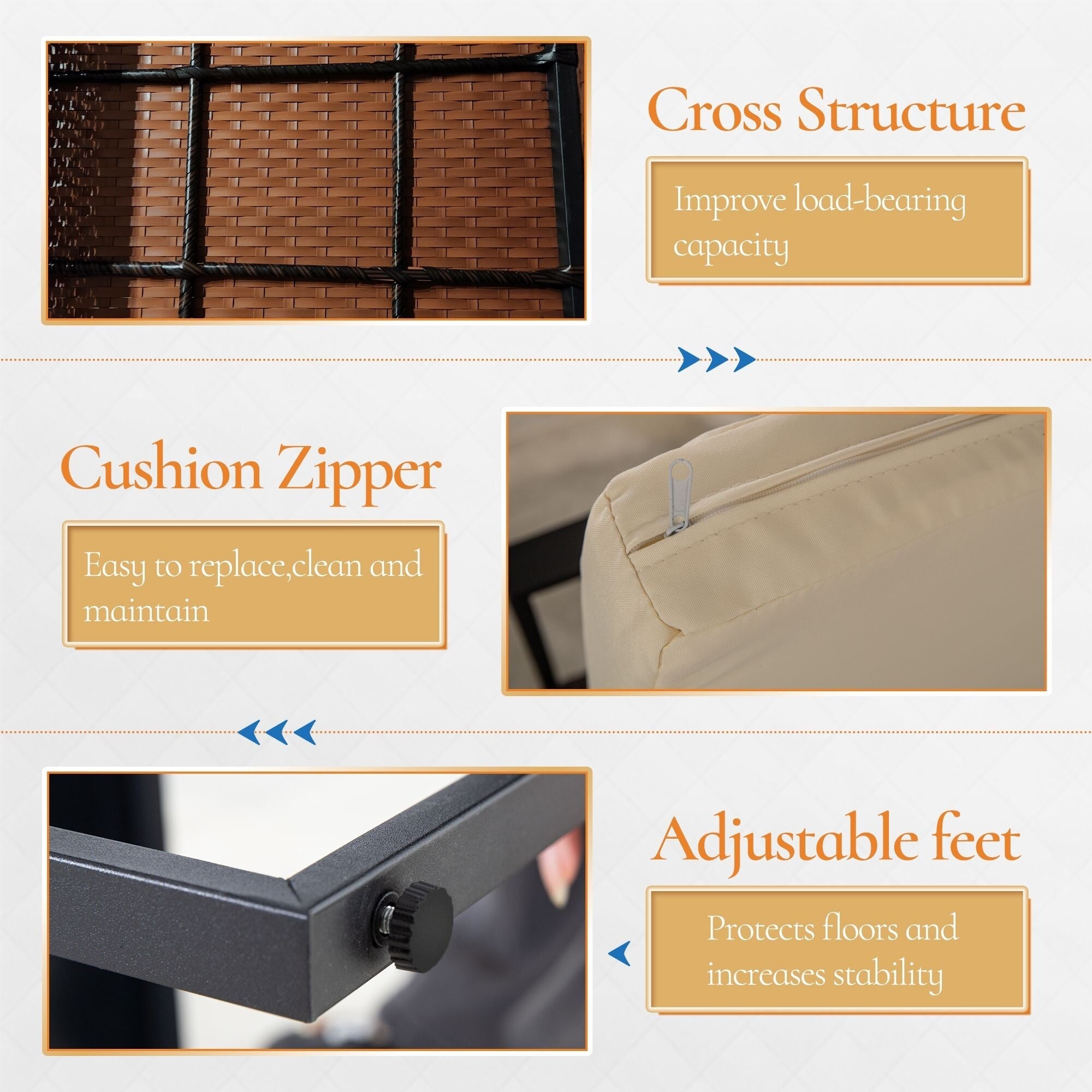 Our 3-piece rattan sofa set will allow you to enjoy a better outdoor life! Made of sturdy steel frame, the set is durable enough to be your long-term choice. Exquisite rattan with strong toughness will also give you a good touch. ????